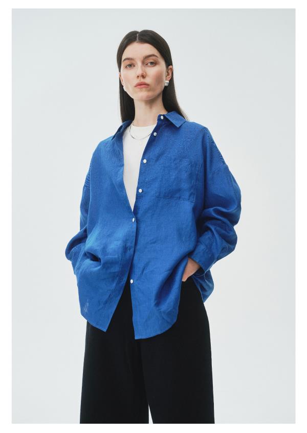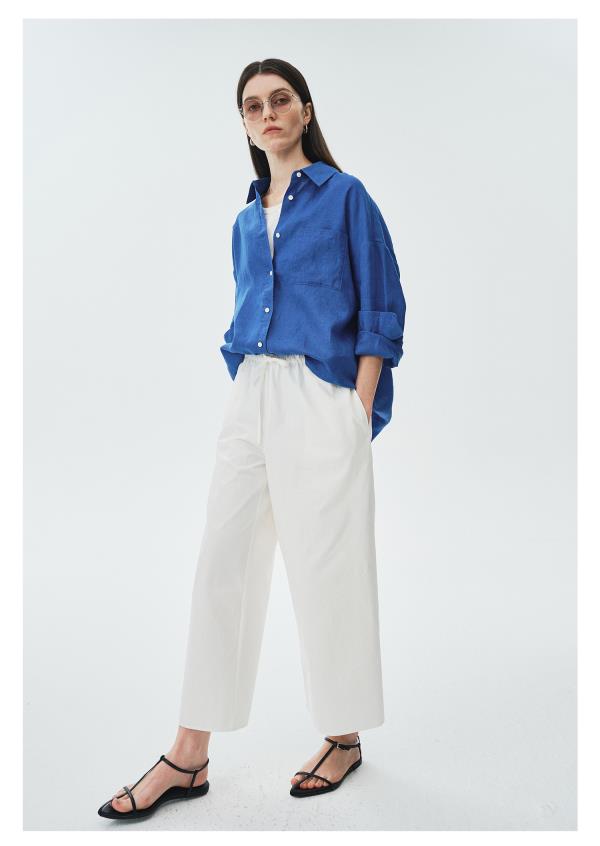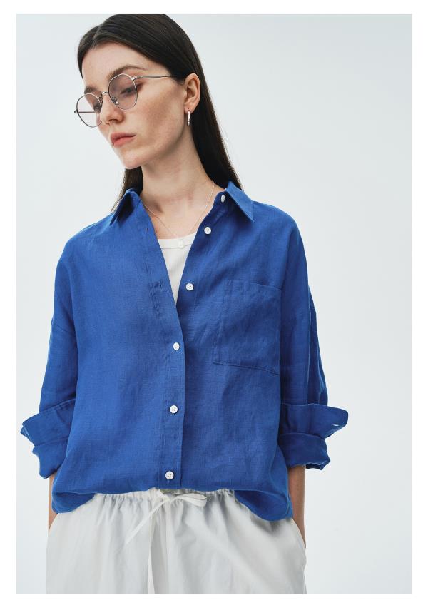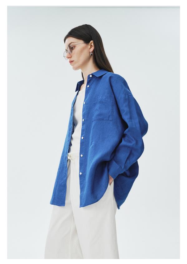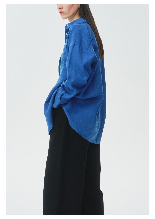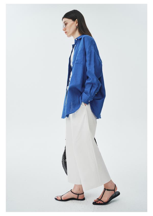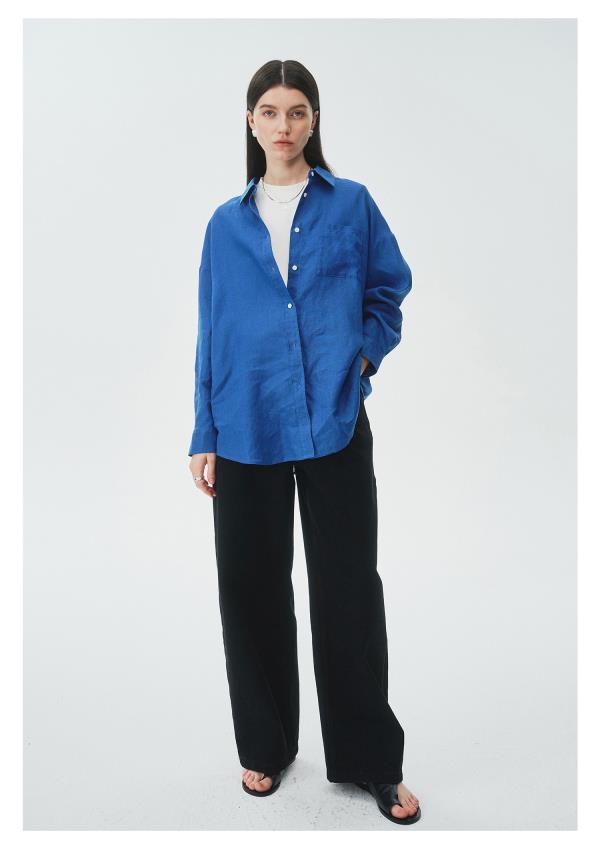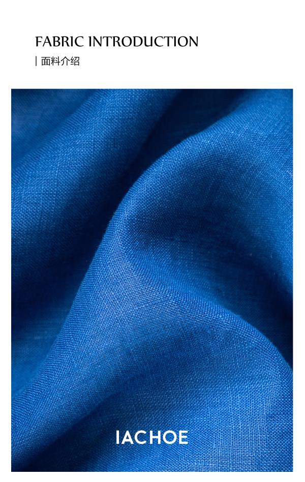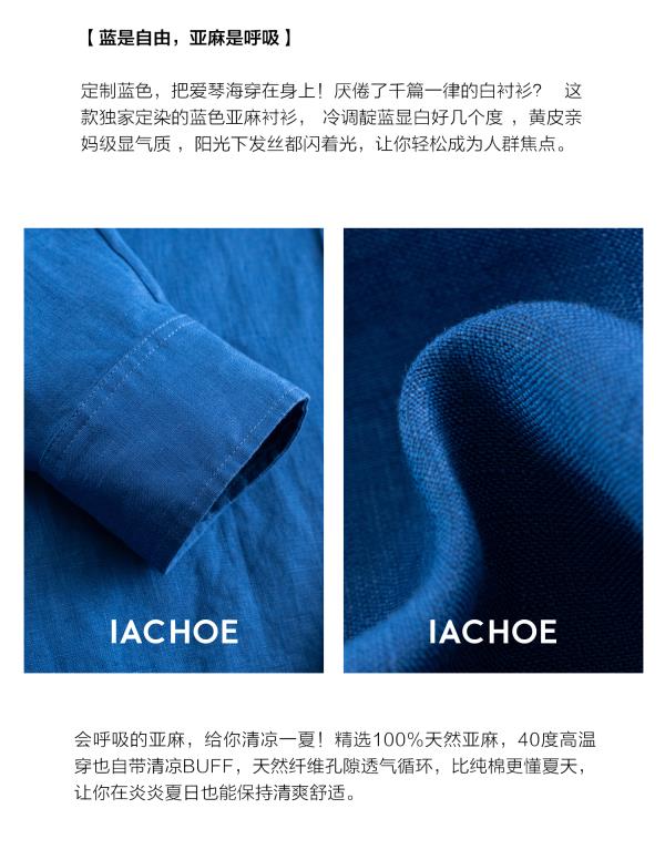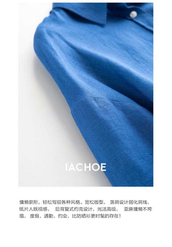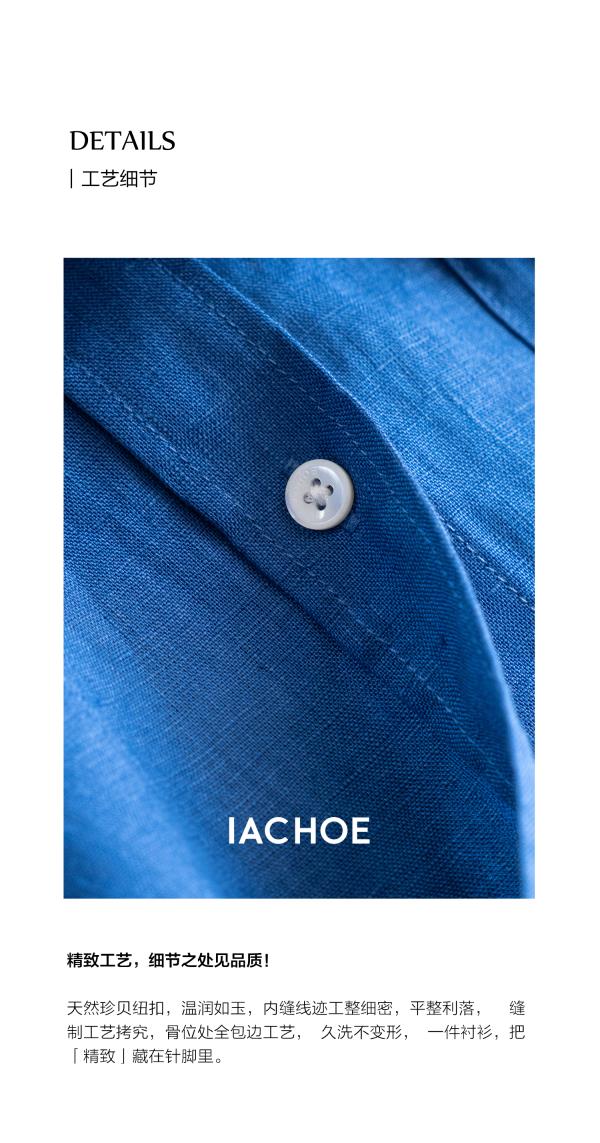 棉仓3621504010-IACHOE蓝亚麻衬衫