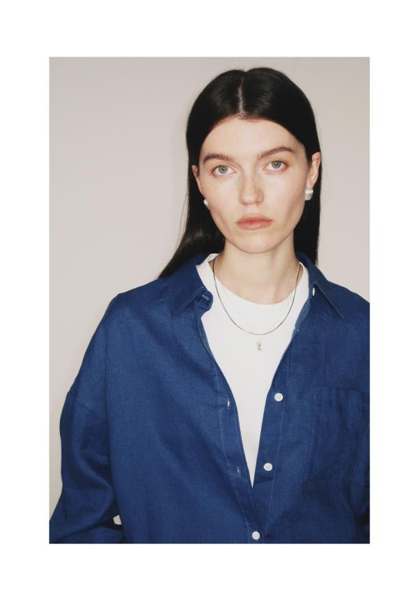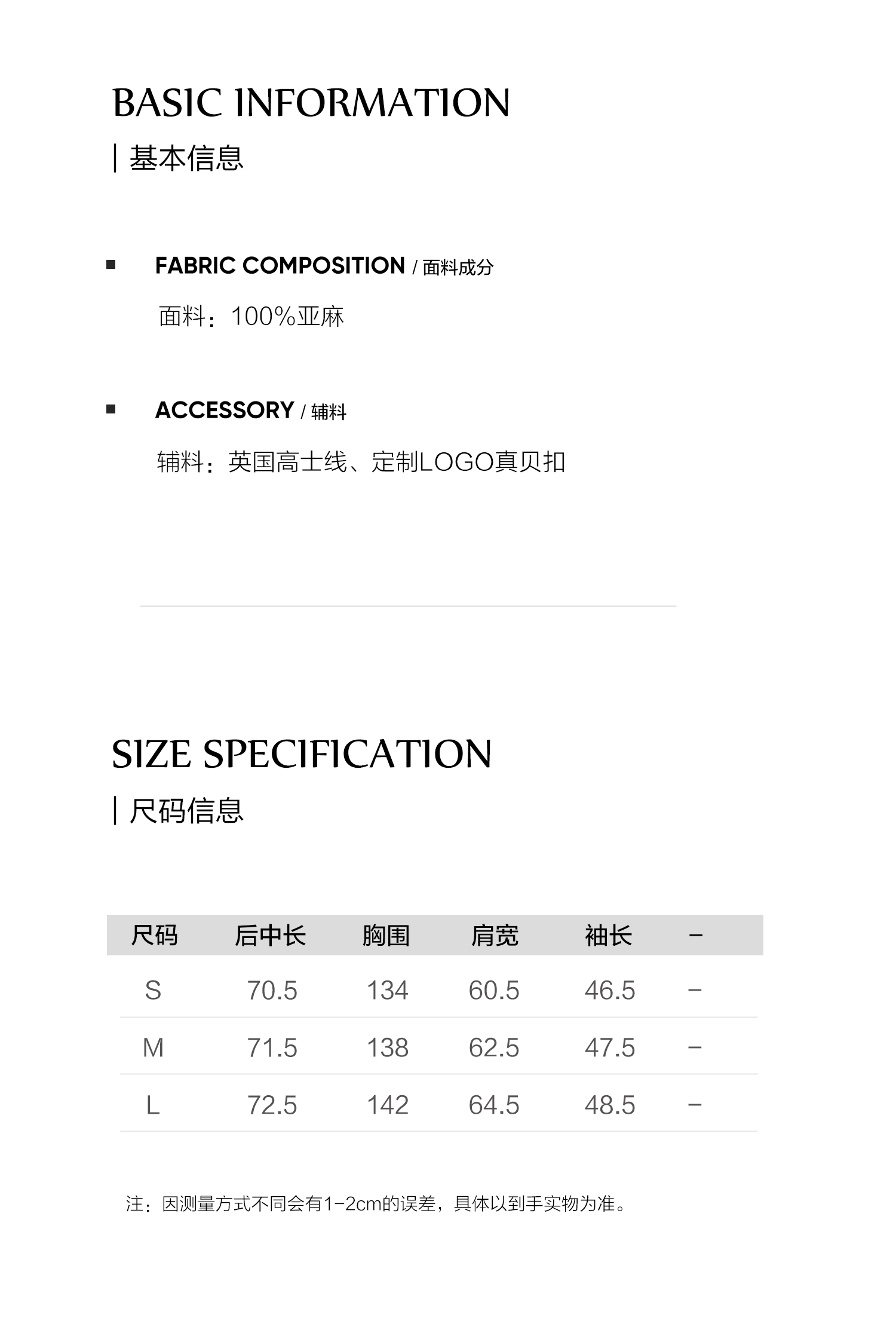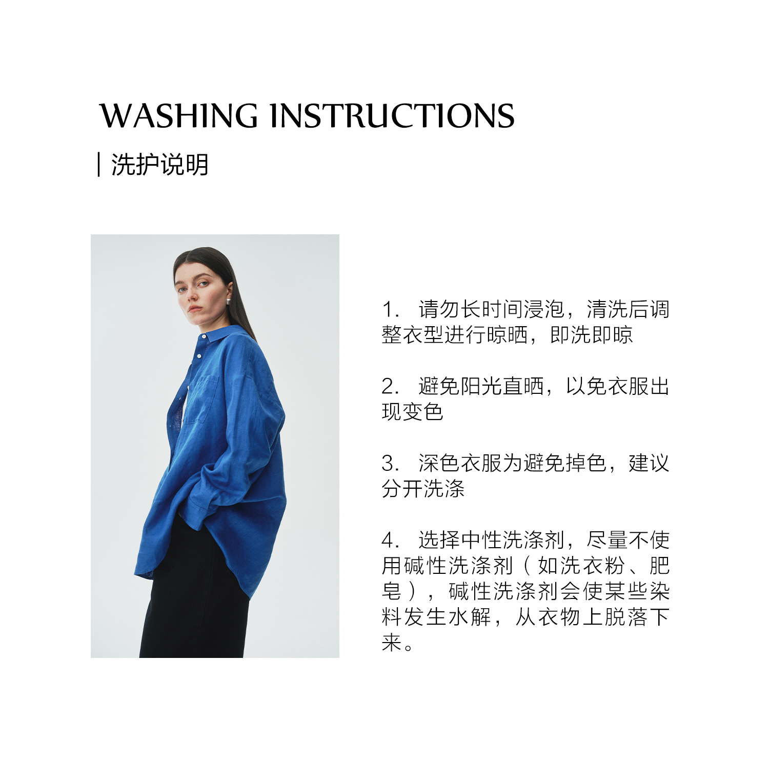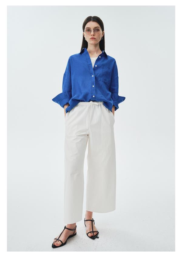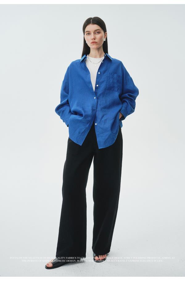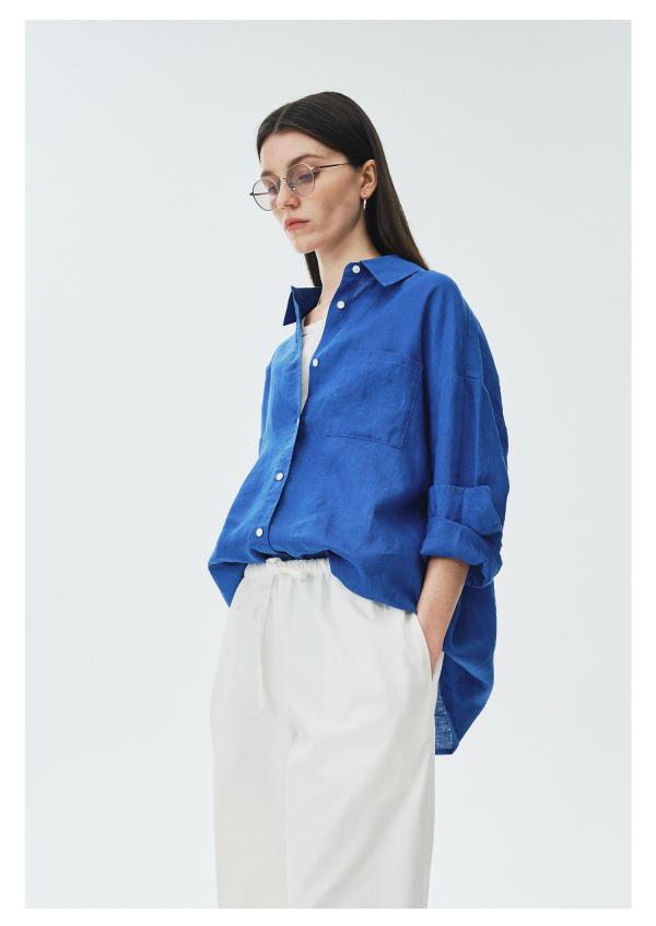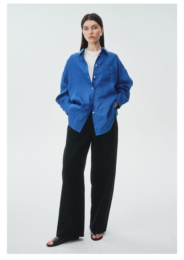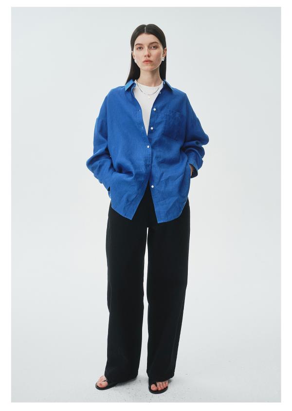 棉仓3621504010-IACHOE蓝亚麻衬衫