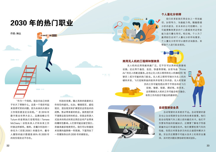未来学家预计,随着技术的高速发展,20年后我们的生活将发生巨大变化,而职业形态就是主要变化之一。当我们预测自驾车将可以上路时,当然会预料出租车司机职业的萎缩;当我们看到人工智能的能力时,我们明白大多数人类工作的内容和形式都要改变……
