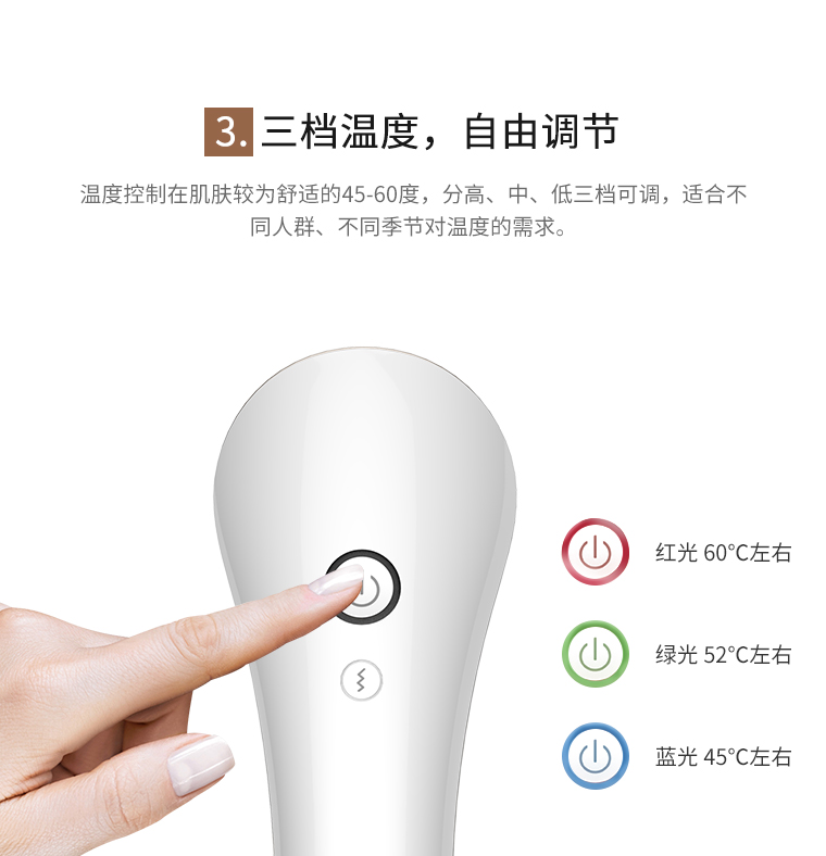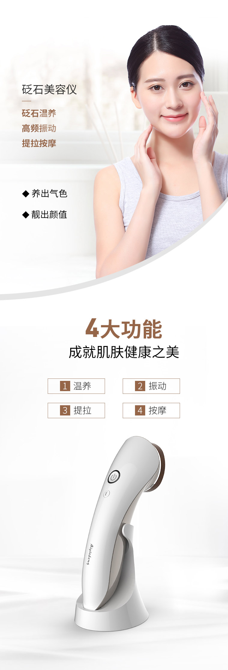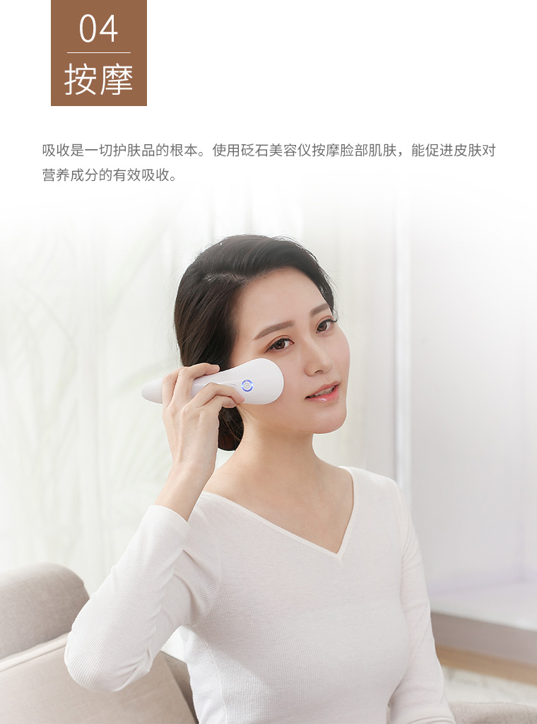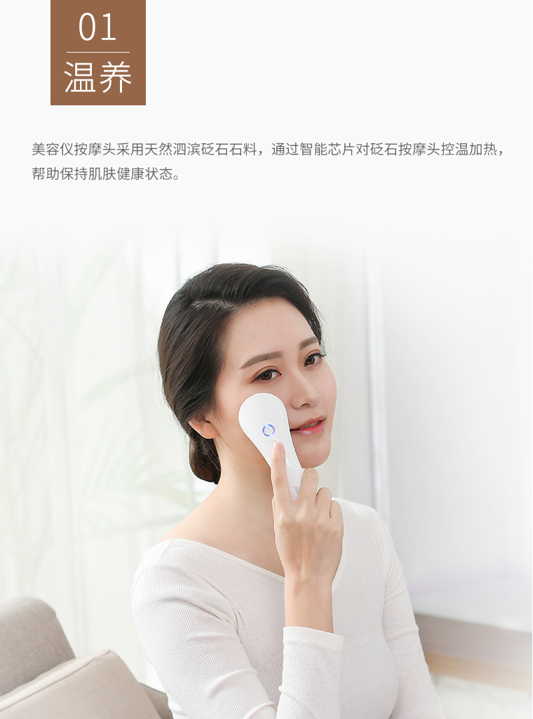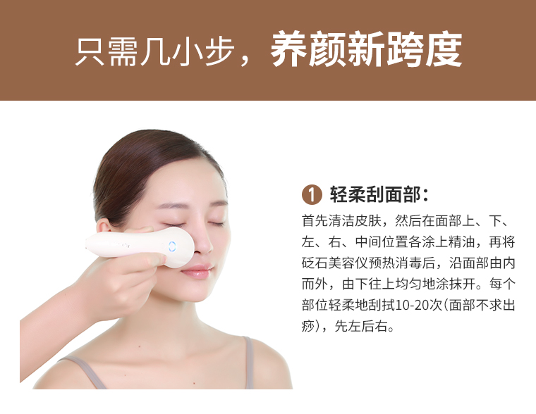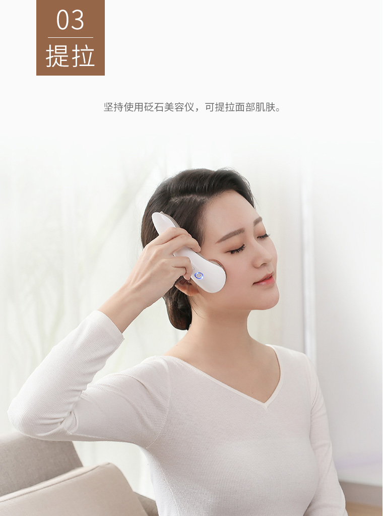 2.使用时,砭石按摩头的温度不宜过高,以面部感觉温热舒适为宜。