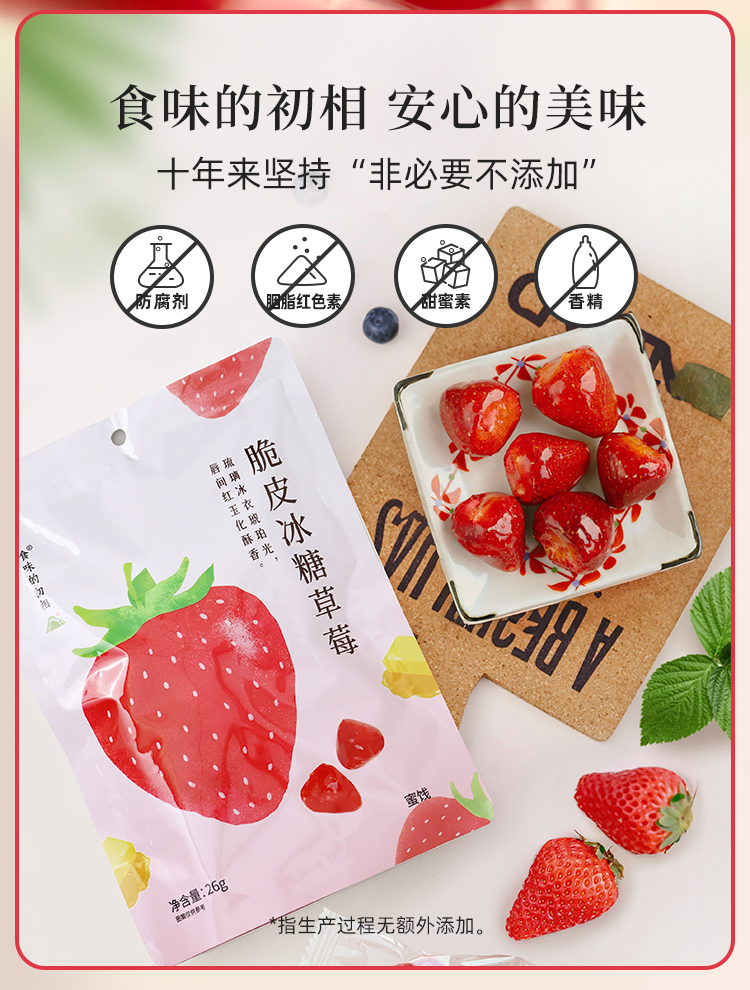 【米马团购】食味的初相 脆皮冰糖草莓26g*3袋