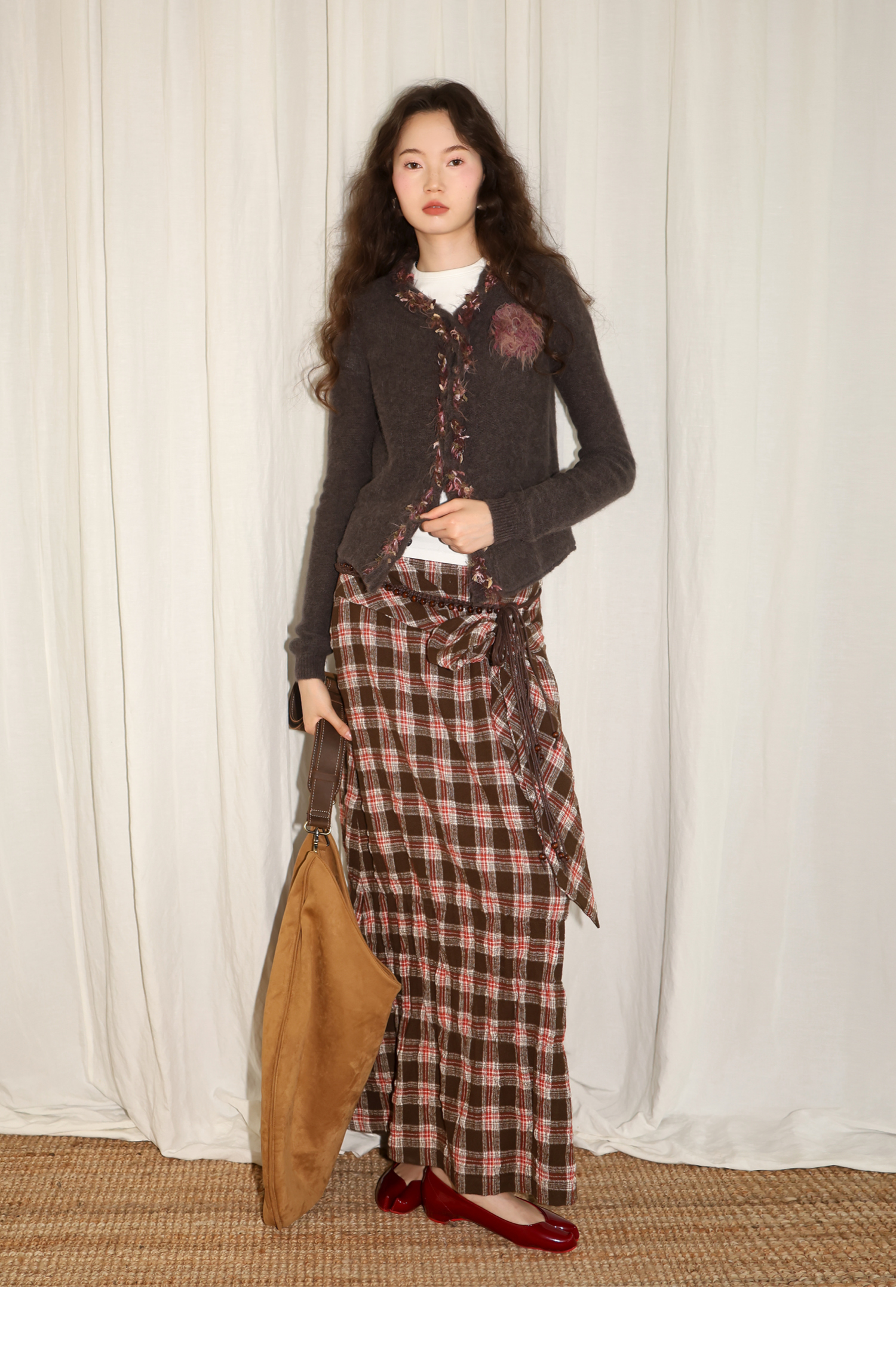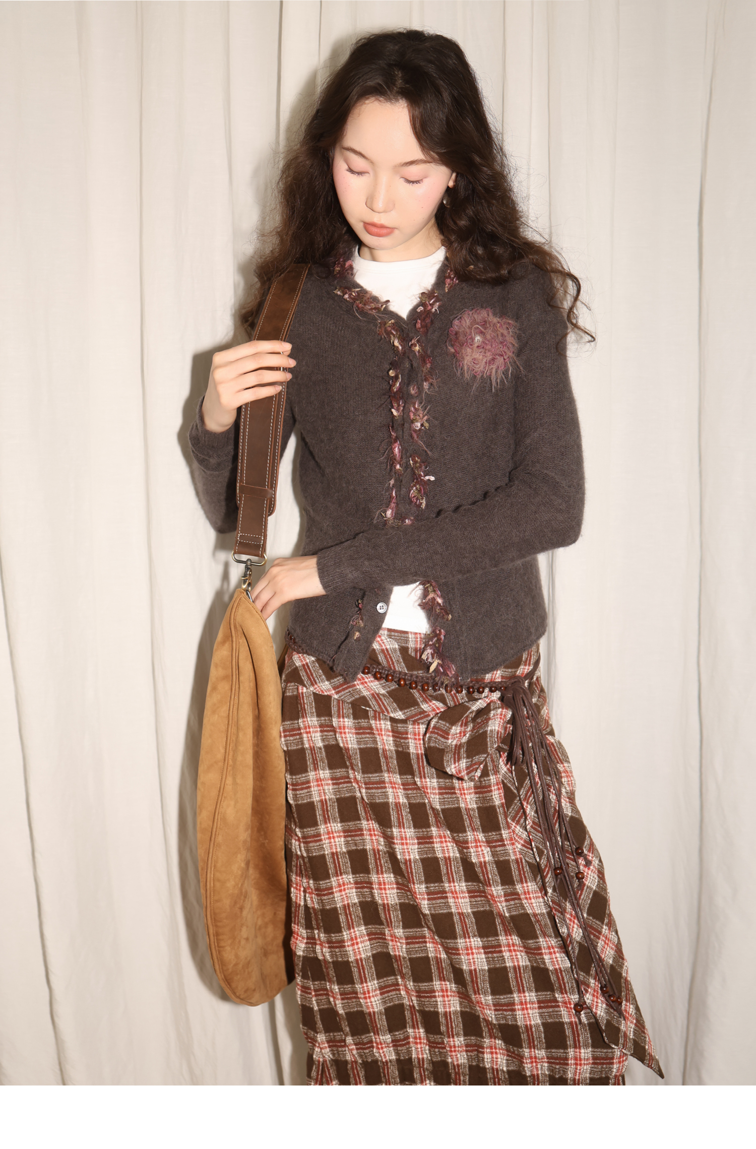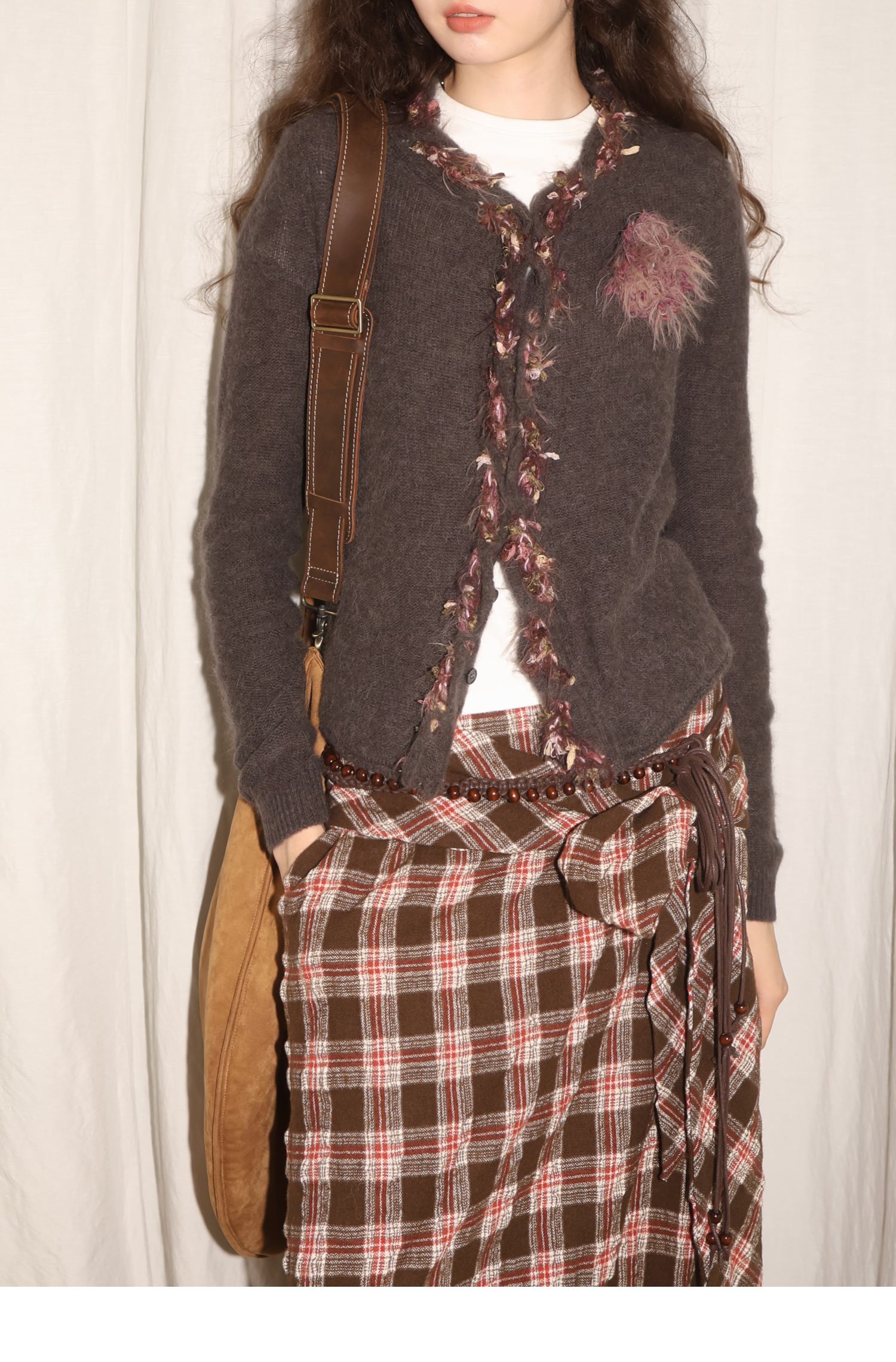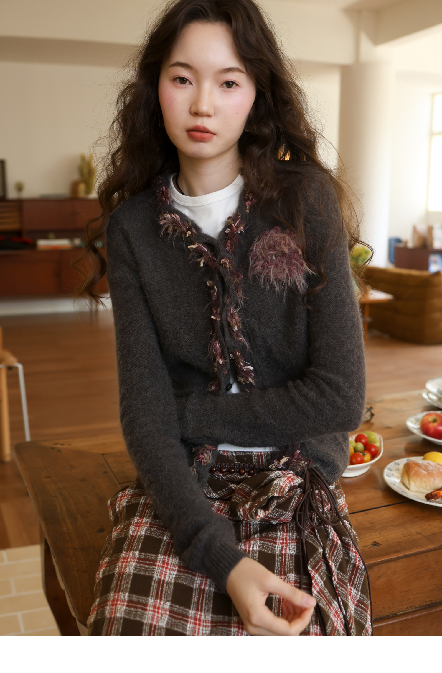 素舶 进口澳洲羊毛秘鲁羊驼毛保暖编织花朵绞花纽结门襟气质针织开衫