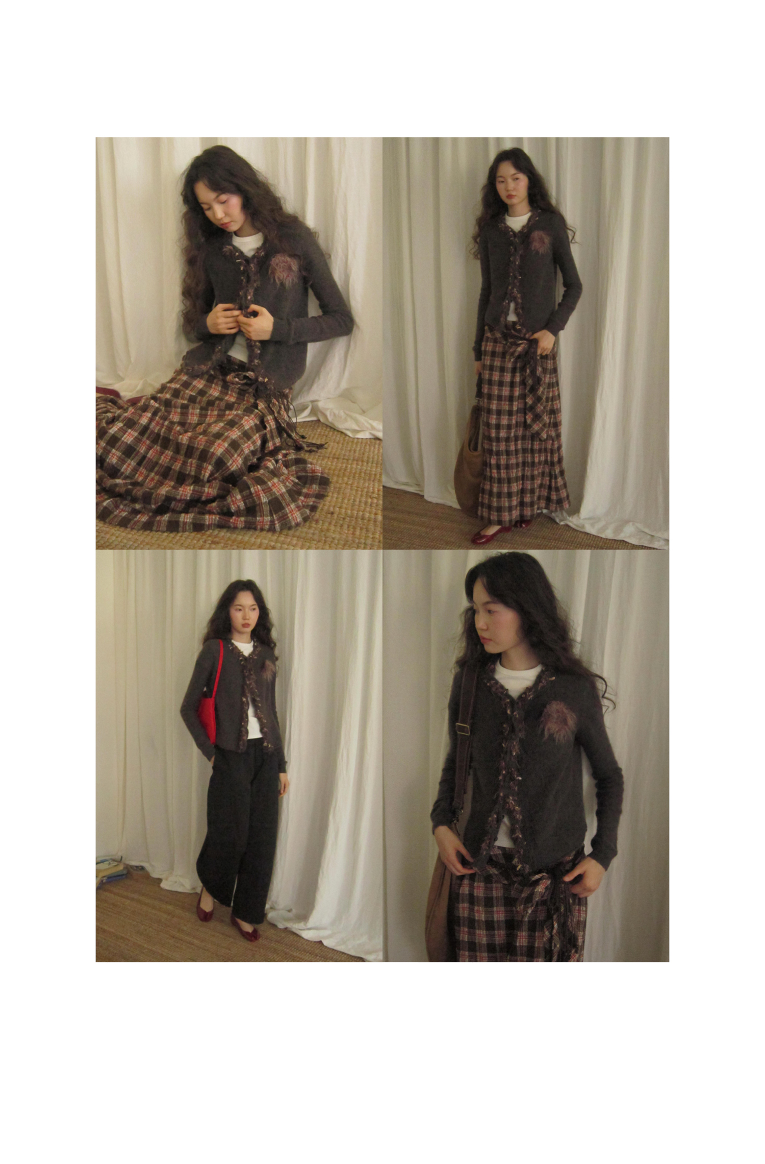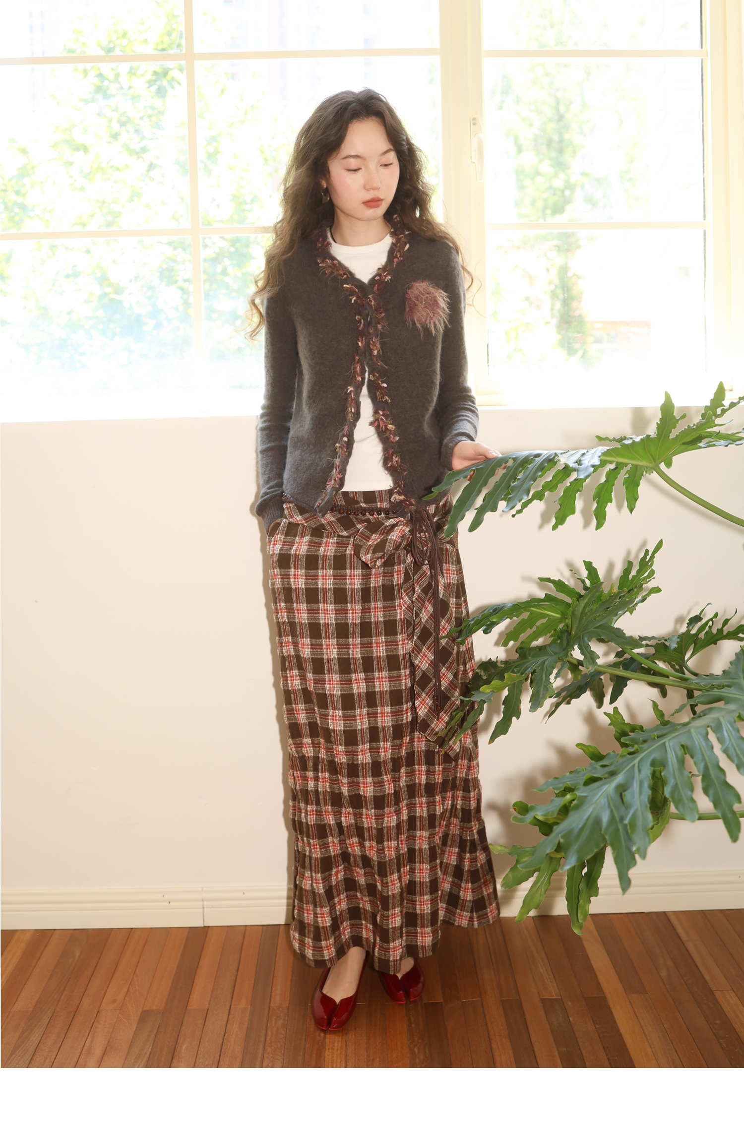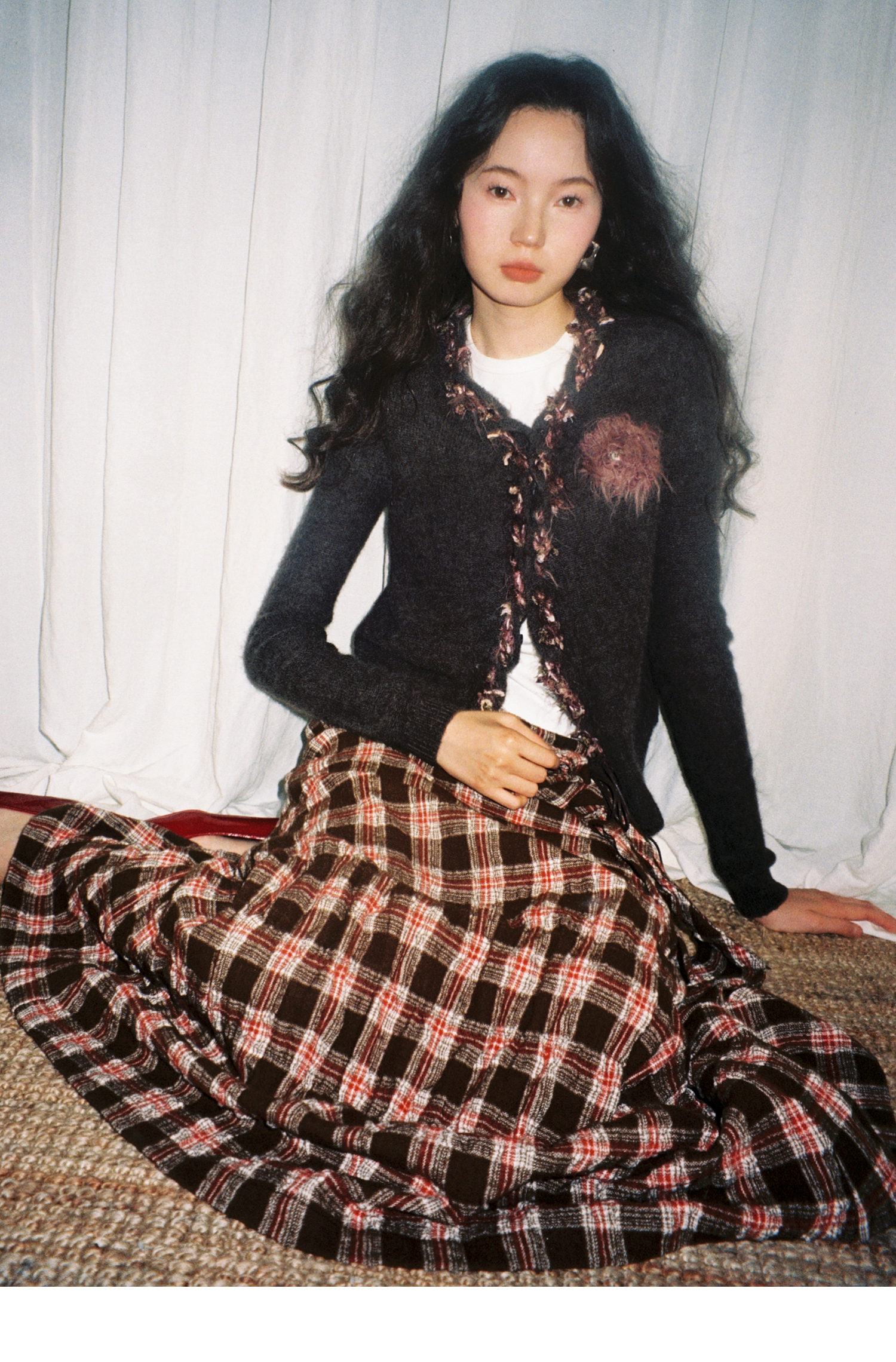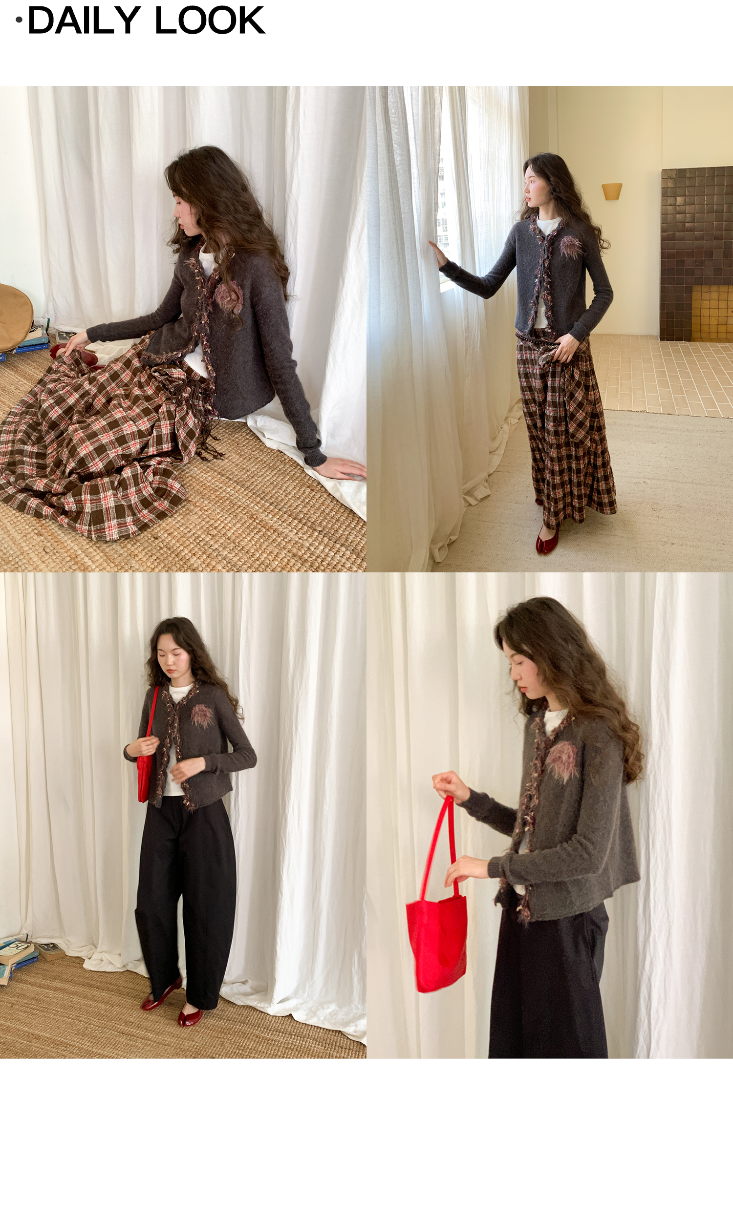 素舶 进口澳洲羊毛秘鲁羊驼毛保暖编织花朵绞花纽结门襟气质针织开衫