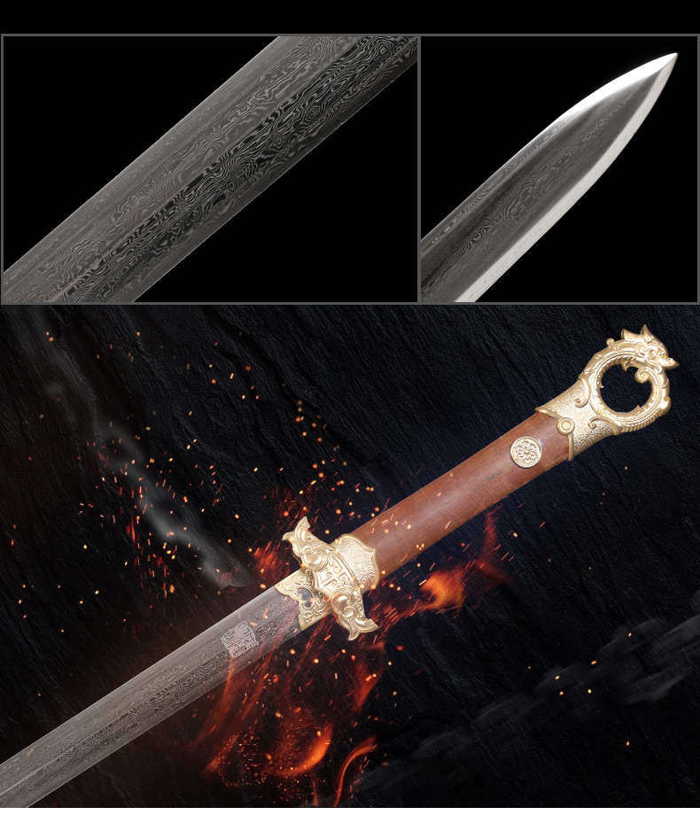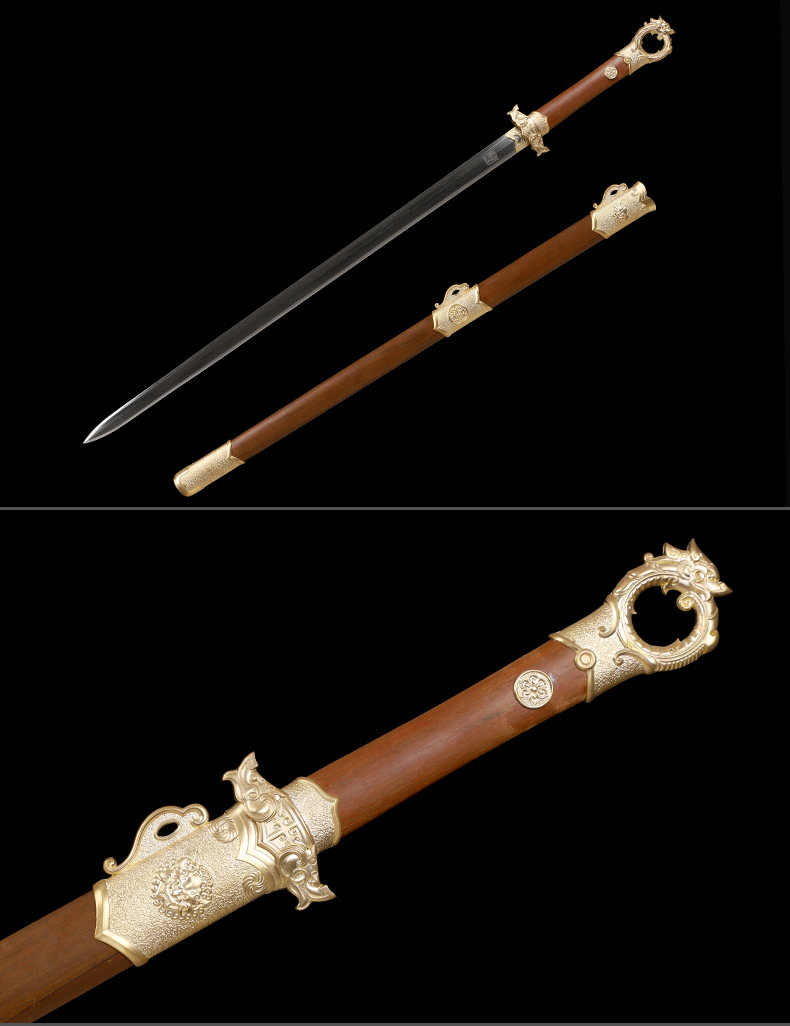 龙门环首剑唐刀剑传统一体刀剑花纹钢汉剑龙泉沈广隆宝剑 未开刃