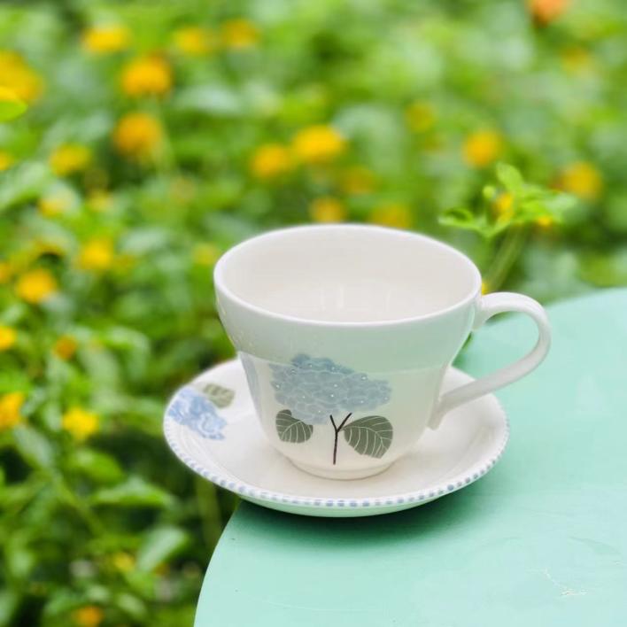 日式绣球杯茶杯点心碟咖啡杯家用马克杯组合