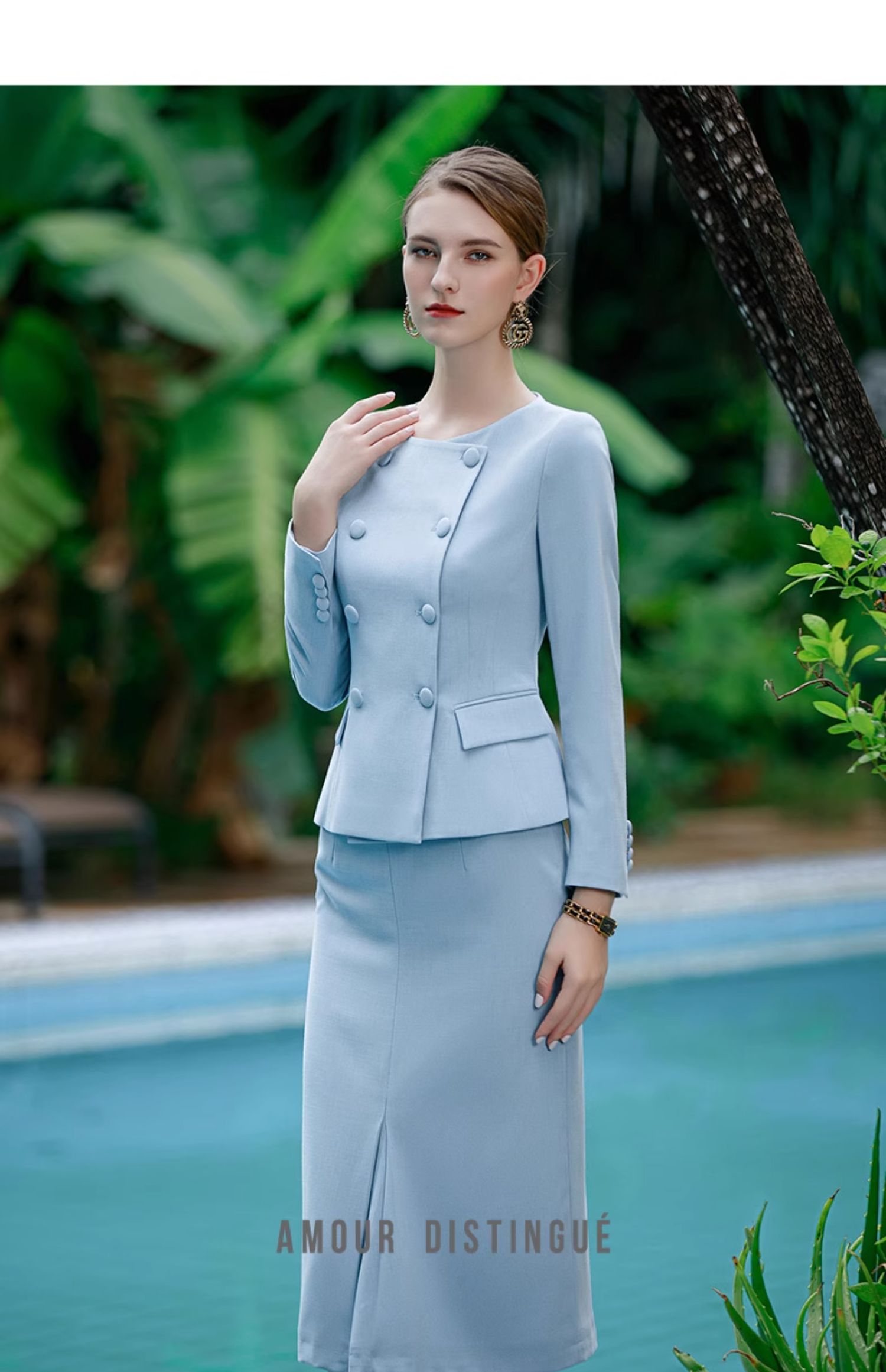 AD秋季小香风套装女名媛气质大码高端上衣半身裙韩版两件套职业装