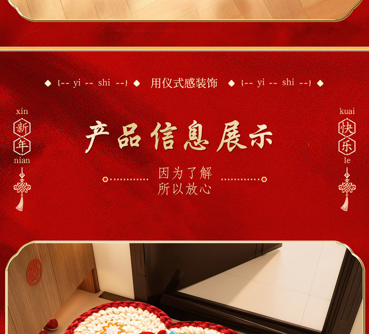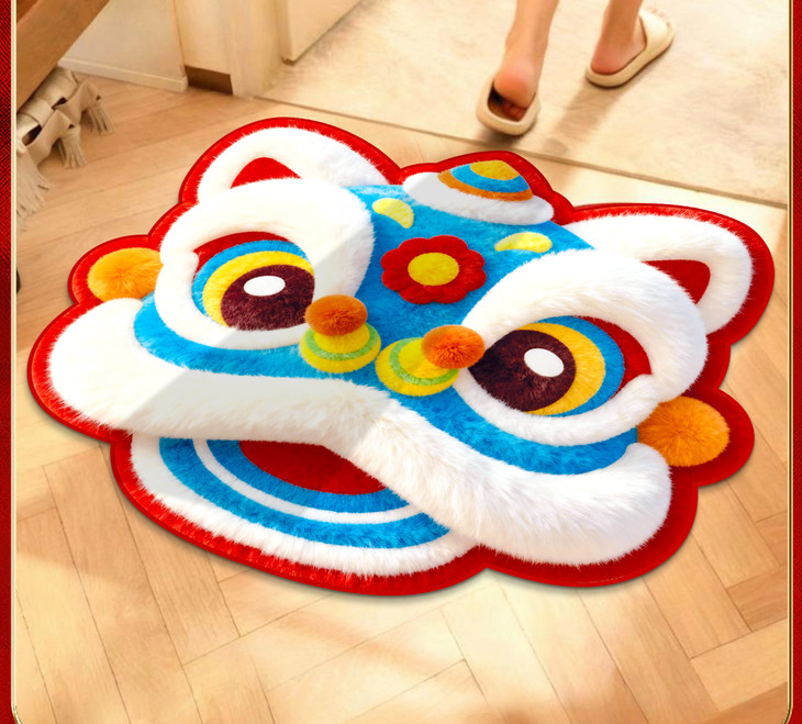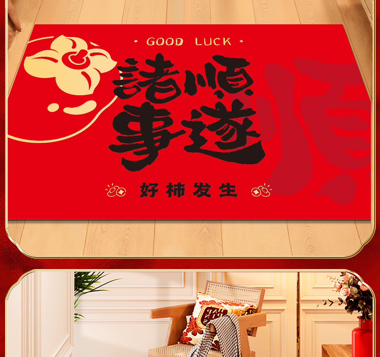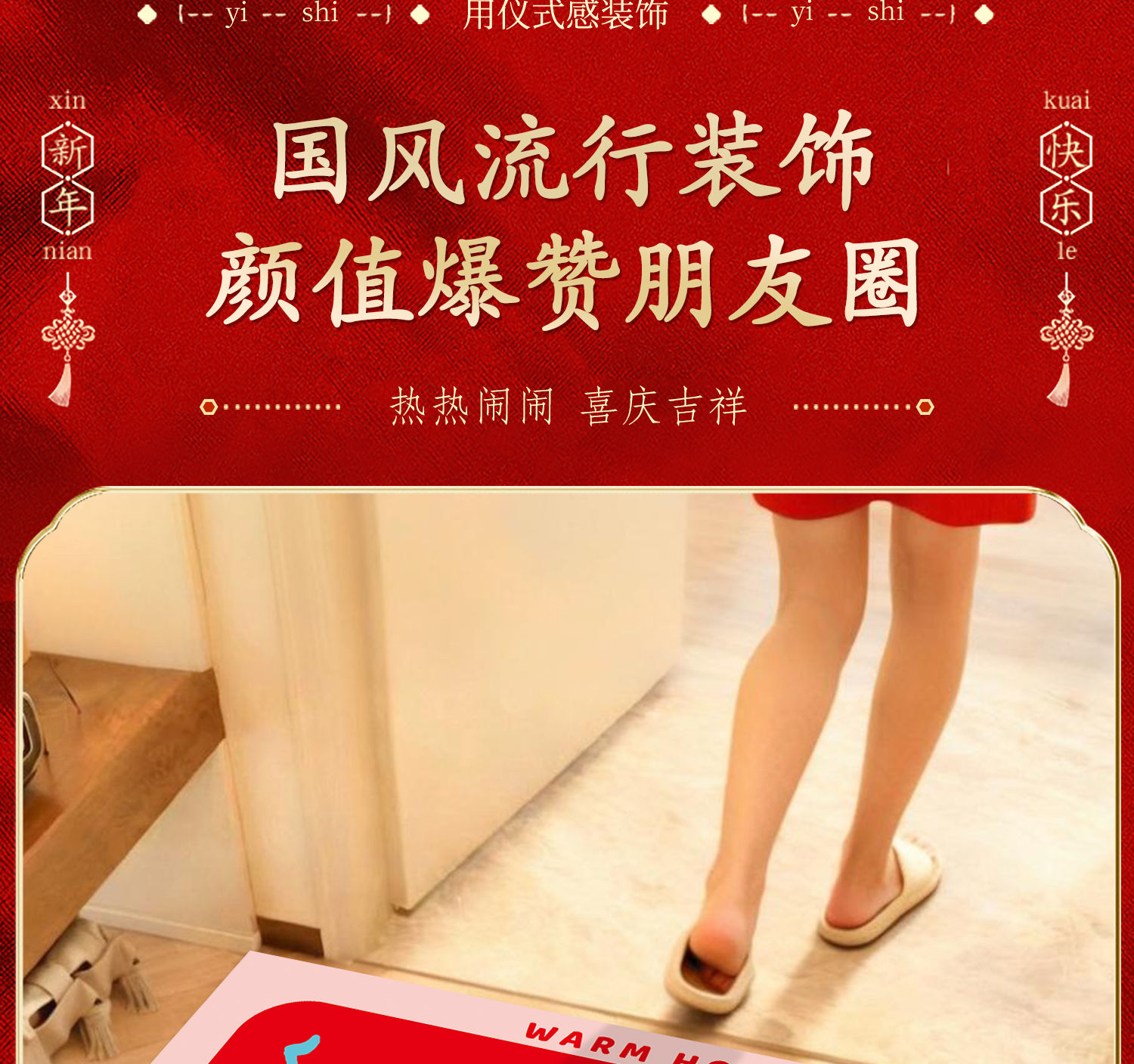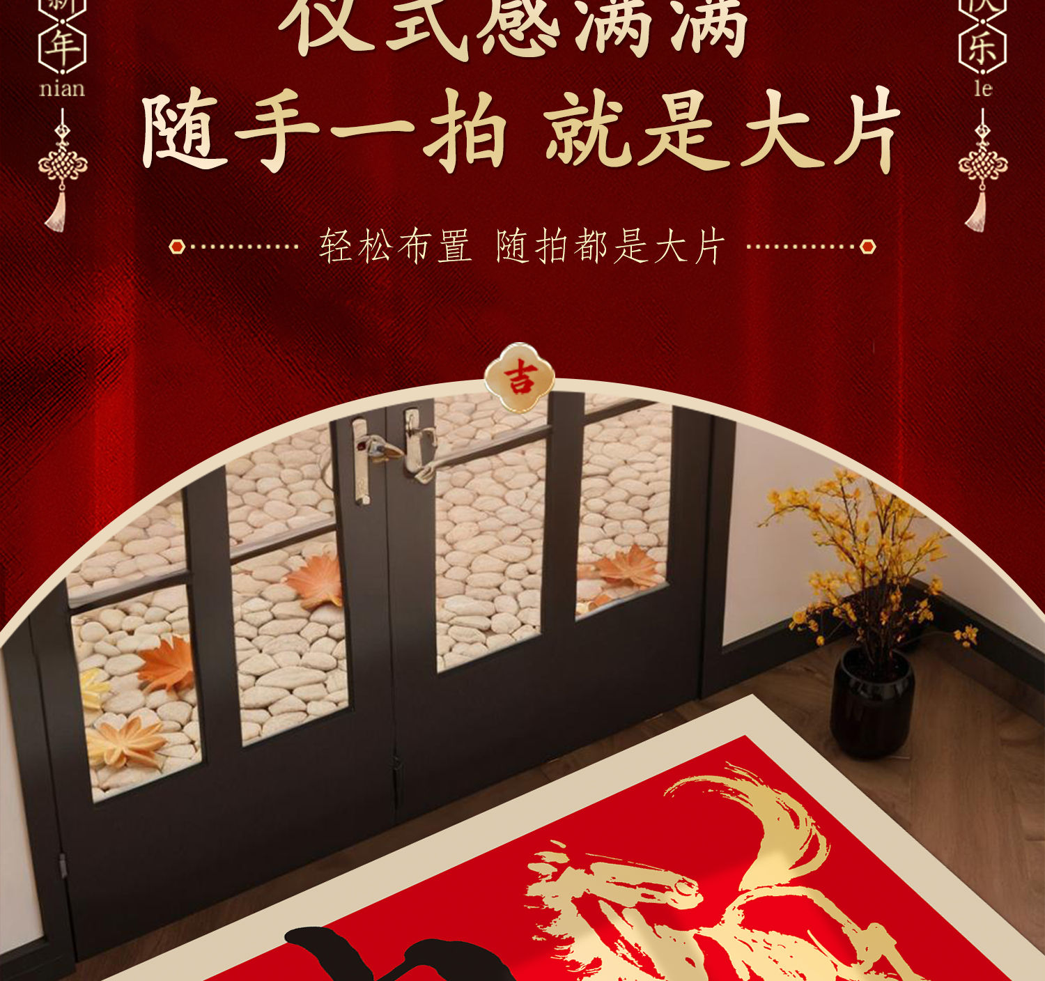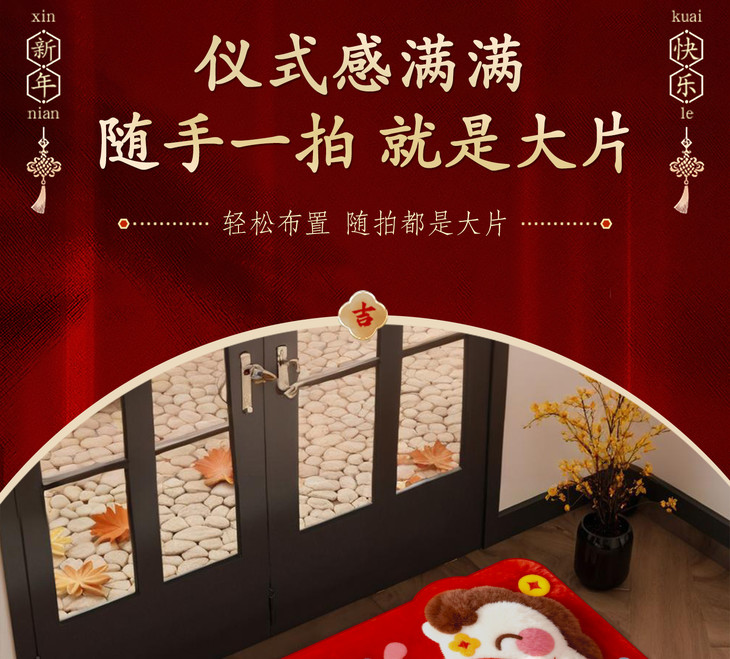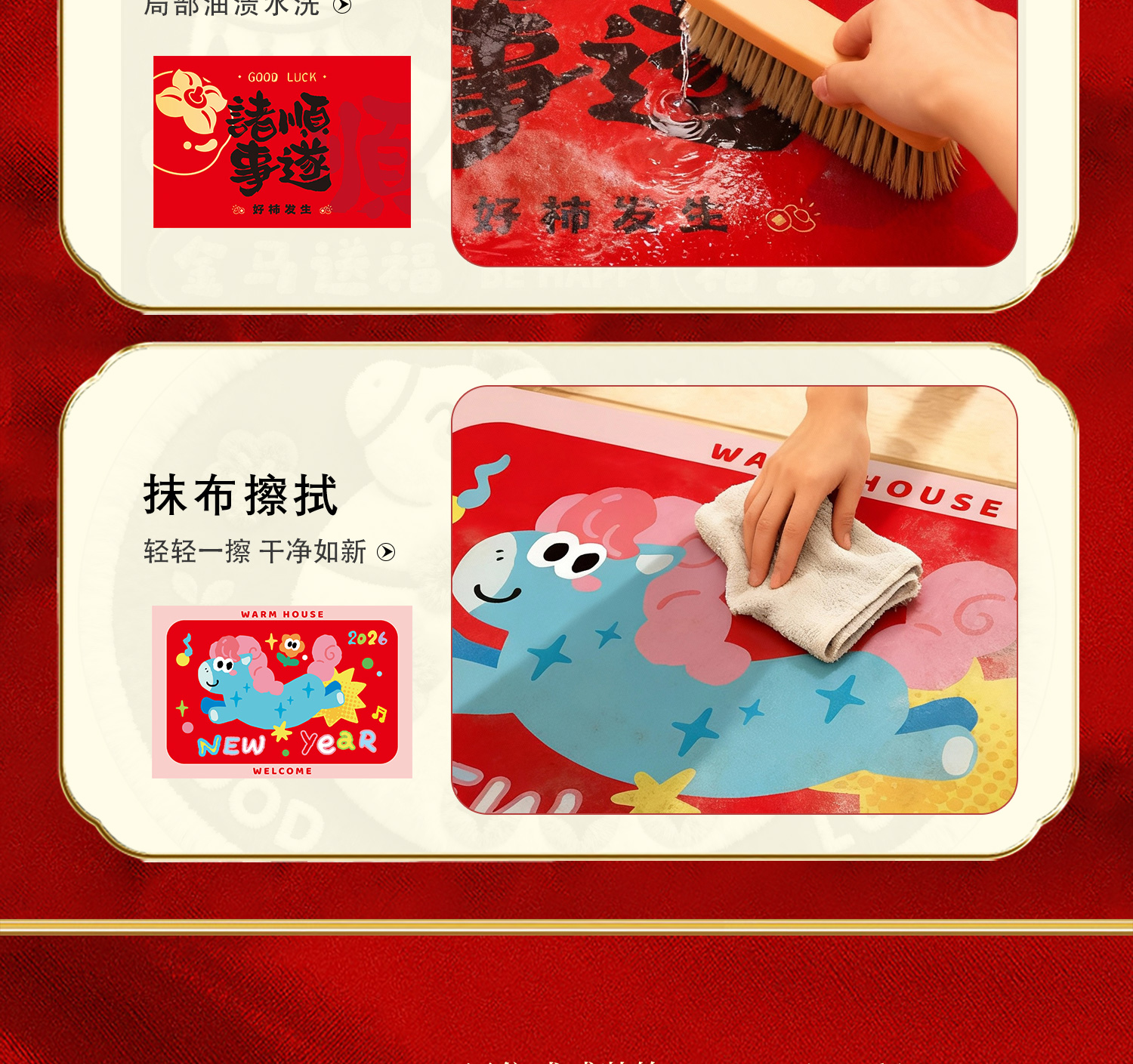 2026年新年马年入户门玄关地垫水晶绒长绒立体图案红色喜庆进门脚垫新年地毯家用防滑门垫子大尺寸60*90