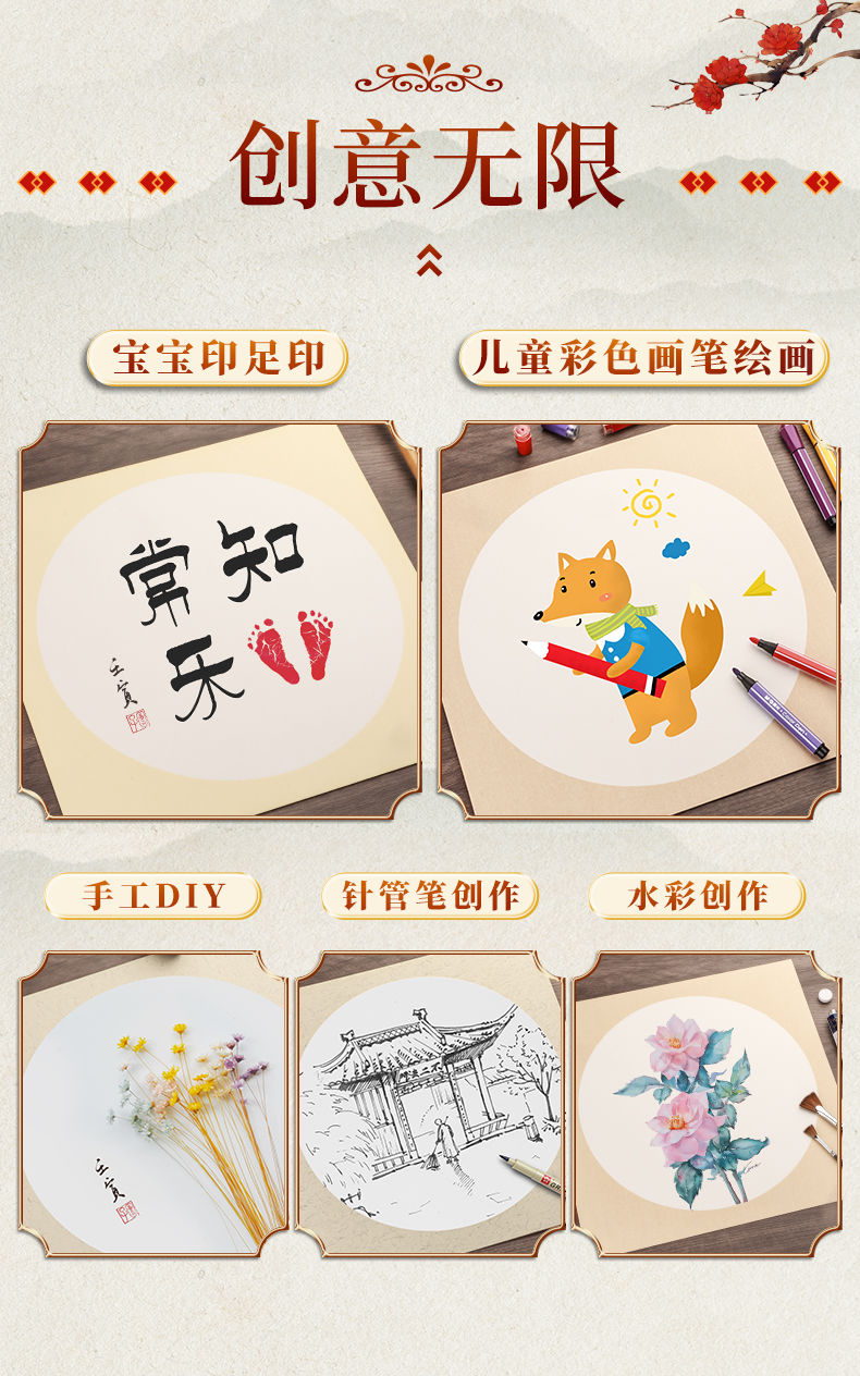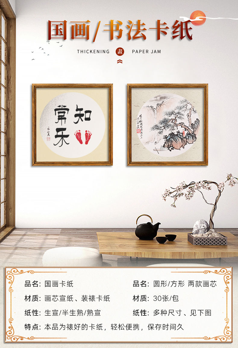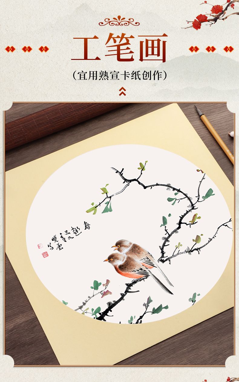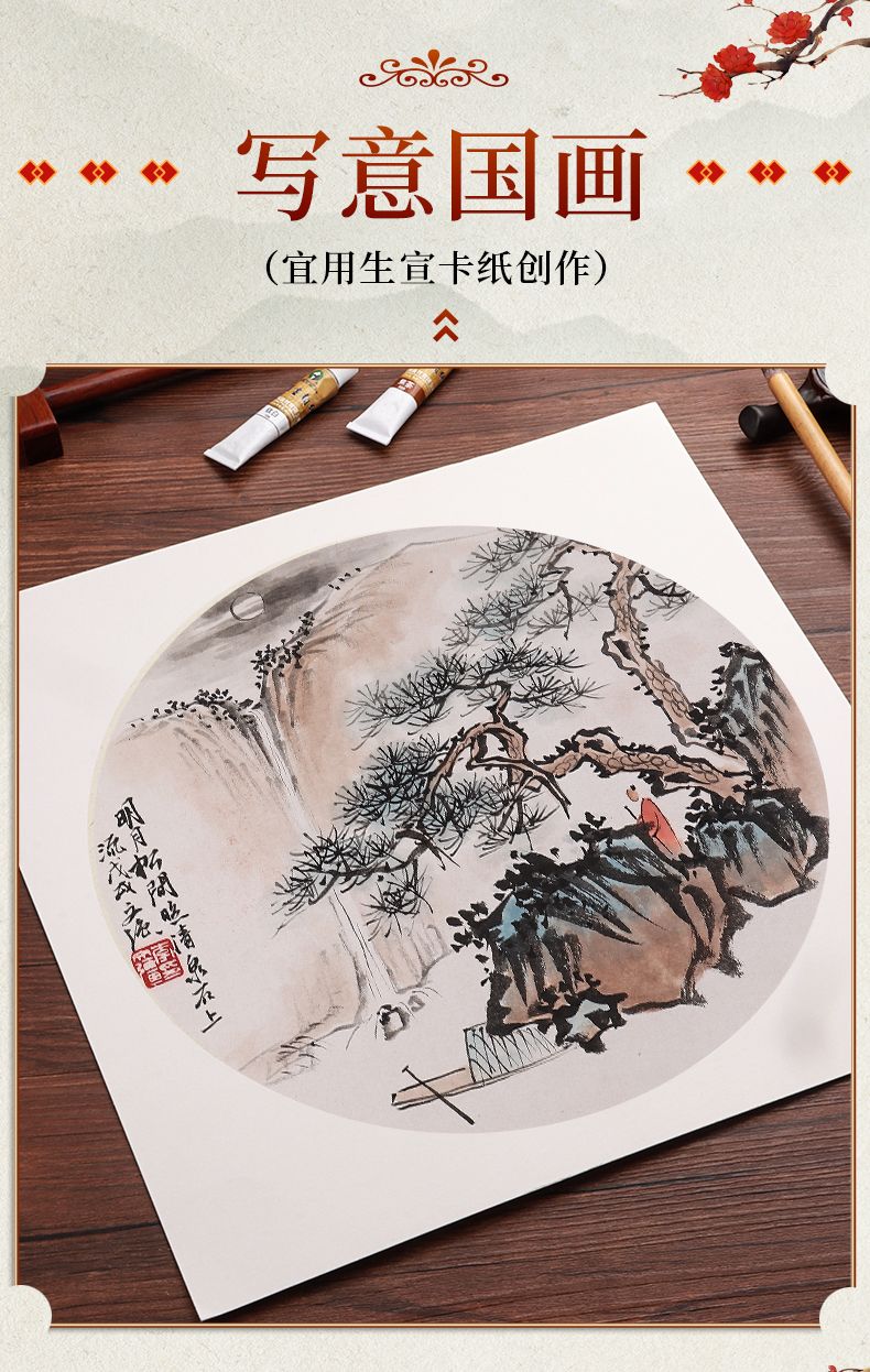 国画生宣卡纸加厚镜片纸熟宣半生熟镜面书法宣卡纸工笔画圆形正方