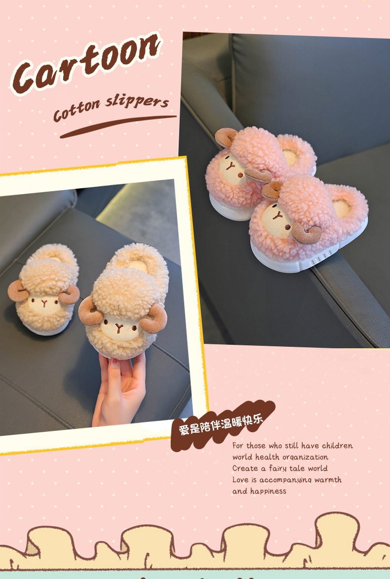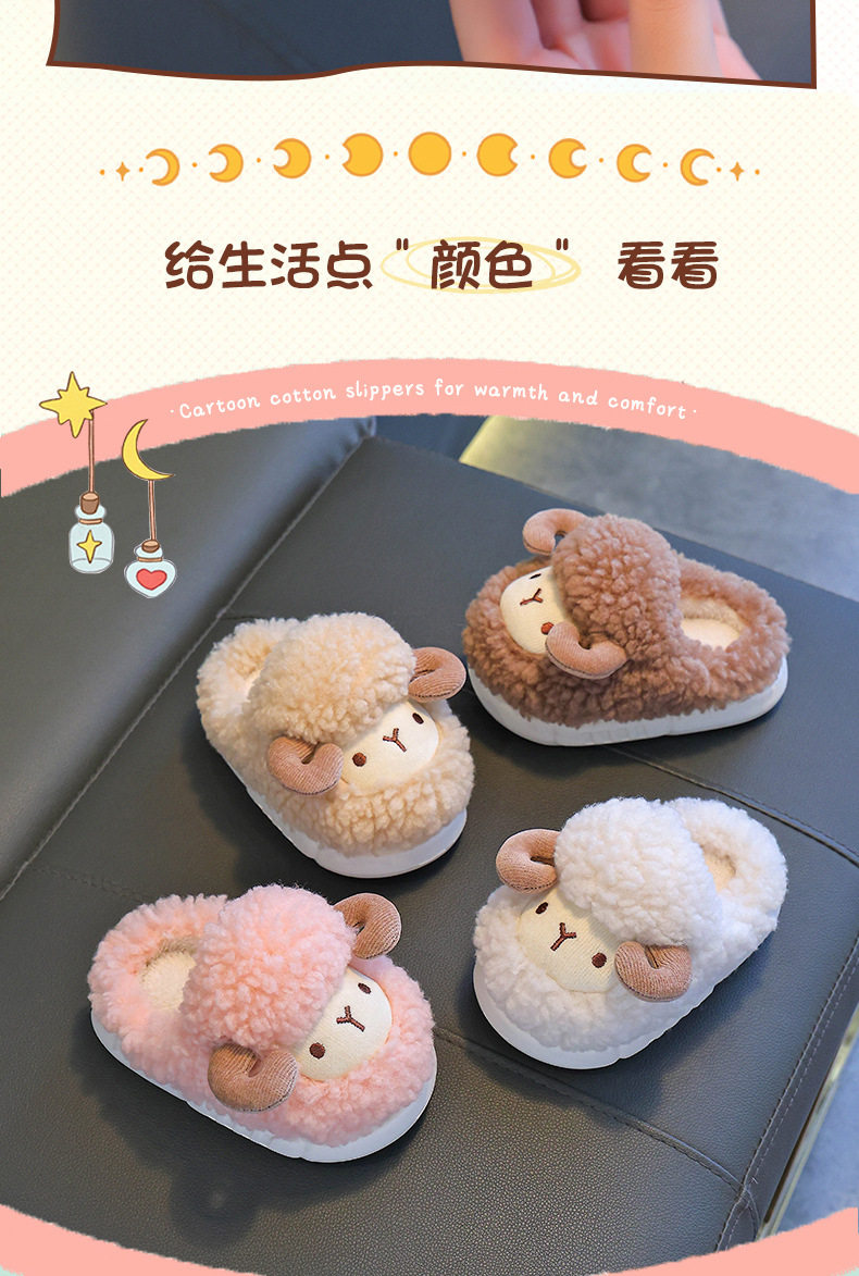 儿童棉拖鞋秋冬季男女童可爱保暖加绒毛毛中小童防滑宝宝包跟棉拖