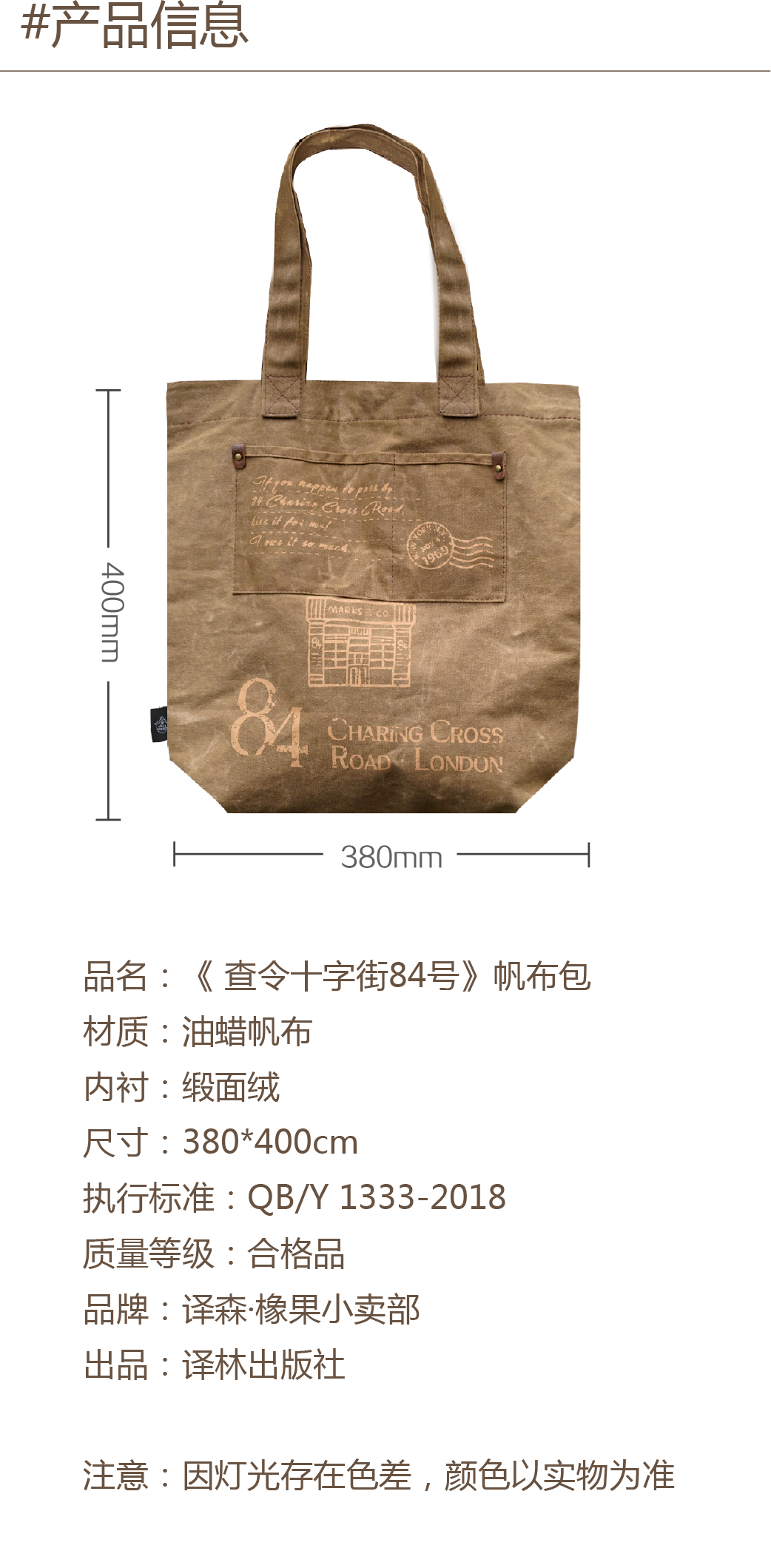 【译森文创】《查令十字街84号》油蜡帆布包