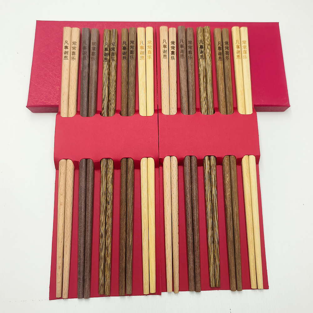 新品常常喜乐家庭分餐筷 一盒十双,五种材质:红檀木、鸡翅木、榉木、铁木、黄檀木