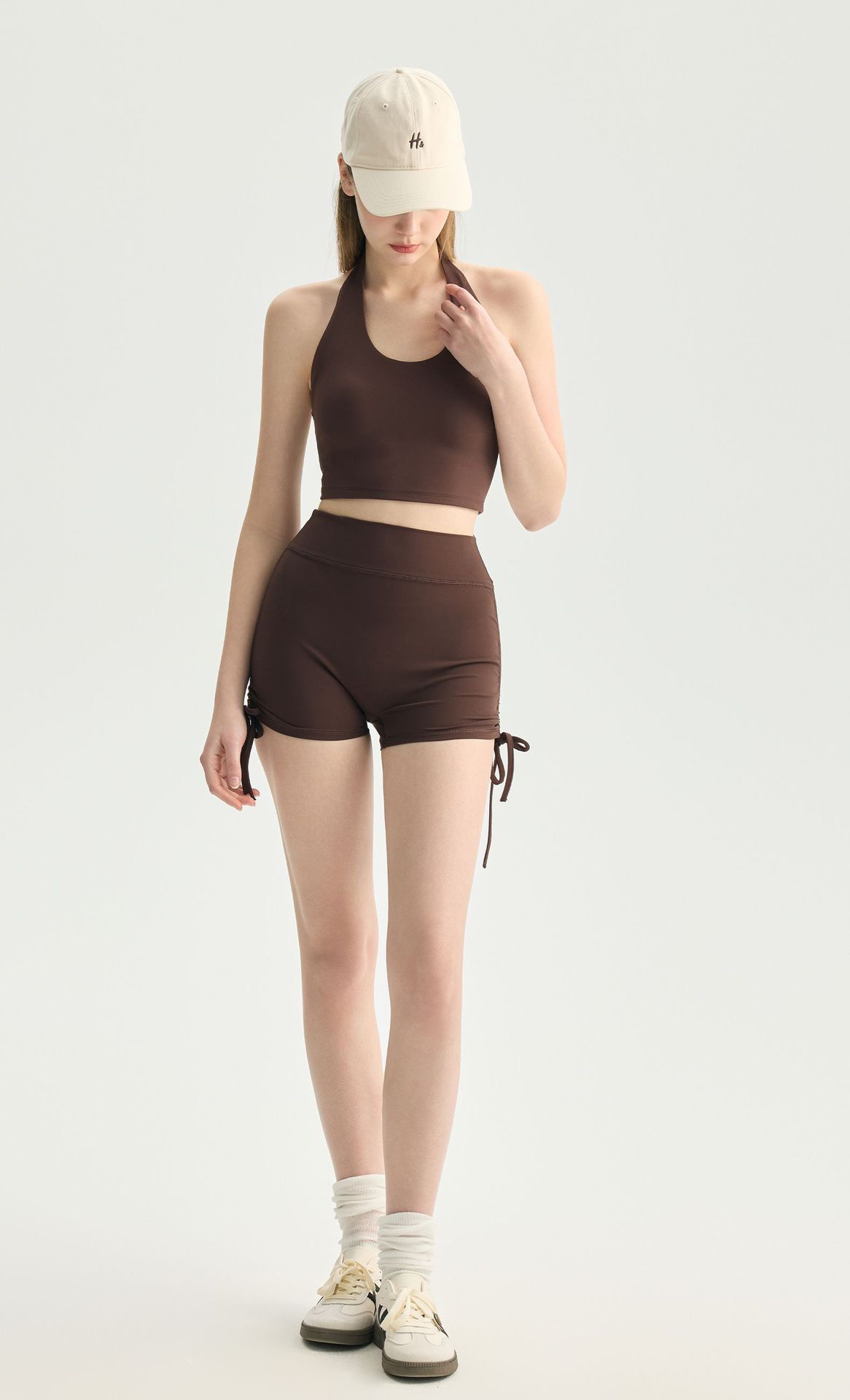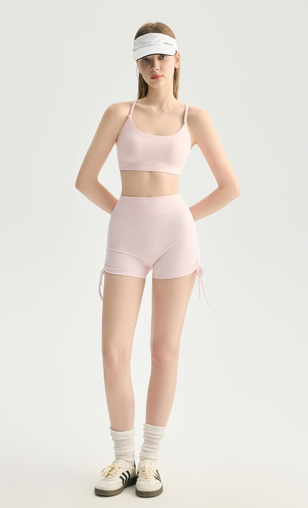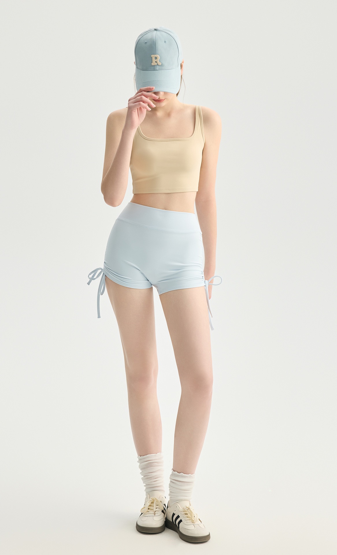新款抽绳裤瑜伽短裤跑步健身瑜伽裤女高腰提臀热裤裸感显腿长紧身短裤 000DK62004AD