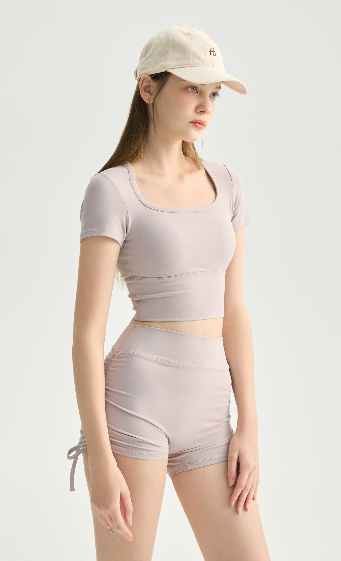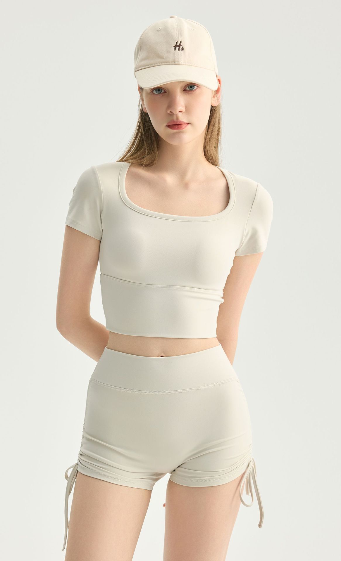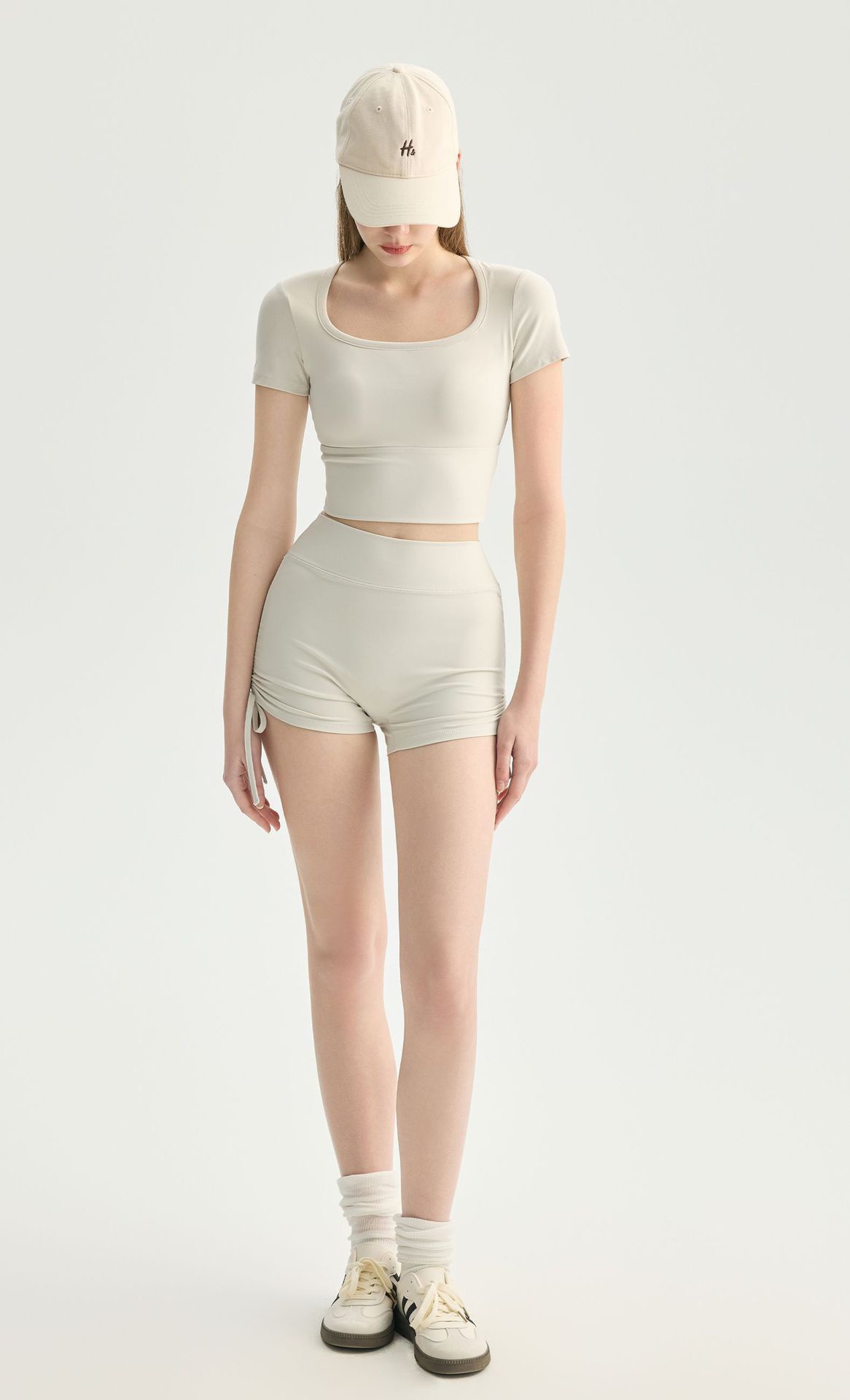 新款抽绳裤瑜伽短裤跑步健身瑜伽裤女高腰提臀热裤裸感显腿长紧身短裤 000DK62004AD
