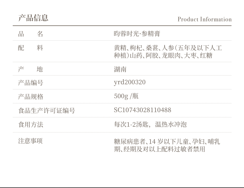 【昀蓉时光·参精膏】 500g/瓶 --选材地道、慢浸长泡、武火熬汁、文火煎稠(包装升级·新老包装随机发货)