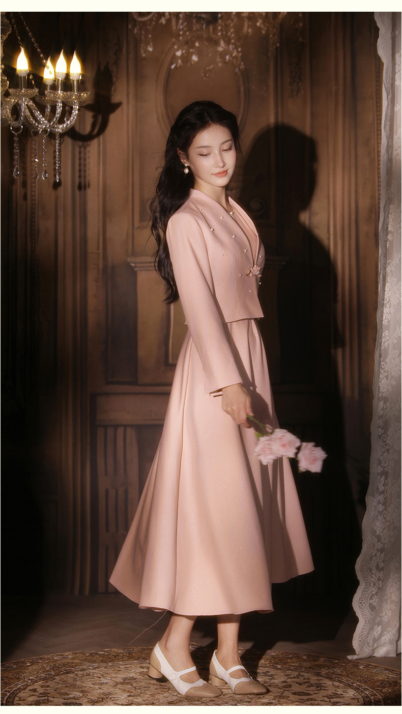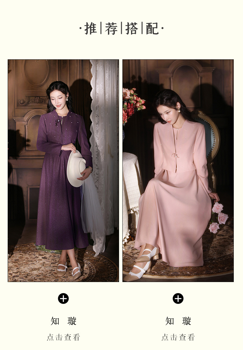 逸红颜知媛2025秋冬新款复古轻奢精致套装伞摆连衣裙钉珠短外套女