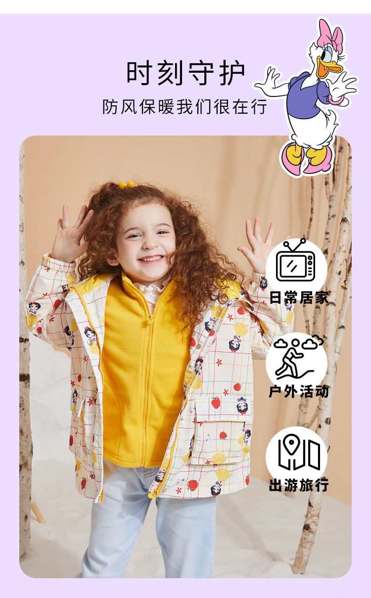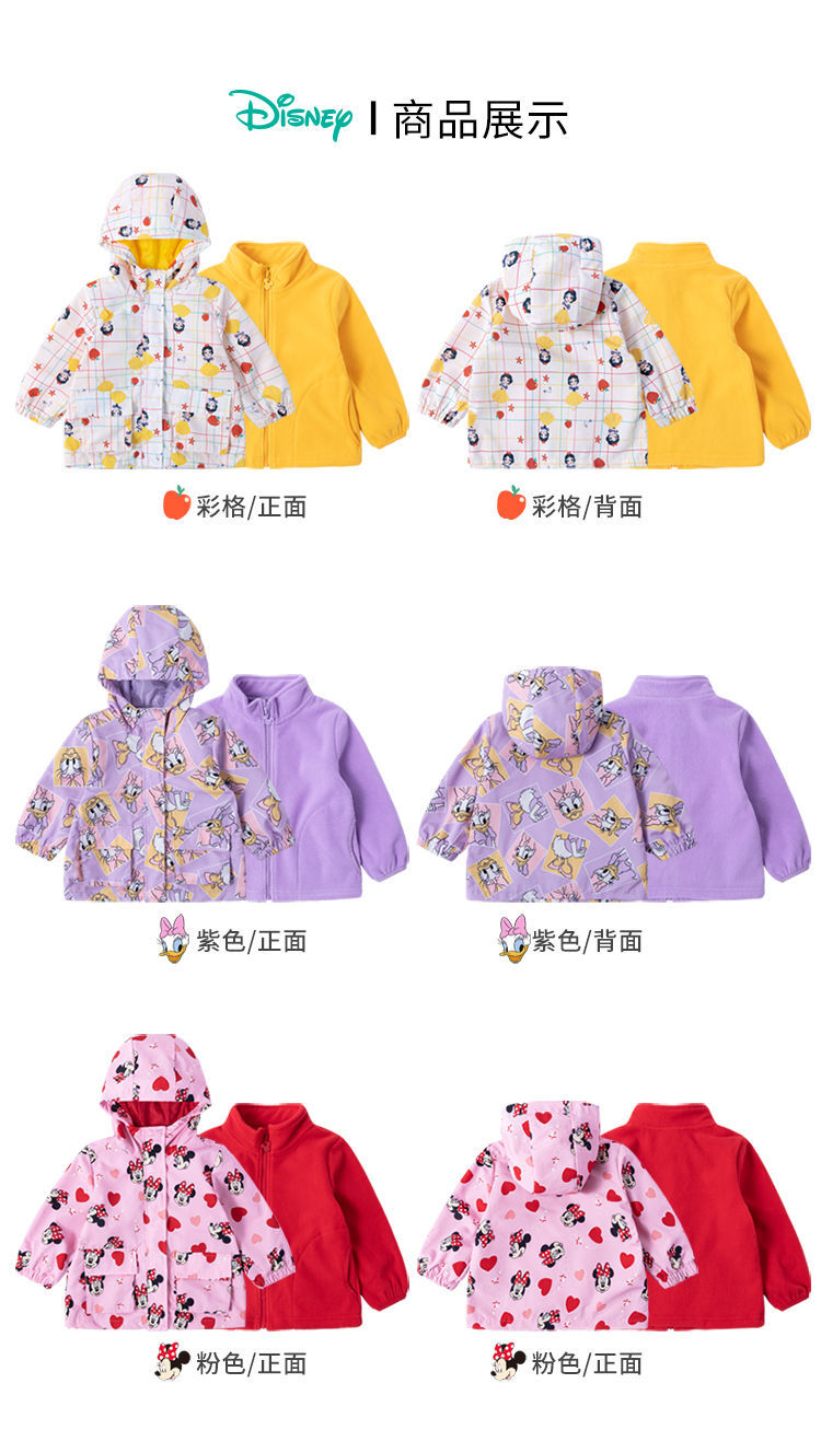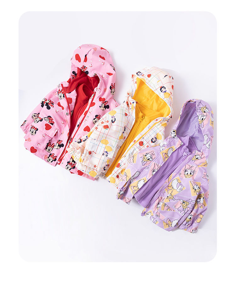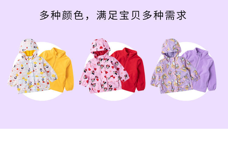 迪士尼童装女童撞色风衣洋气防风春秋外套摇粒绒内搭儿童冲锋衣213S1552