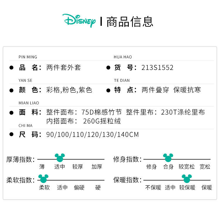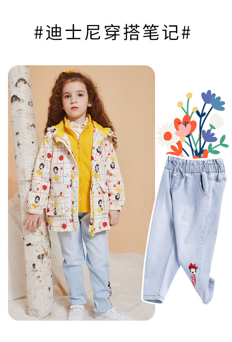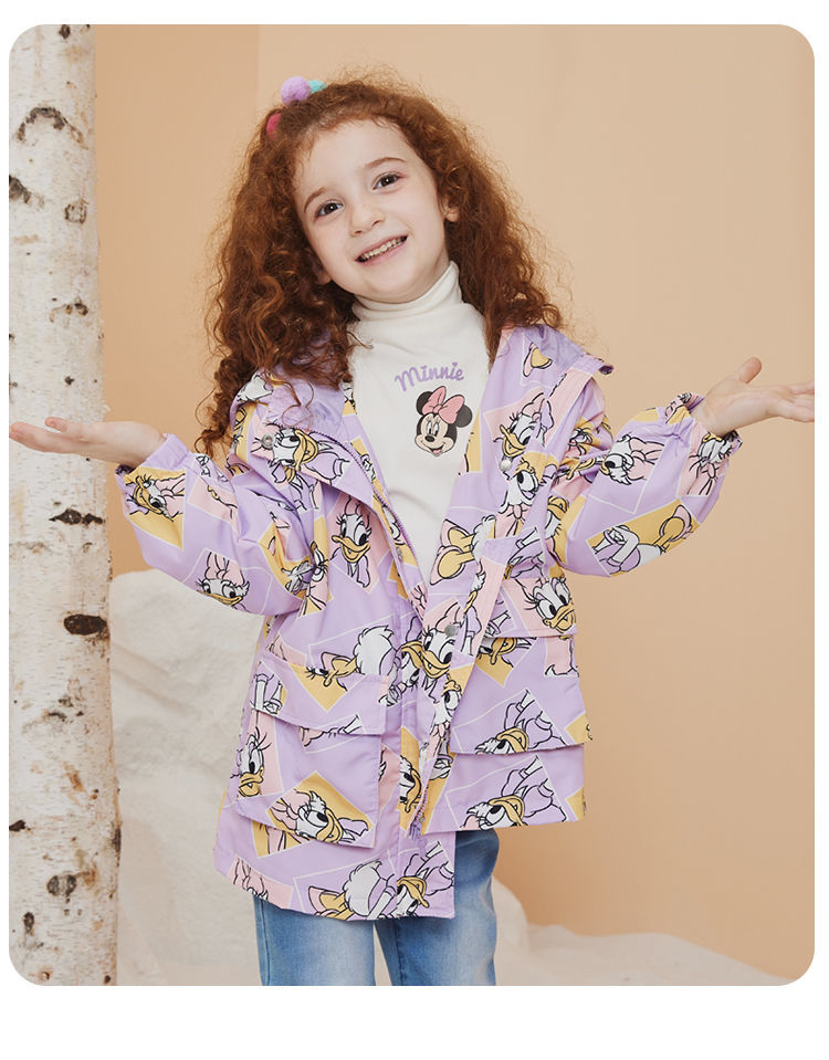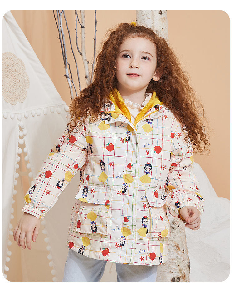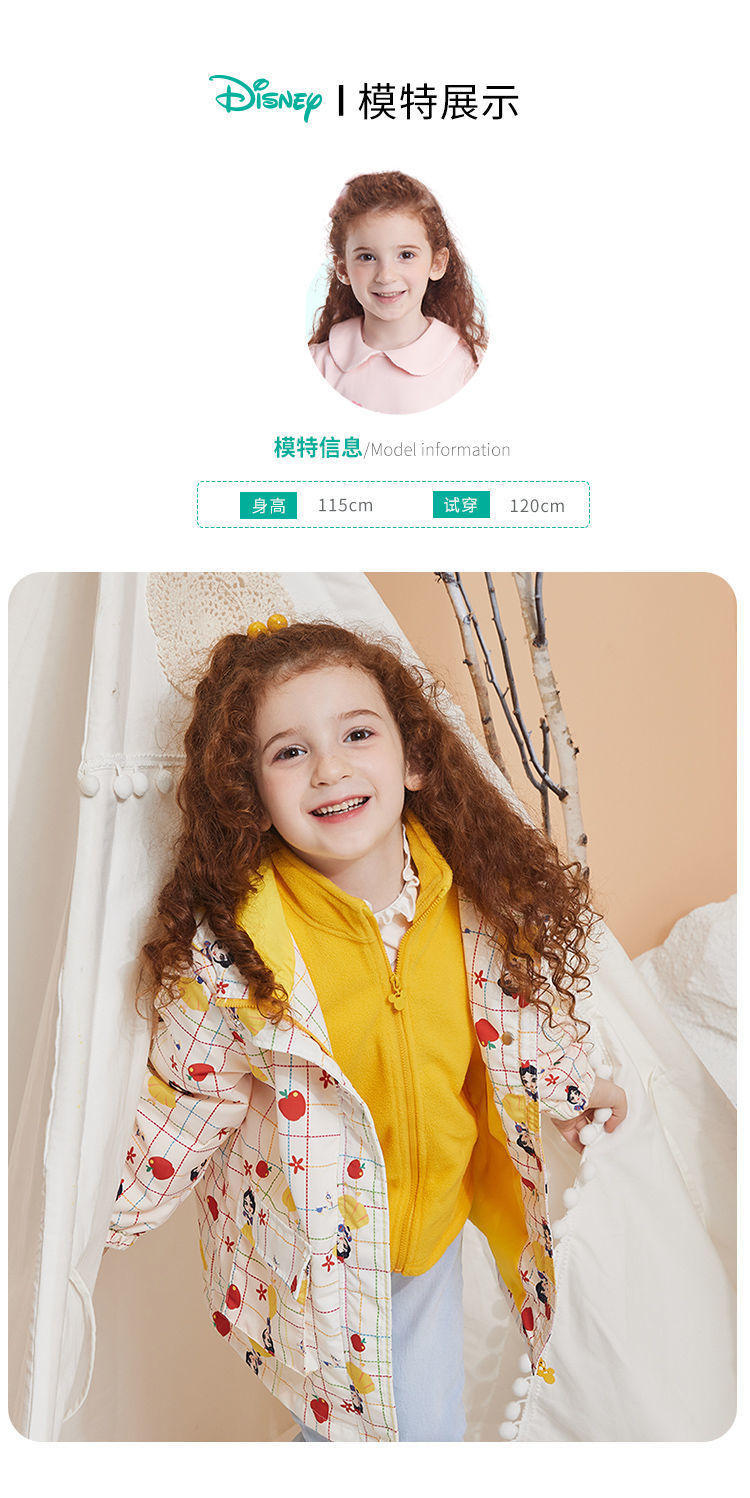 迪士尼童装女童撞色风衣洋气防风春秋外套摇粒绒内搭儿童冲锋衣213S1552