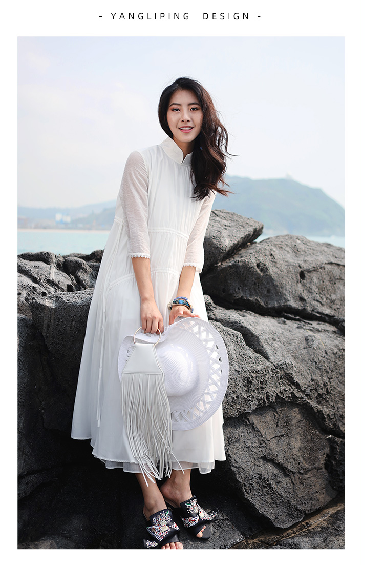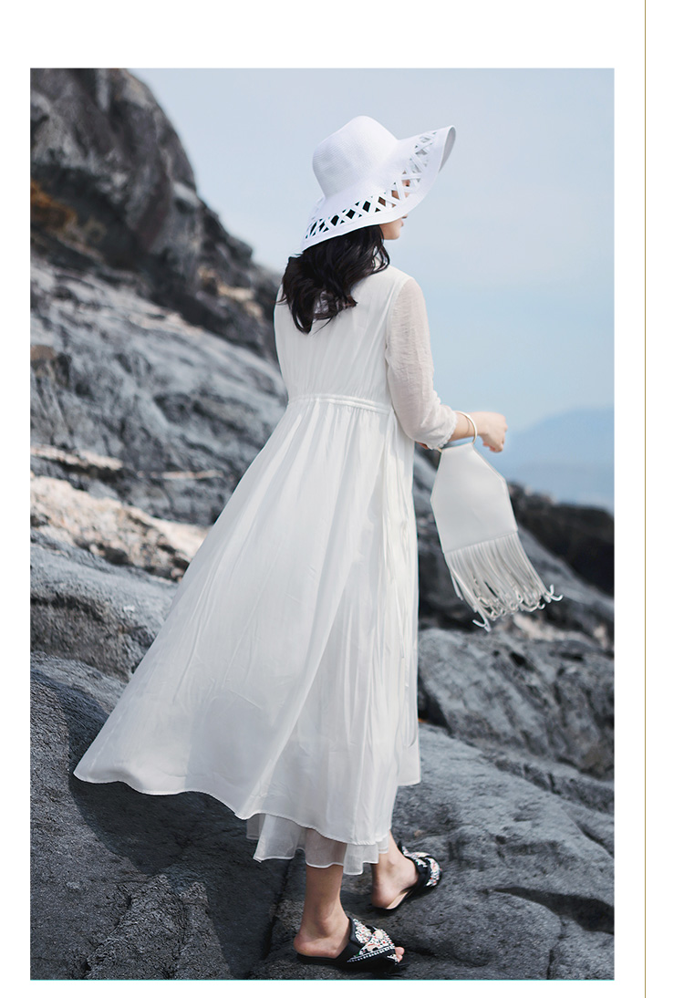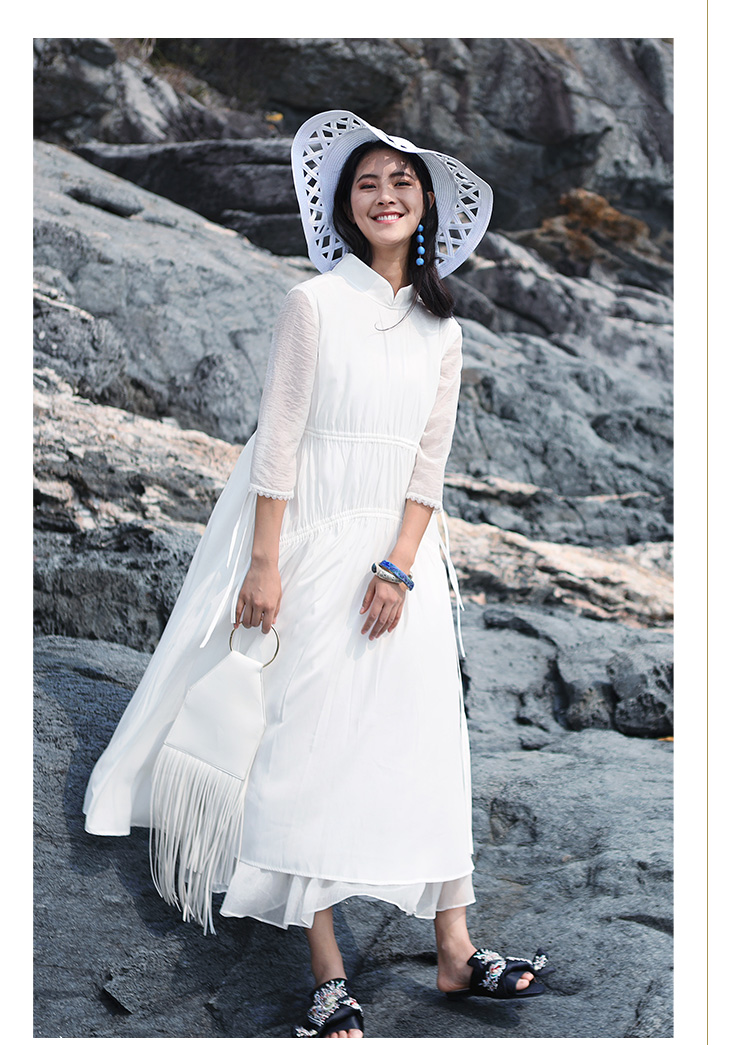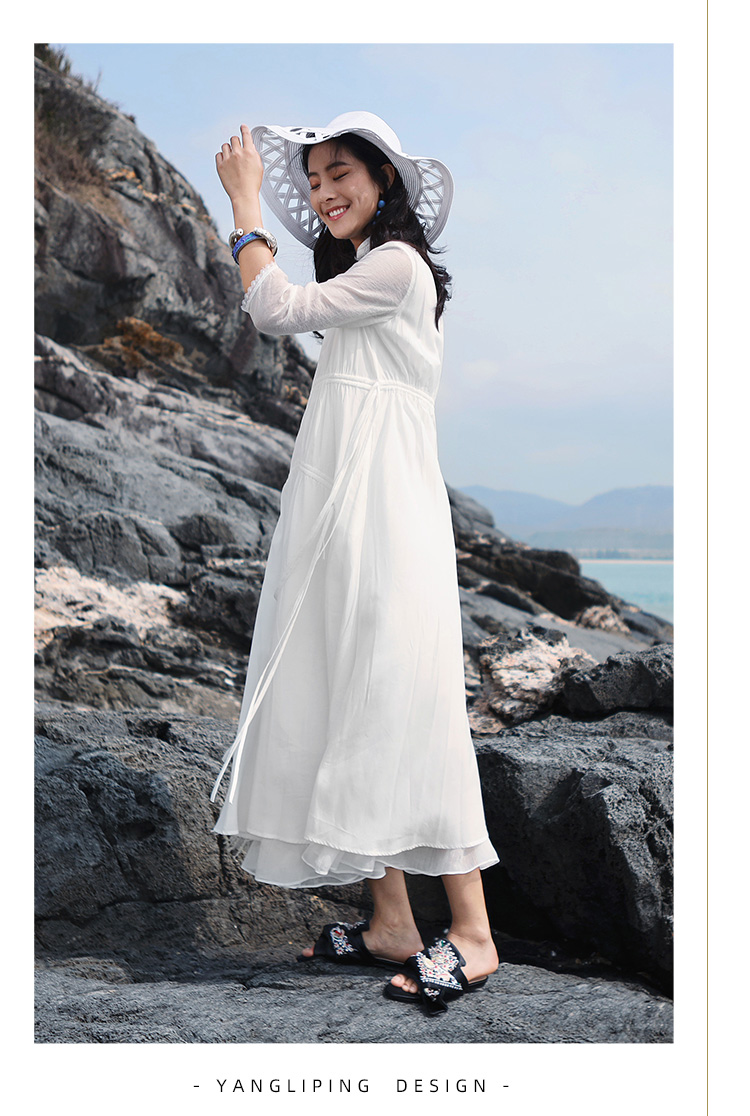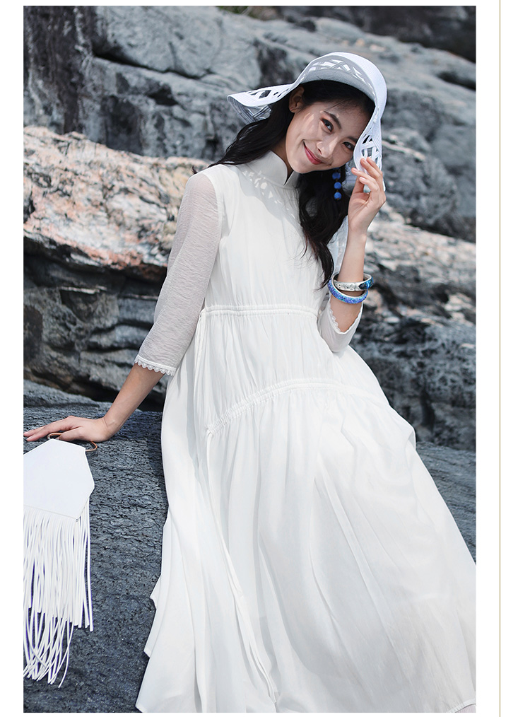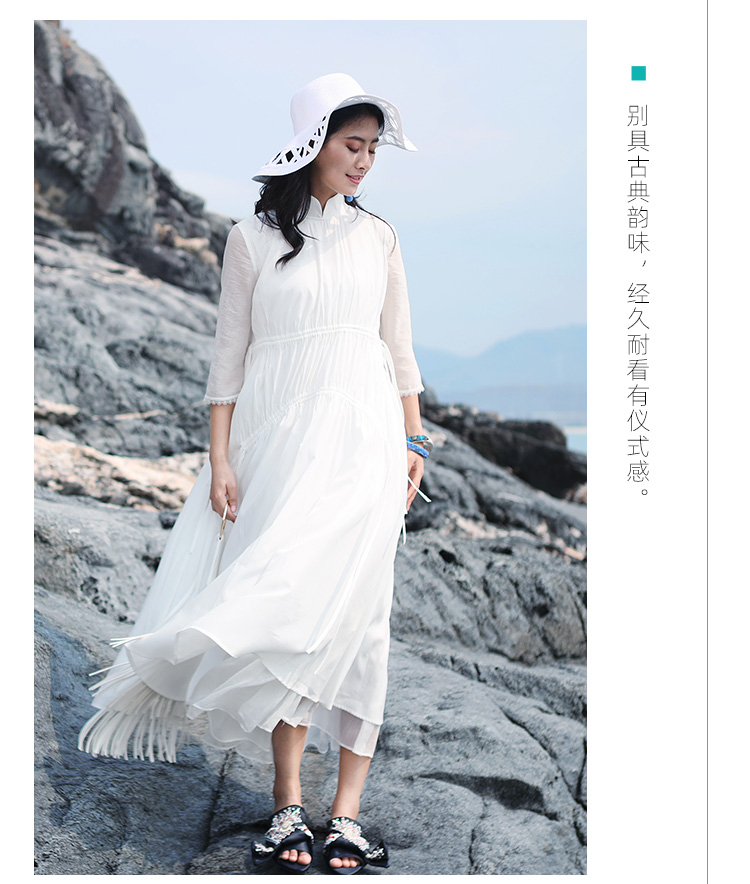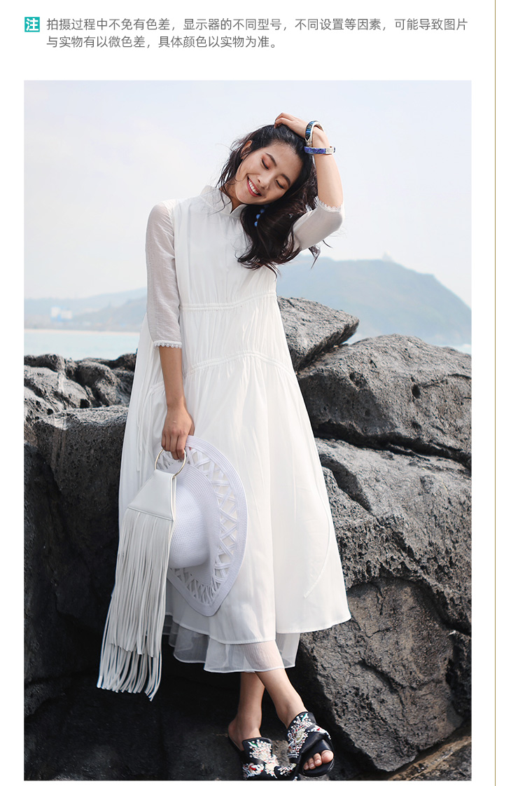 不染双层抽绳连衣裙 | 白色 酒红色 | 飘逸淑女