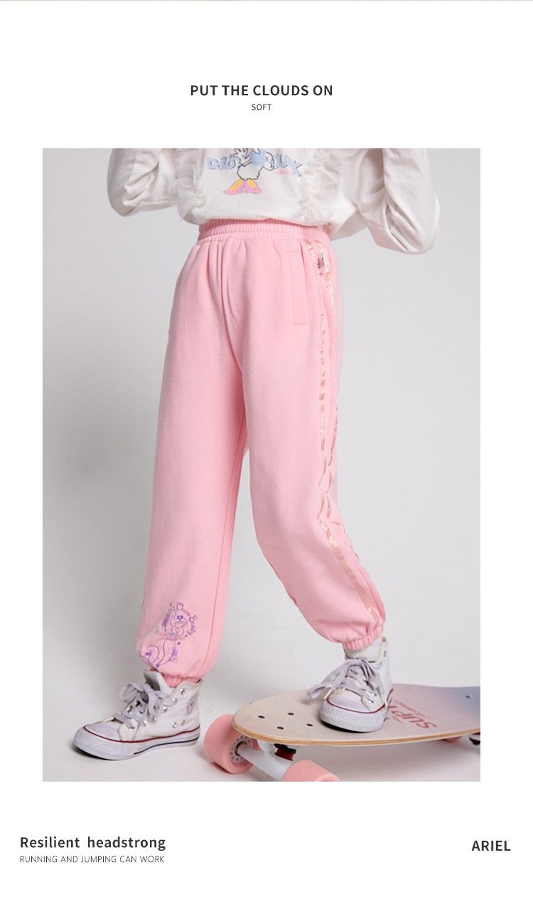 迪士尼童装女童裤子新款春秋儿童运动裤中小童休闲女孩卫裤221K1251