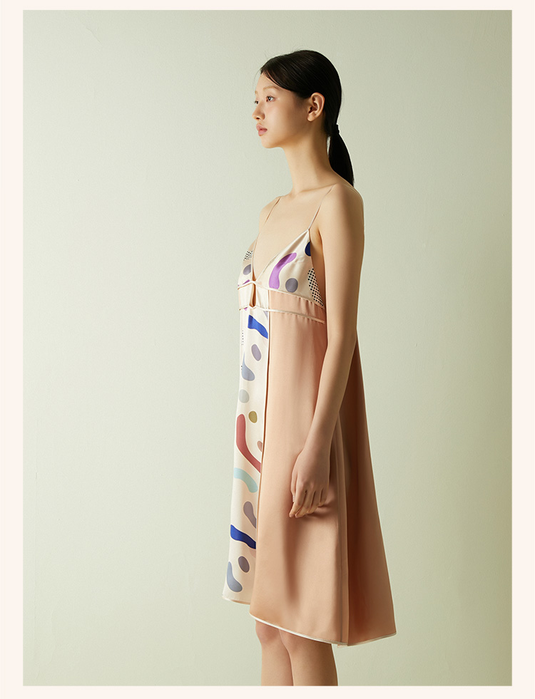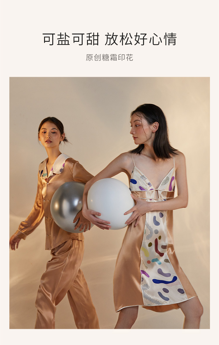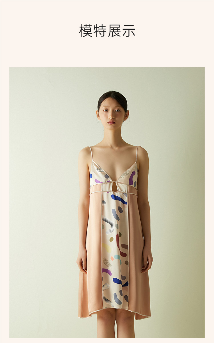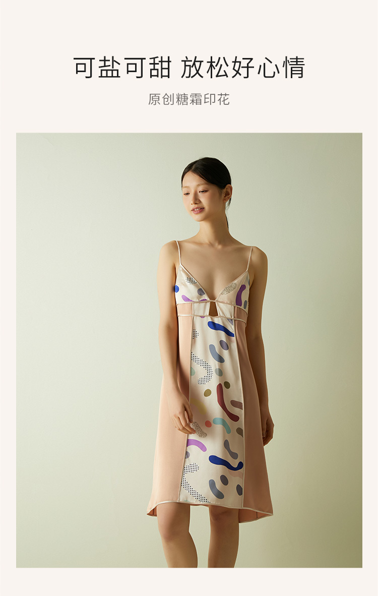 桑罗糖霜印花吊带裙深V露背睡裙女