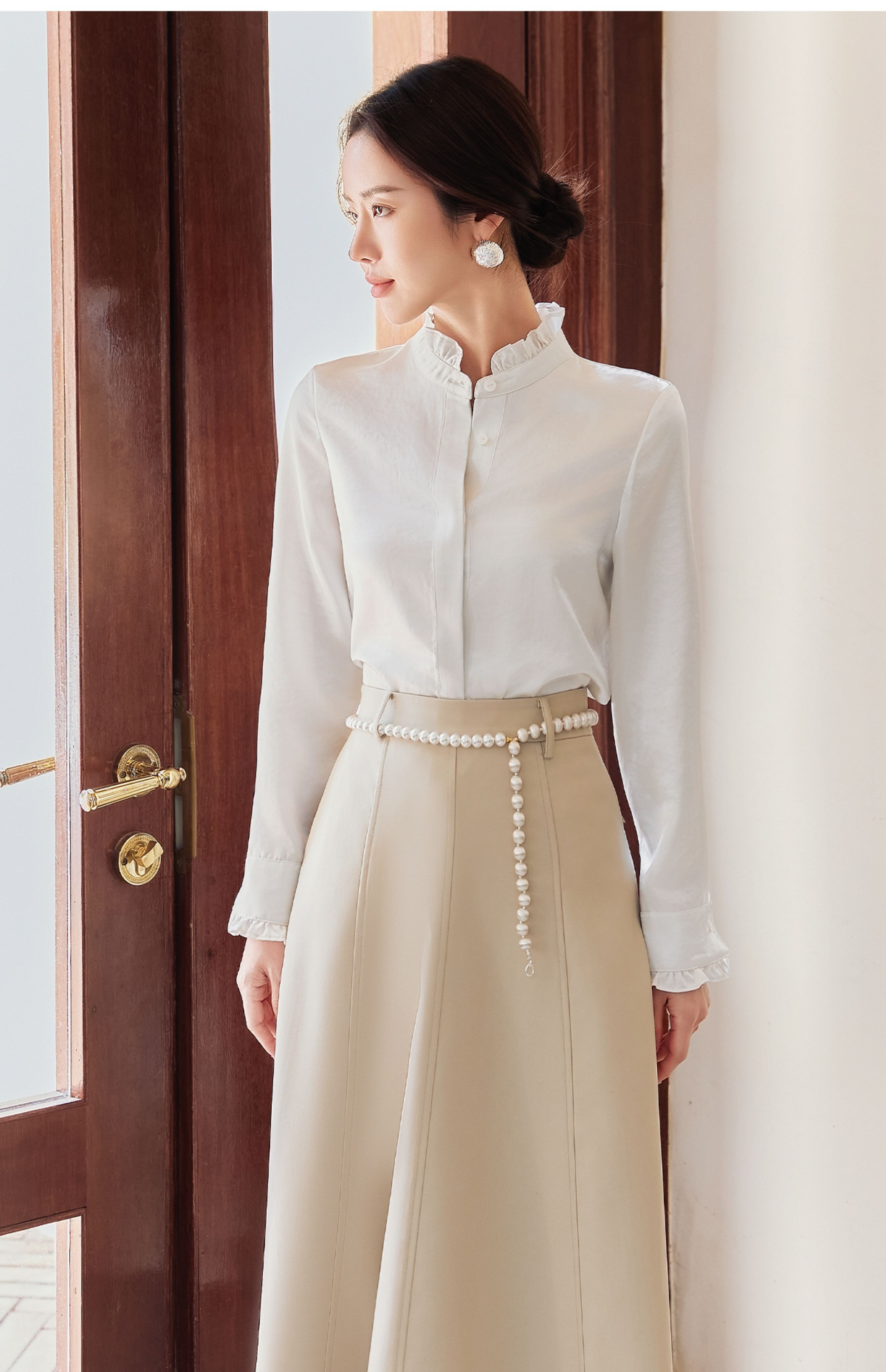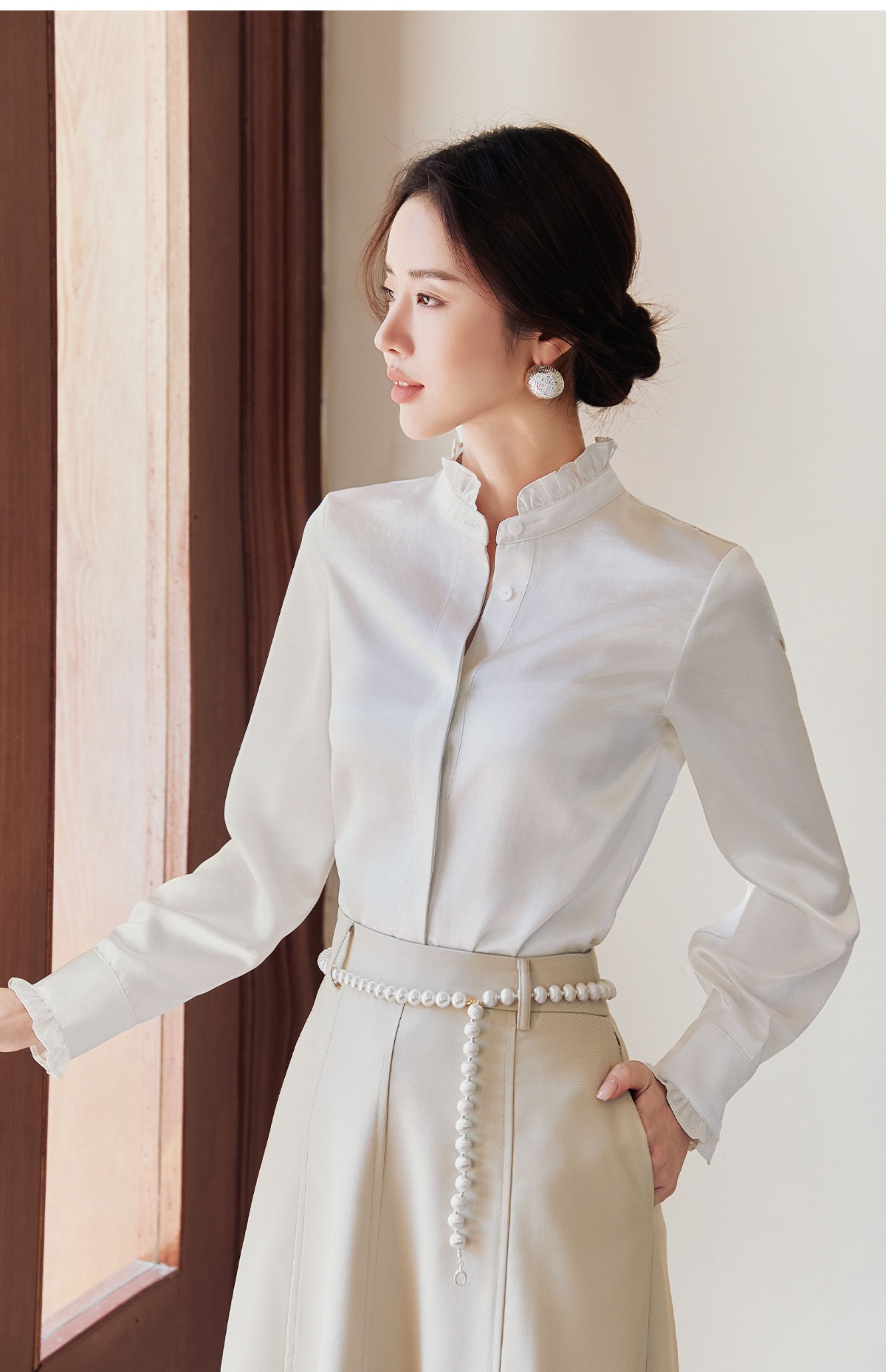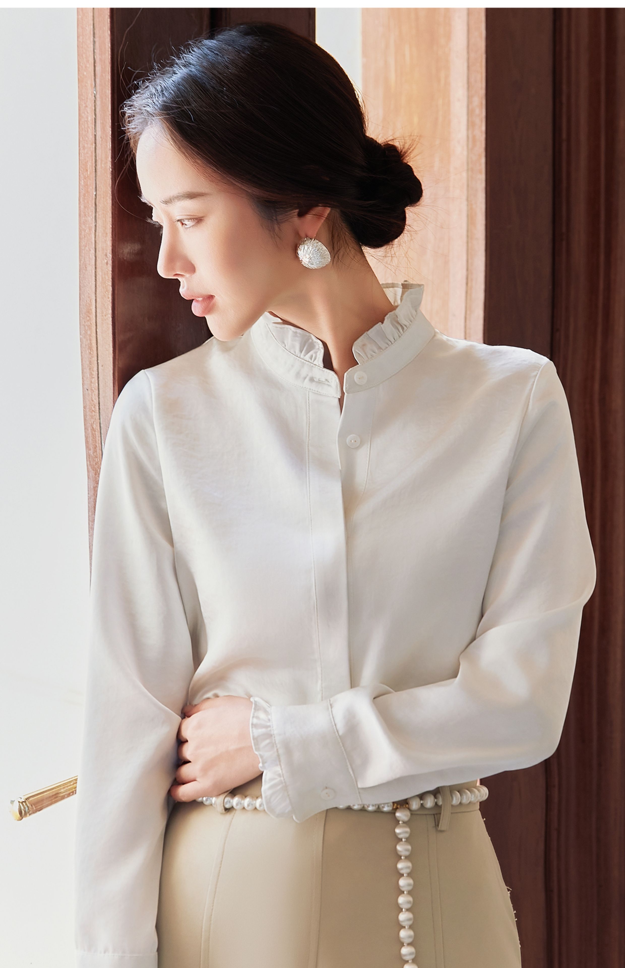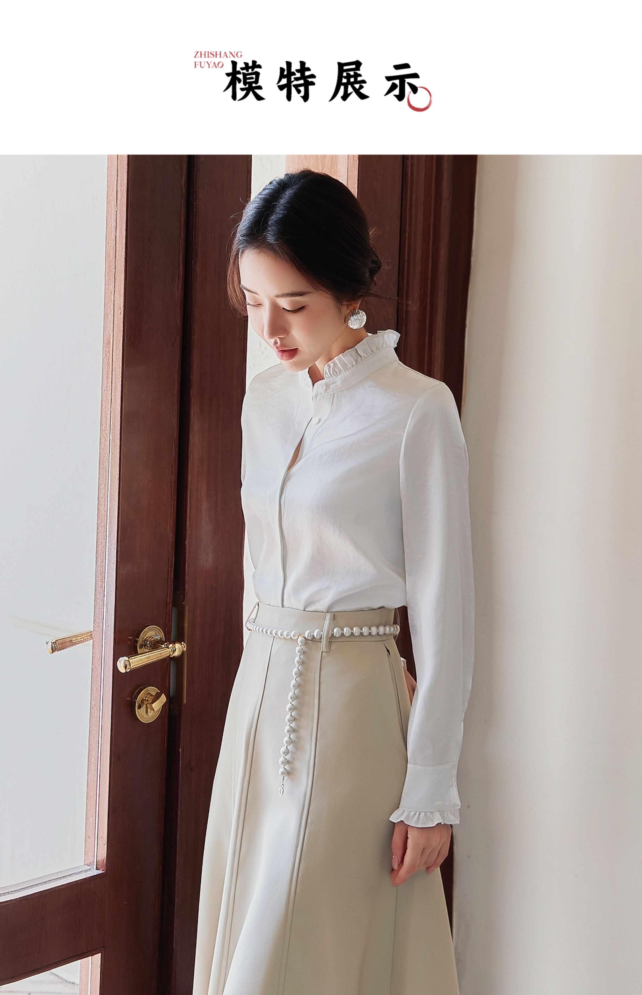 FUYAO扶摇 白色长袖衬衫女2025新款法式雪纺衬衣设计感花边领上衣