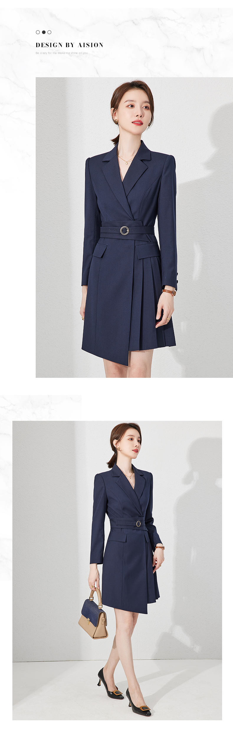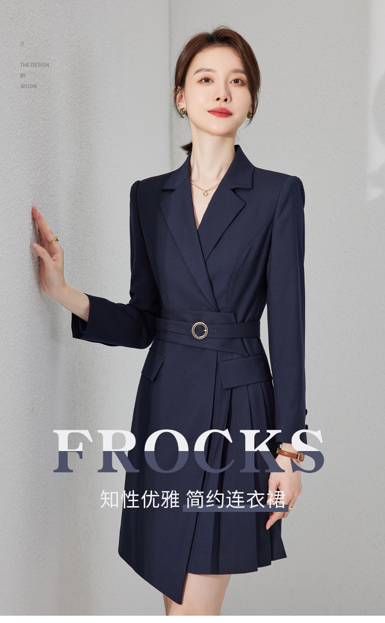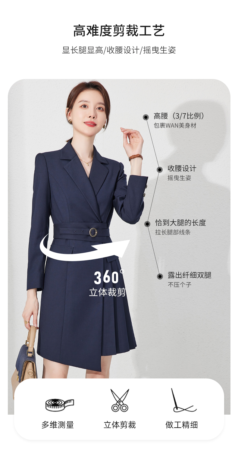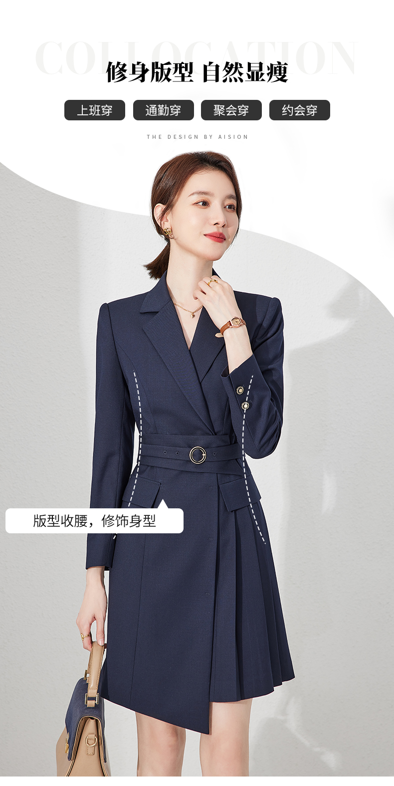 艾尚臣藏青色连衣裙女士秋款高级感2023新款气质职业正装西装裙