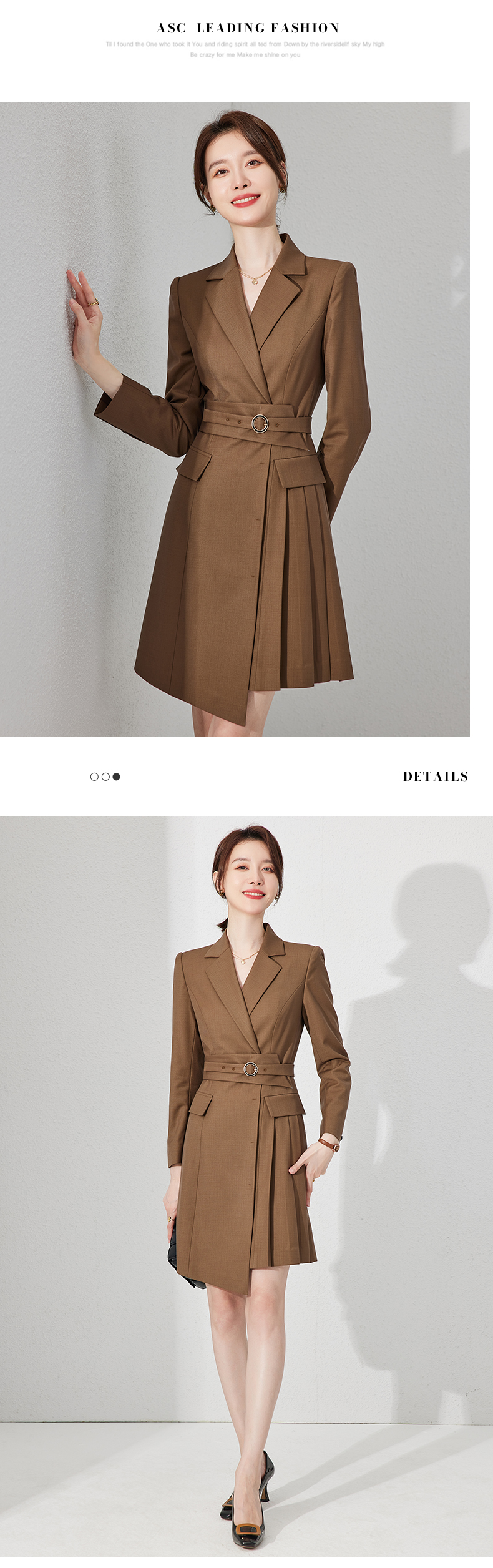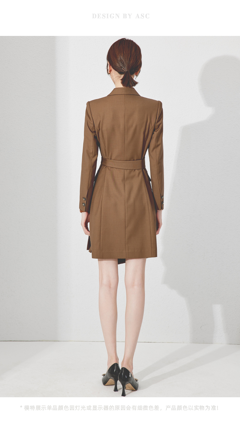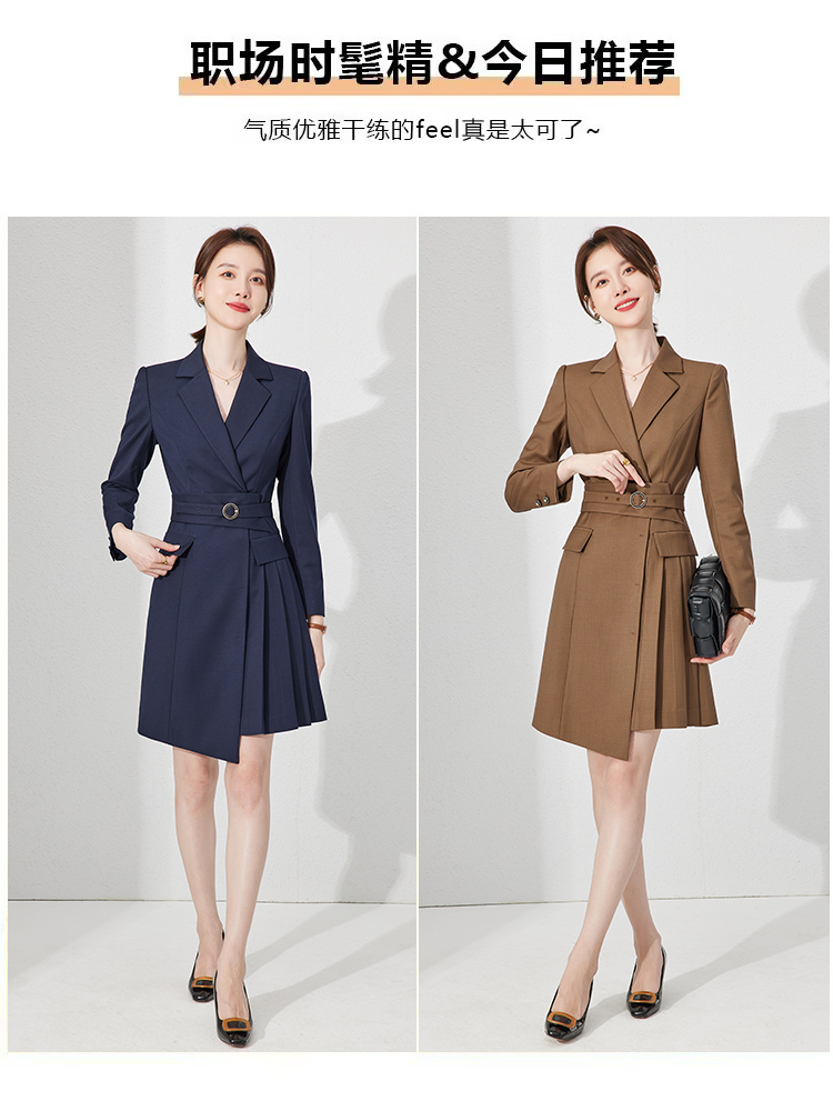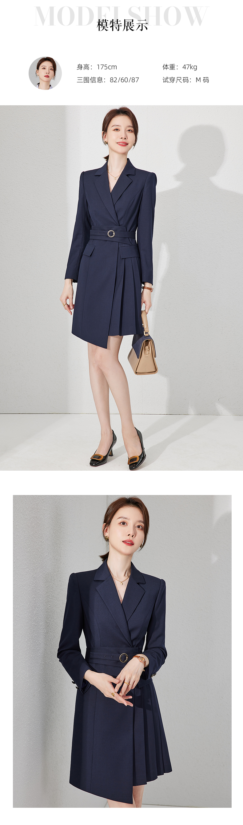 艾尚臣藏青色连衣裙女士秋款高级感2023新款气质职业正装西装裙