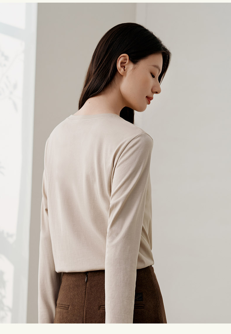 金三塔桑蚕丝舒适透气小衫女素色简约印花小圆领宽松长袖休闲衫 YZFFC706+YZFFC707