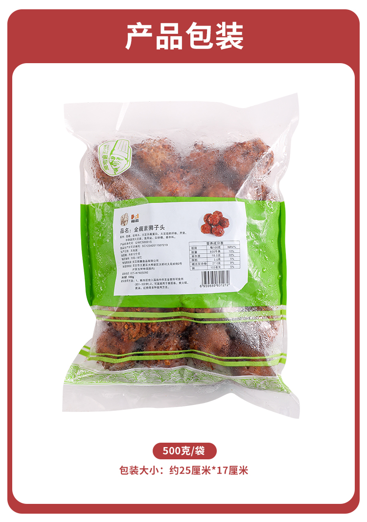 【冷冻品】金藕素狮子头500克 斋菜素食 松软可口 莲藕丸子