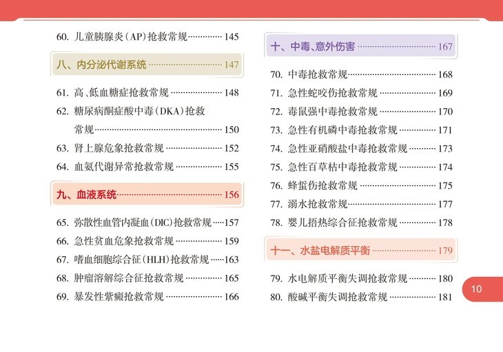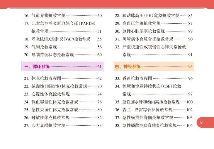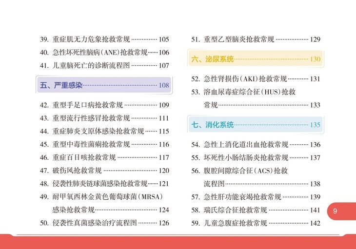 包含有124个儿科领域核心流程图表,全部为儿童危重症临床必备处理技能,展示儿科危重疾病的临床抢救及处置流程。内容包括总论、呼吸系统疾病、循环系统疾病、神经系统疾病、严重感染性疾病、泌尿系统疾病、消化系统疾病、内分泌代谢系统疾病、血液系统疾病、中毒及意外伤害、水盐电解质平衡等各种危重症情况紧急处理办法,此外还包括围手术期监护各种评分、重症超声、常用的监护和治疗技术等基本技术、基本操作的要点和注意。
