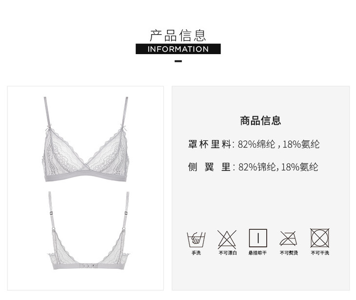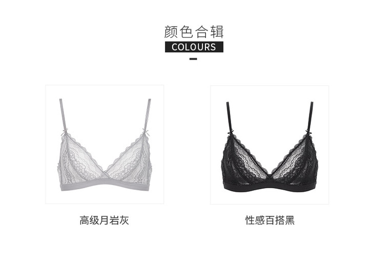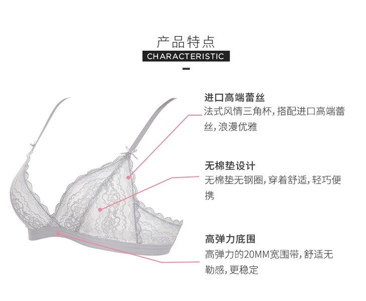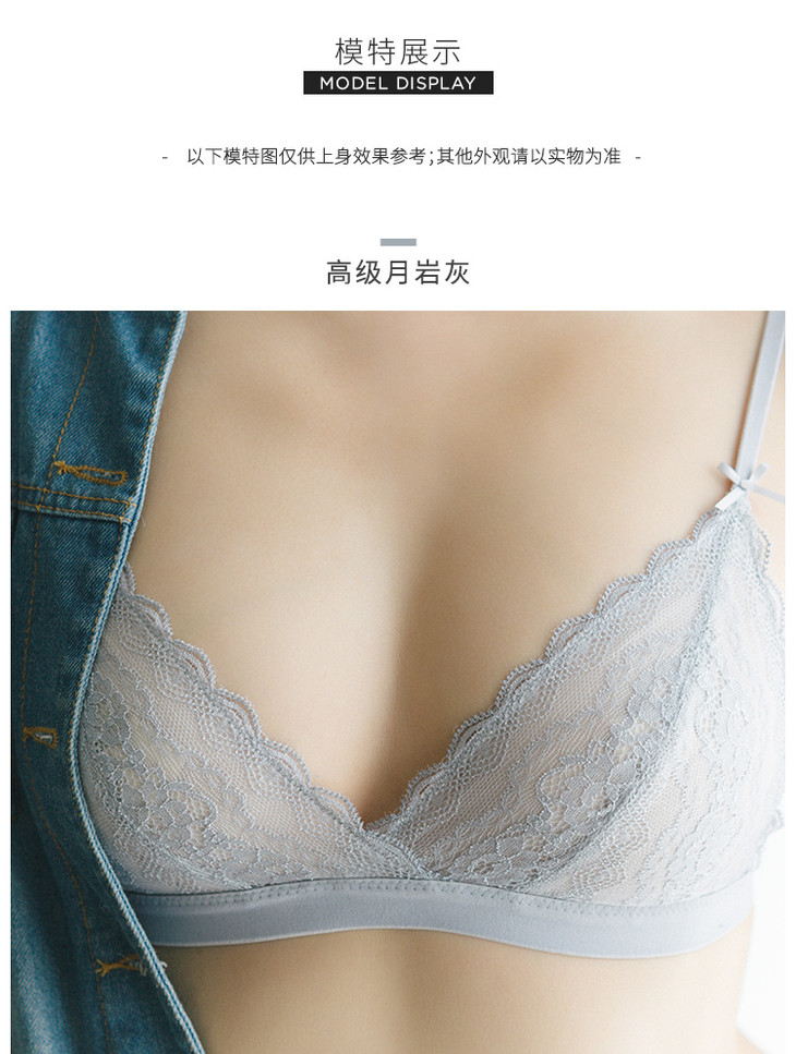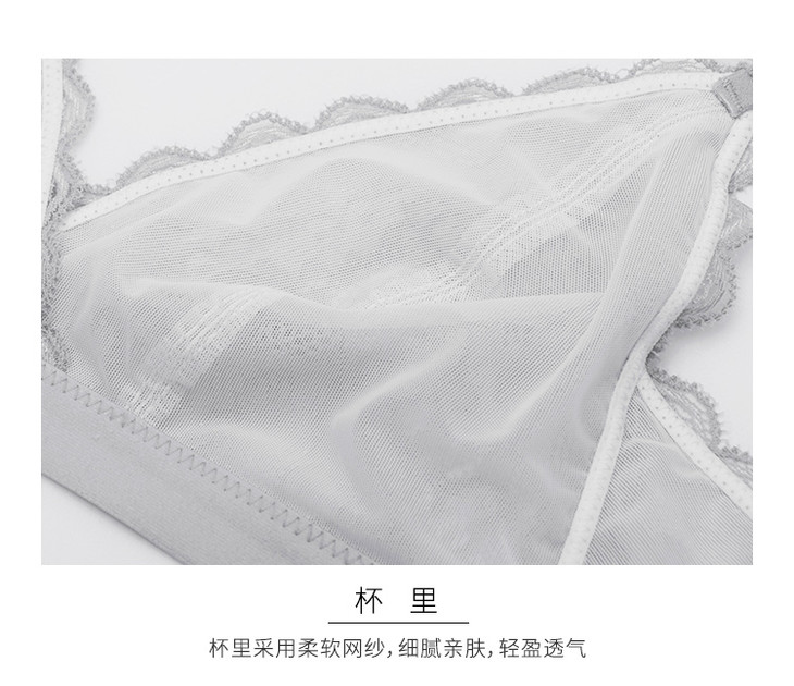 奶糖派西西里无棉垫超薄月岩灰蕾丝三角杯