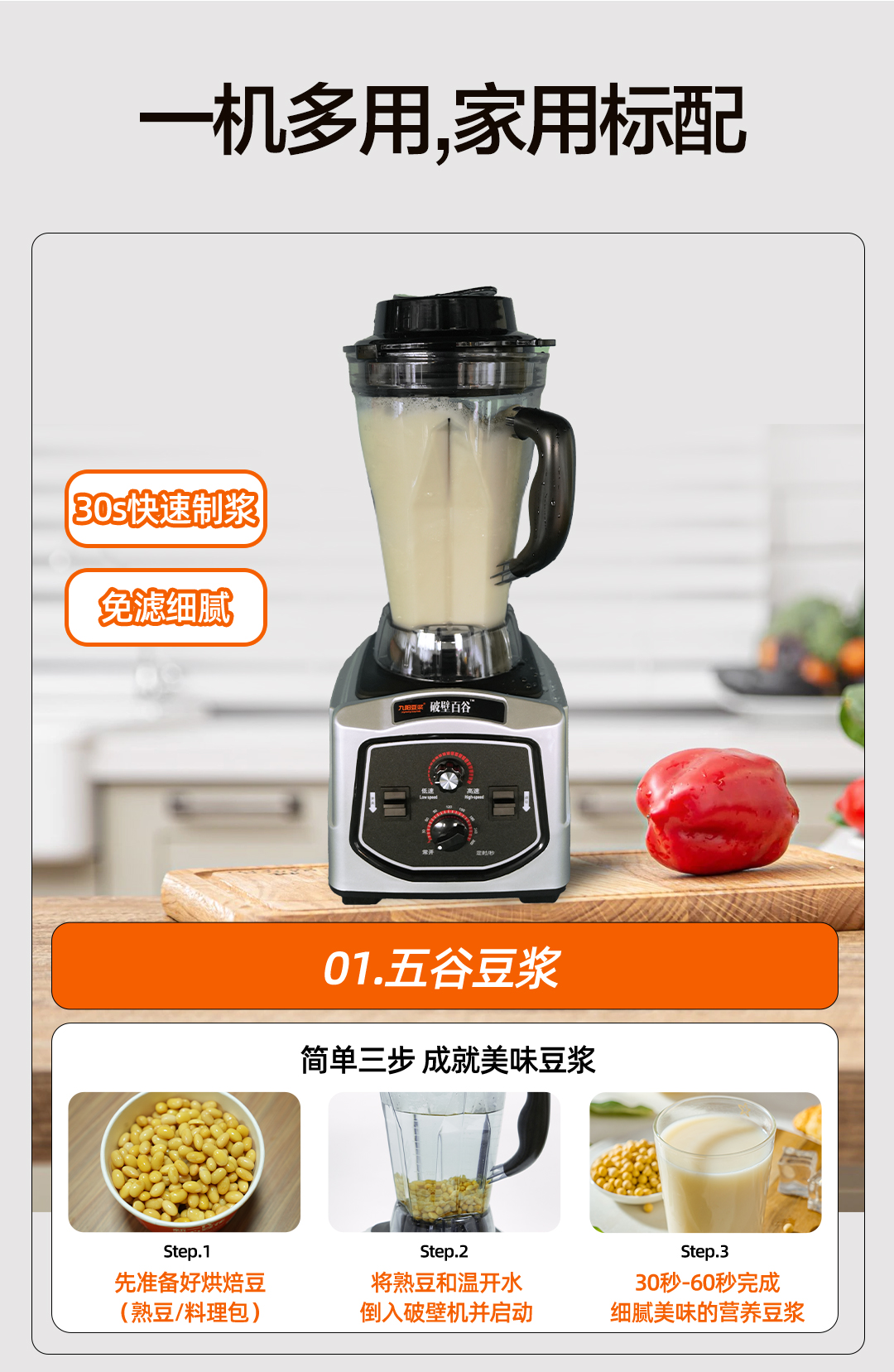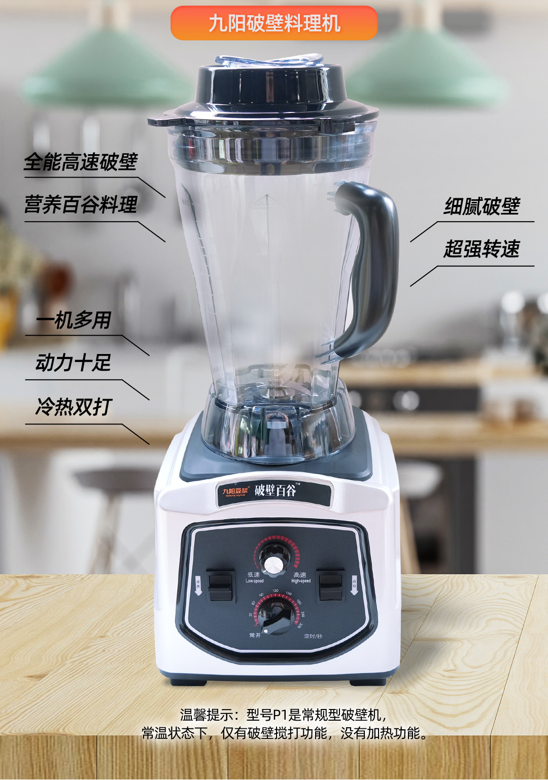 九阳 家/商两用破壁机 大容量2.5升 五谷豆浆机 可商用碎冰 榨汁机绞肉机 多功能料理机P1【不加热款】破壁机P1