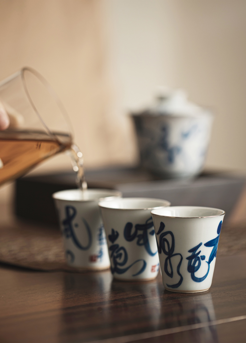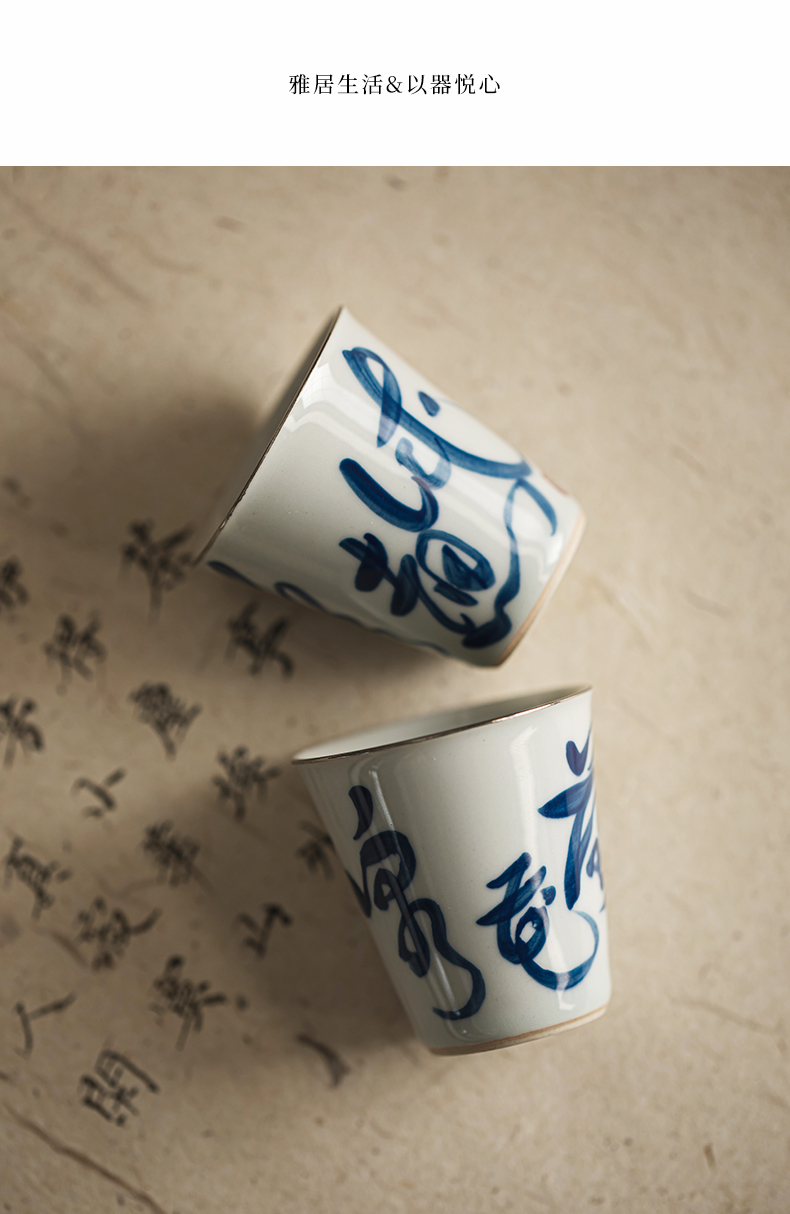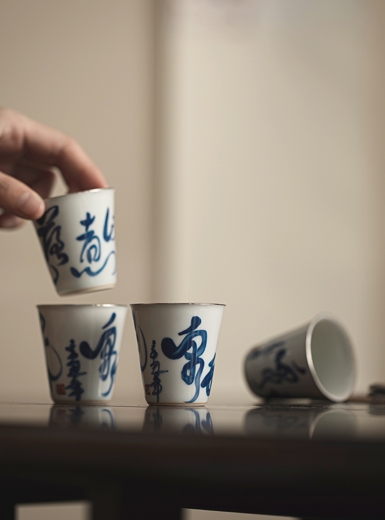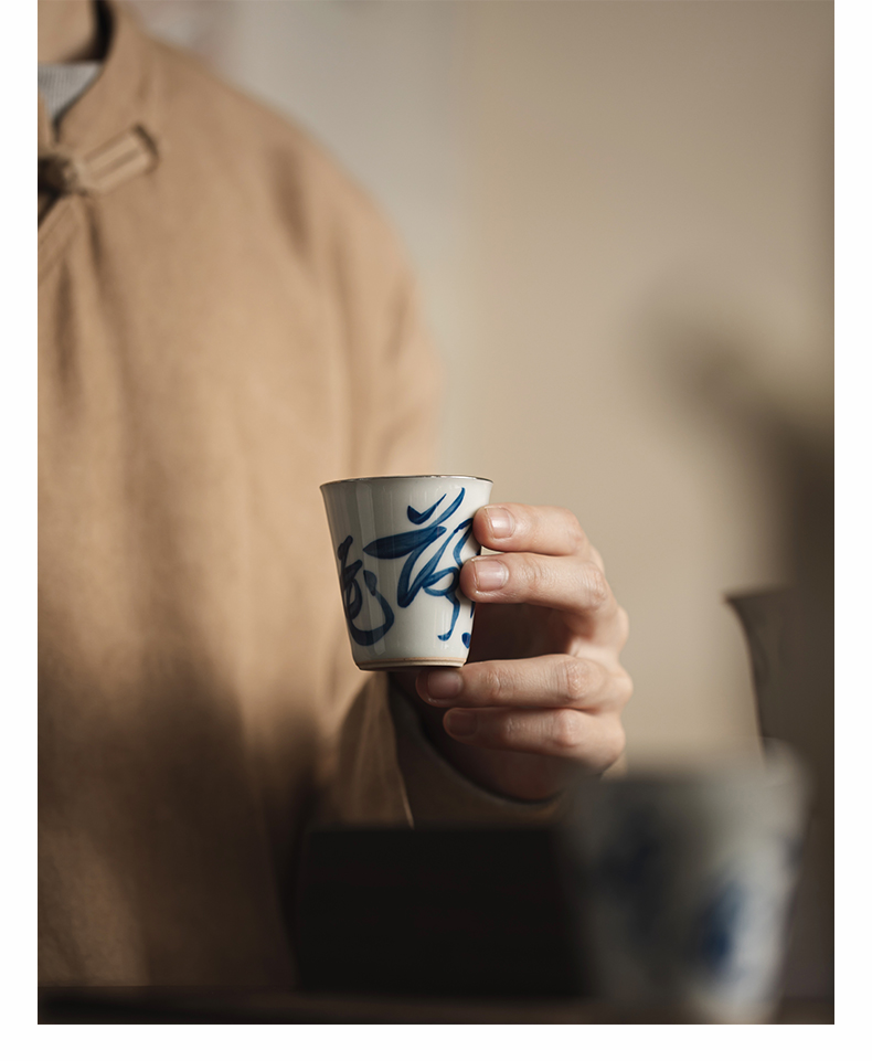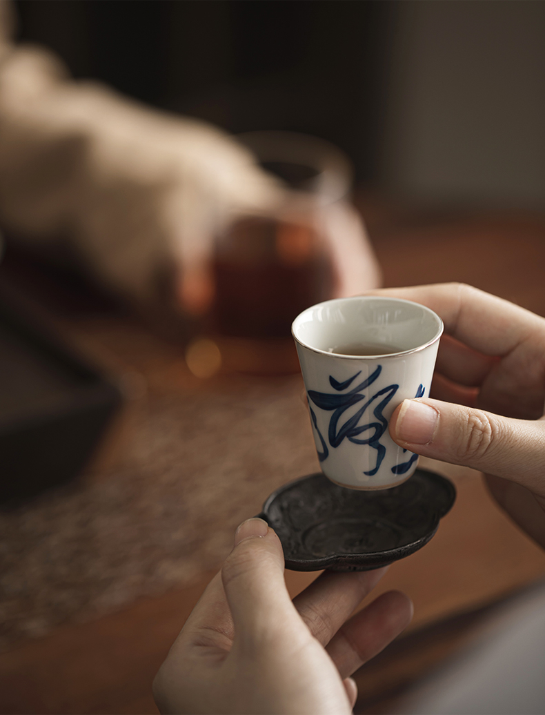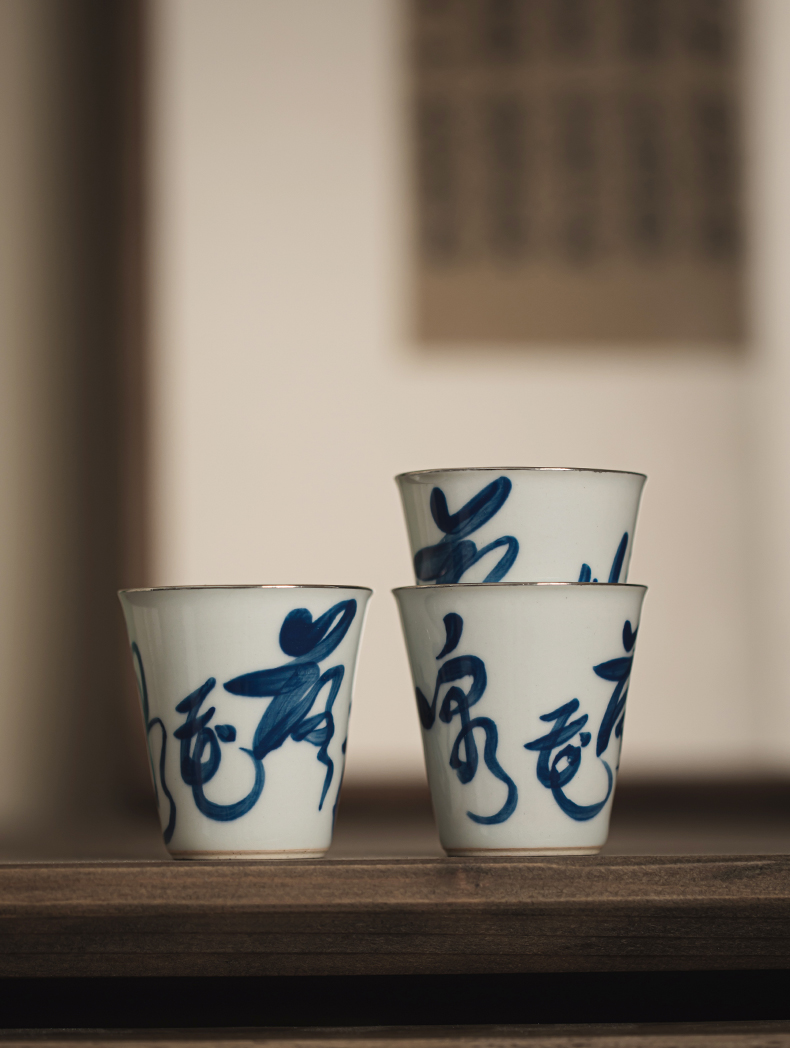 永利汇手工描银杯个人日式青花薄胎品茗杯单个茶道杯子功夫茶具