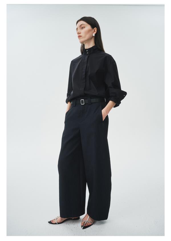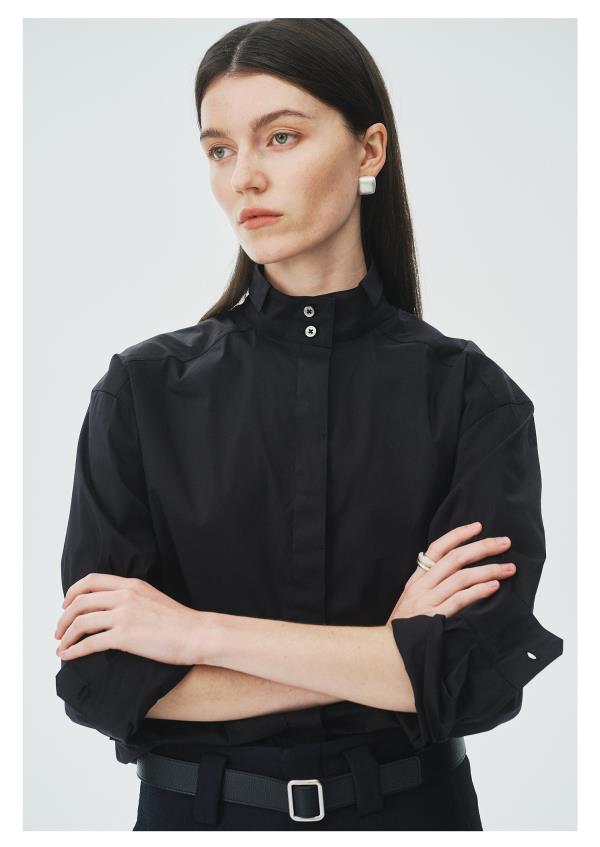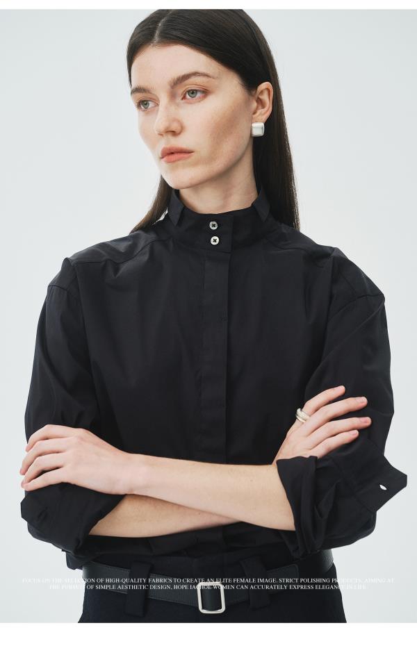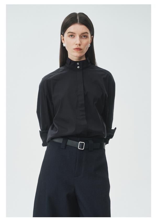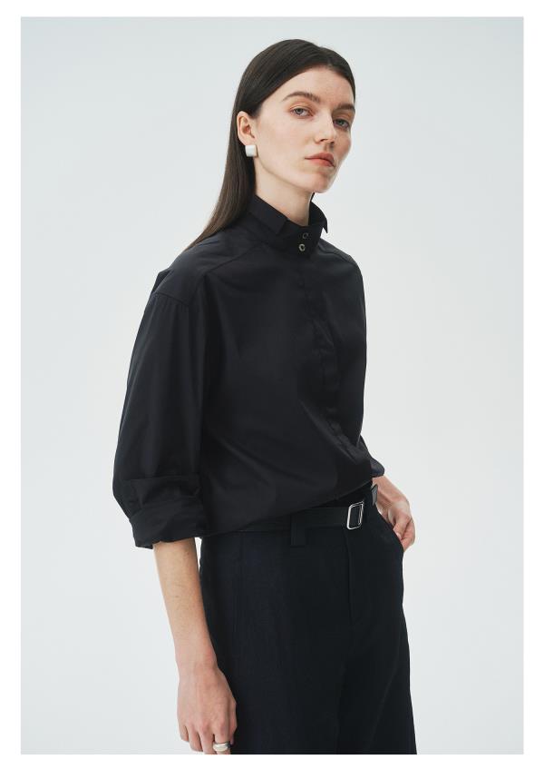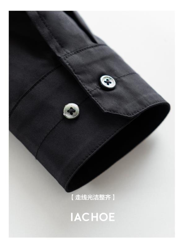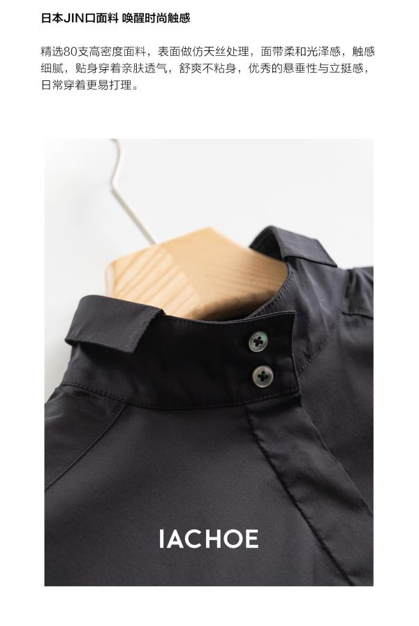 棉仓3621504009-IACHOE小翻领黑衬衫