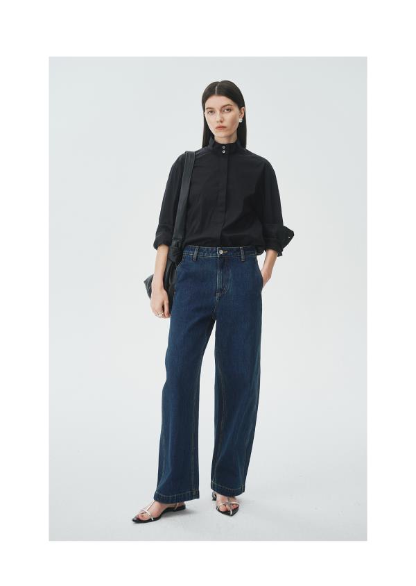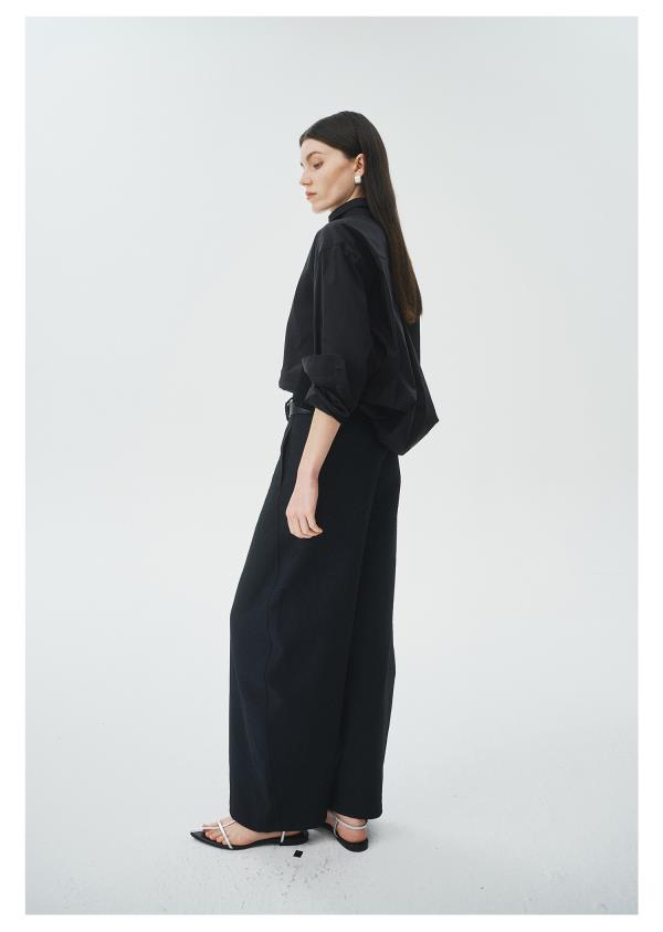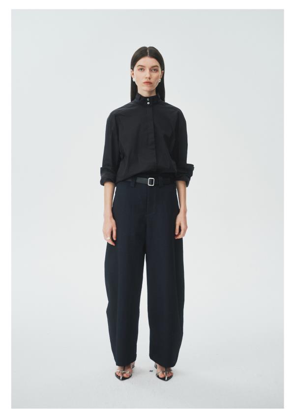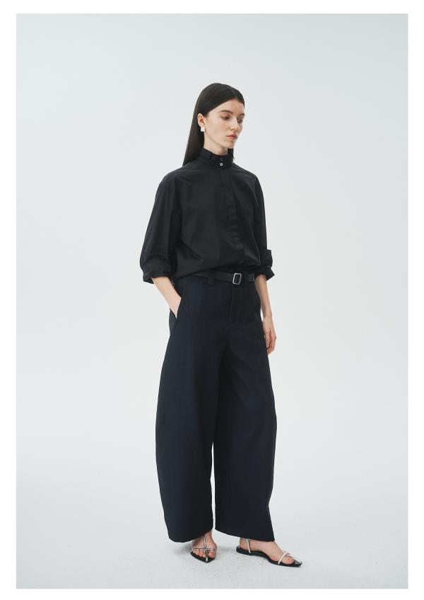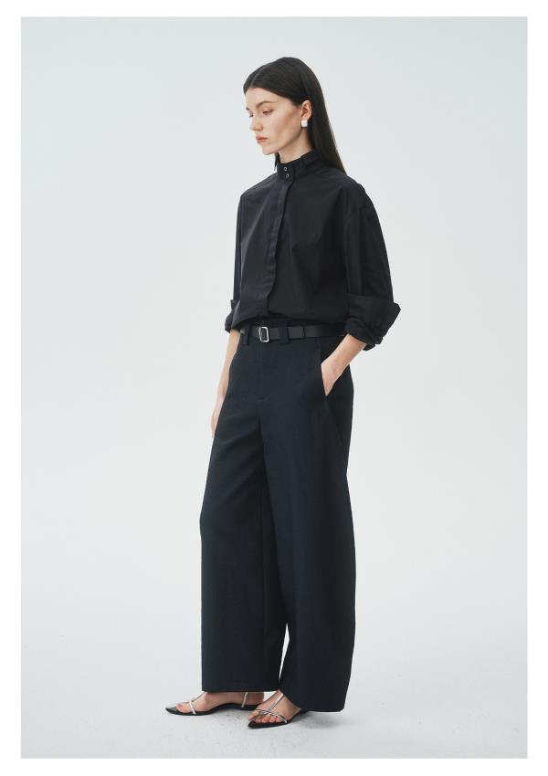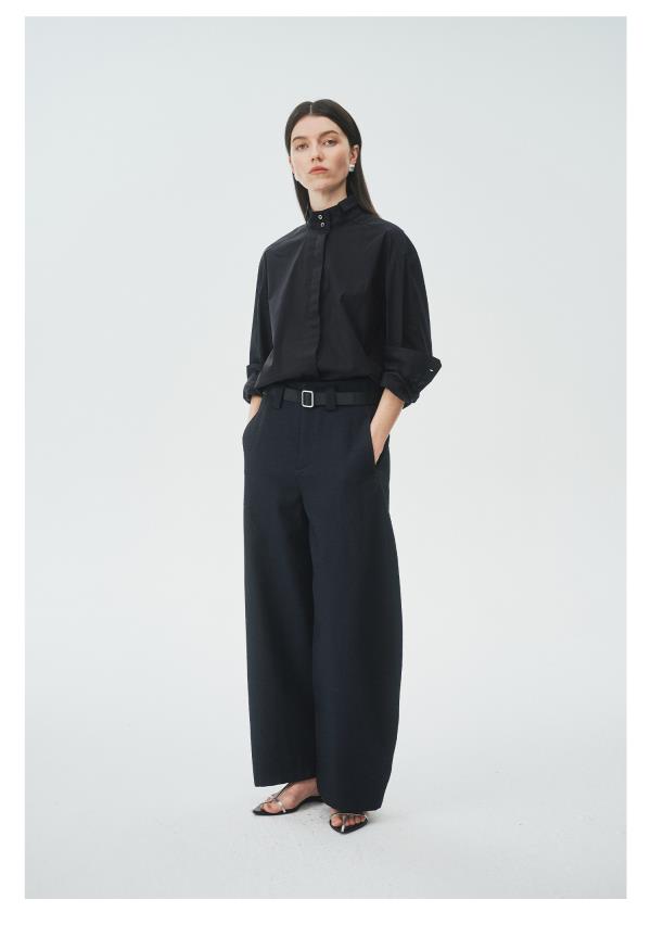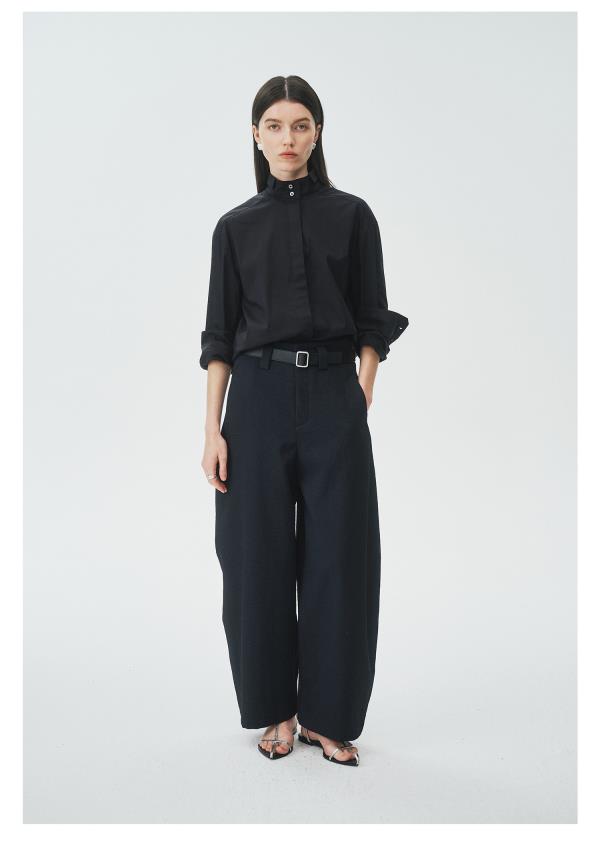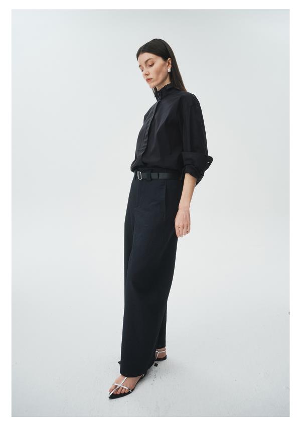 棉仓3621504009-IACHOE小翻领黑衬衫