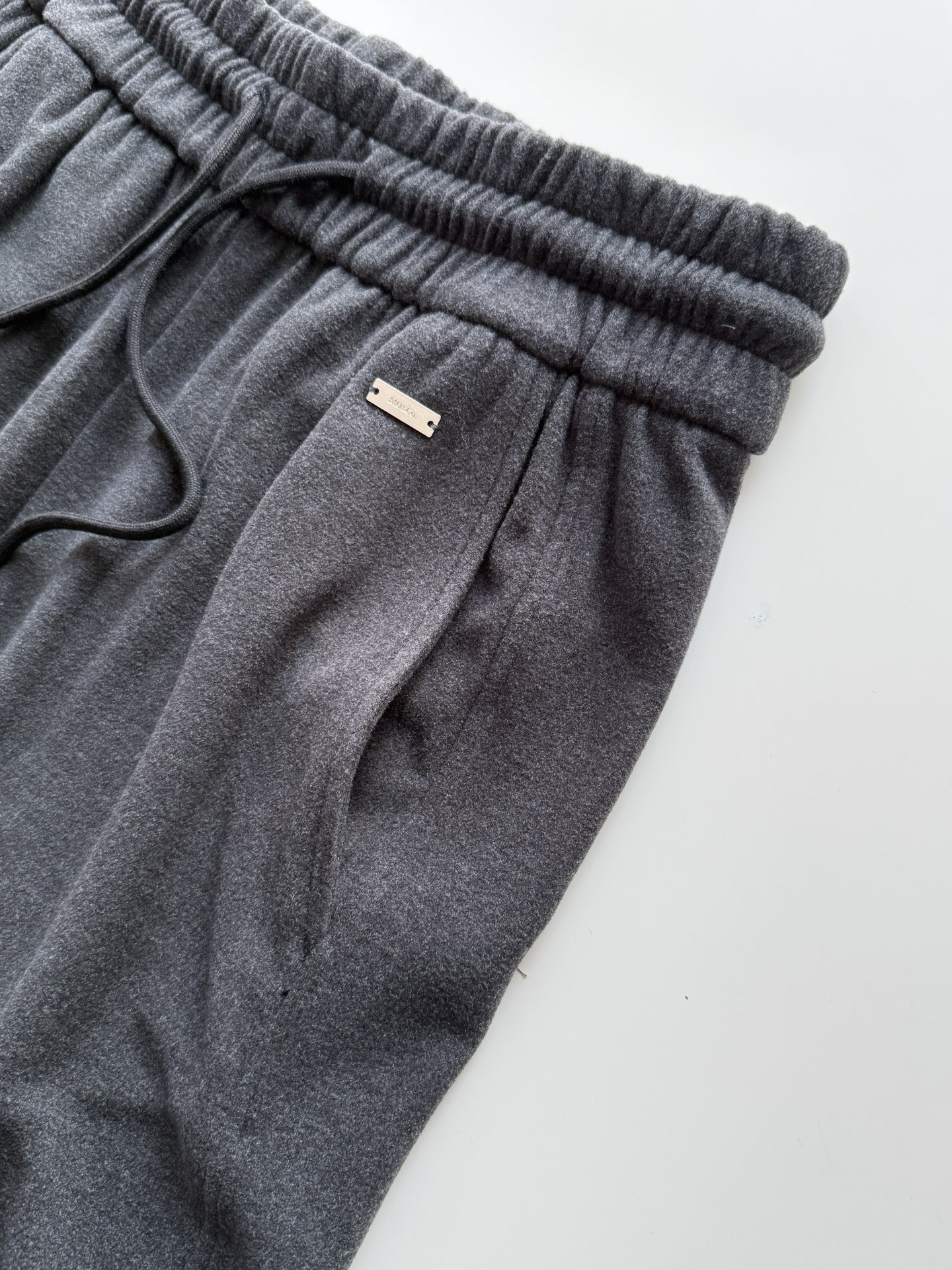 裤子面料表面做了磨毛,手感糯糯的,
