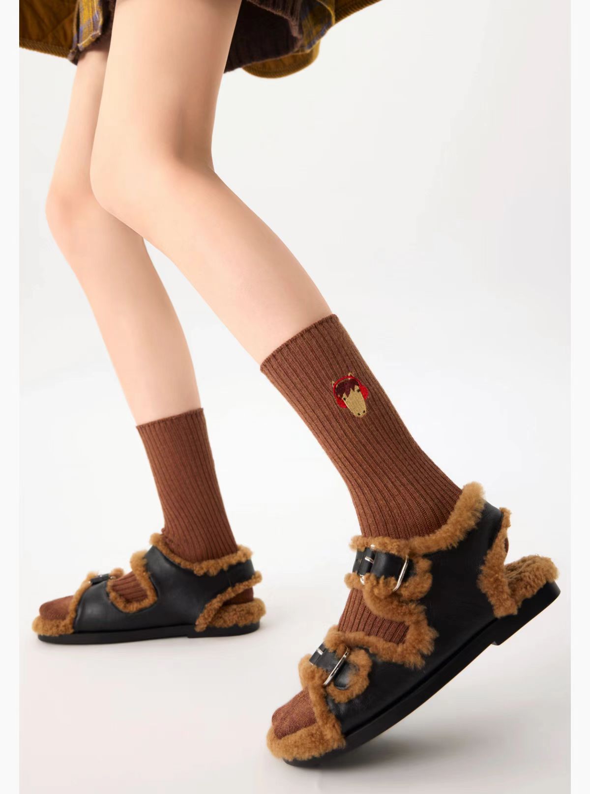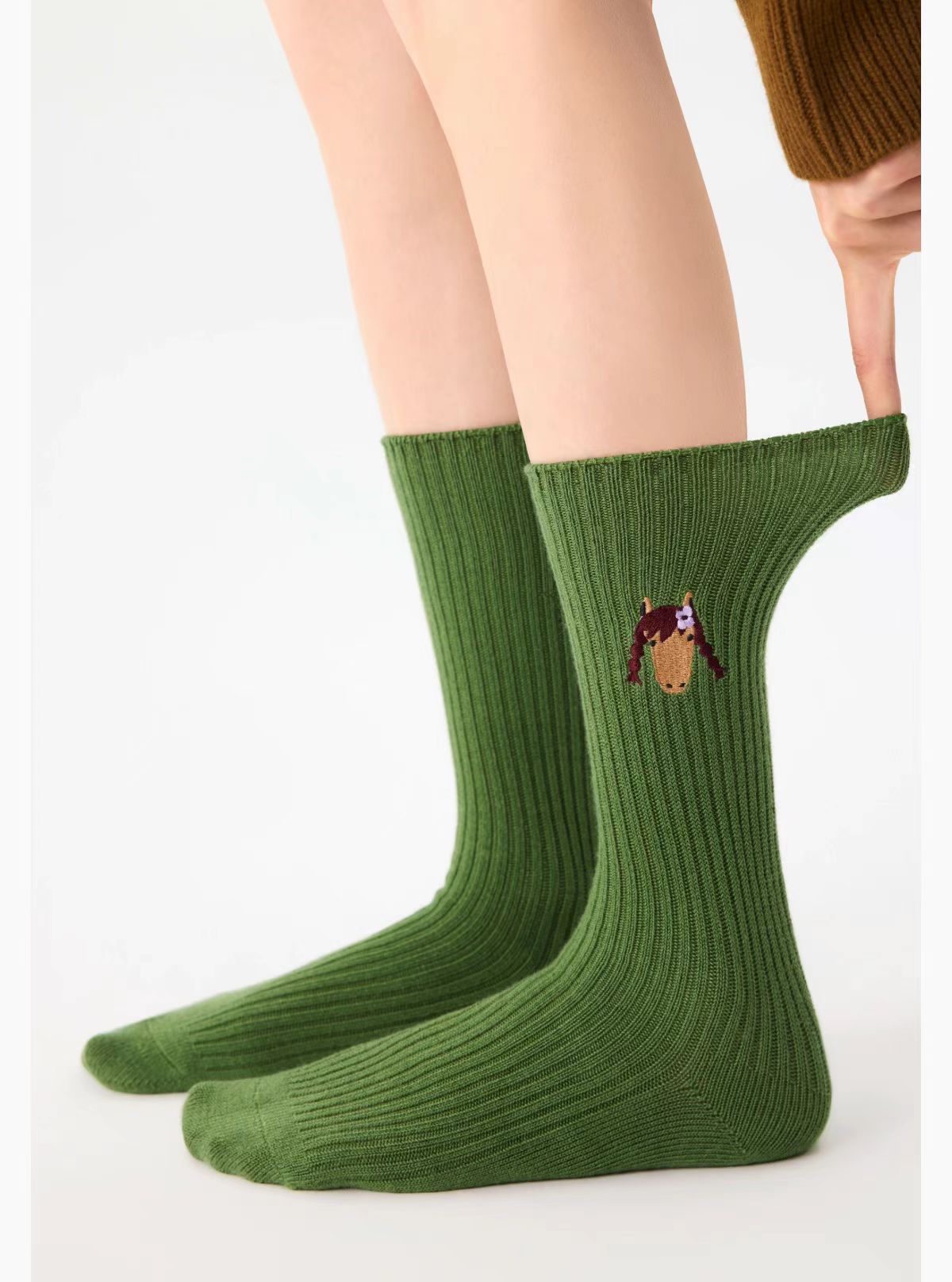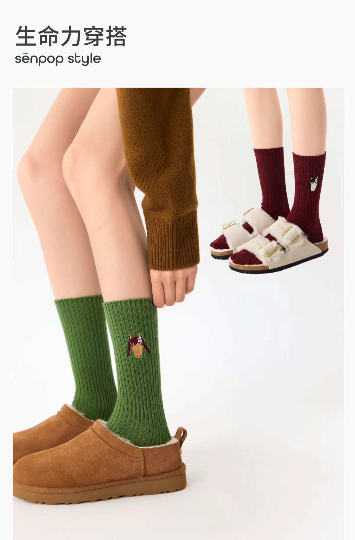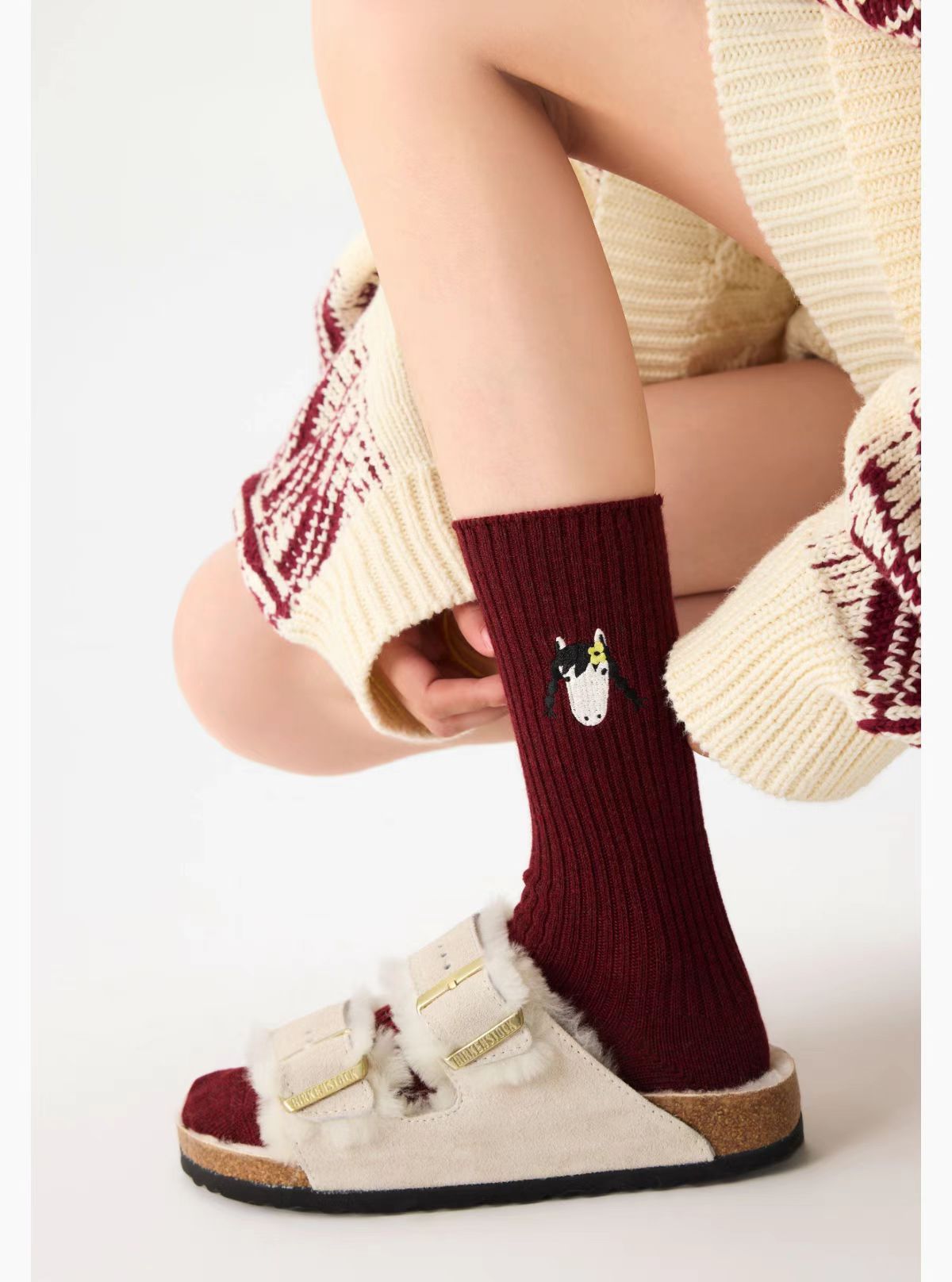 4楼Eubelle欧蓓 上森派系红袜本命年袜 冬马年堆堆袜 小马流苏涂鸦中筒袜 活动价:59.9元