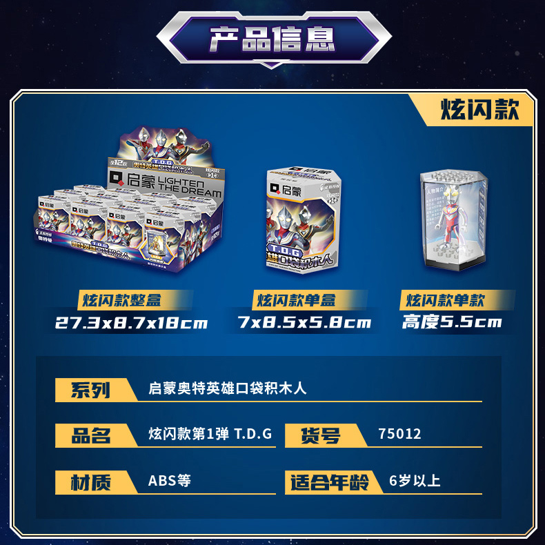 启蒙 奥特英雄口袋积木人 炫闪款第1弹 12只/盒 盲盒