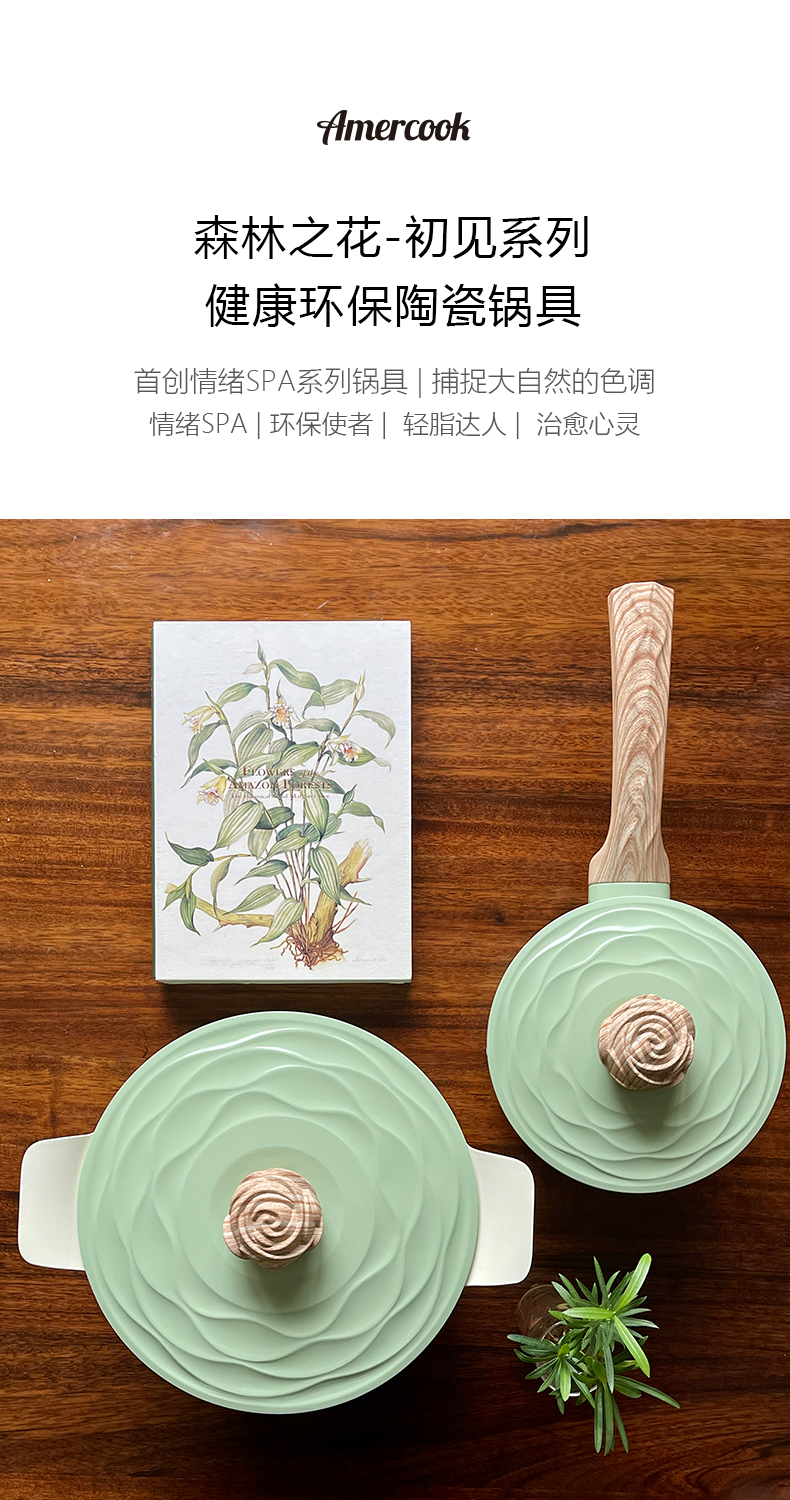 阿米尔森林之花陶瓷不粘深炒锅 健康环保陶瓷锅具 耐用不粘 锁水保鲜 营养不流失