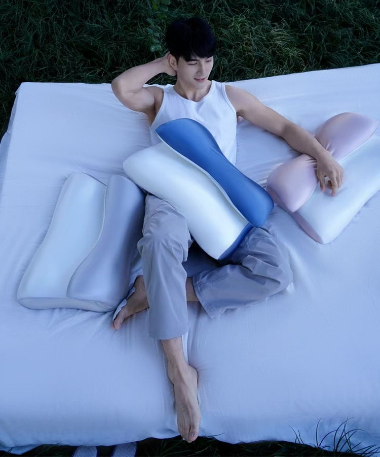 它之所以能很好调节睡眠,主要在于枕头的高低牵引式设计!