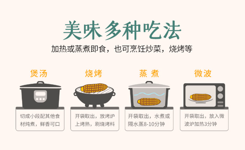 【食用方法】不要撕袋子,连着整个包装袋水煮,水开后,再煮15-20分钟即可,撕开袋子直接吃,趁热吃。
