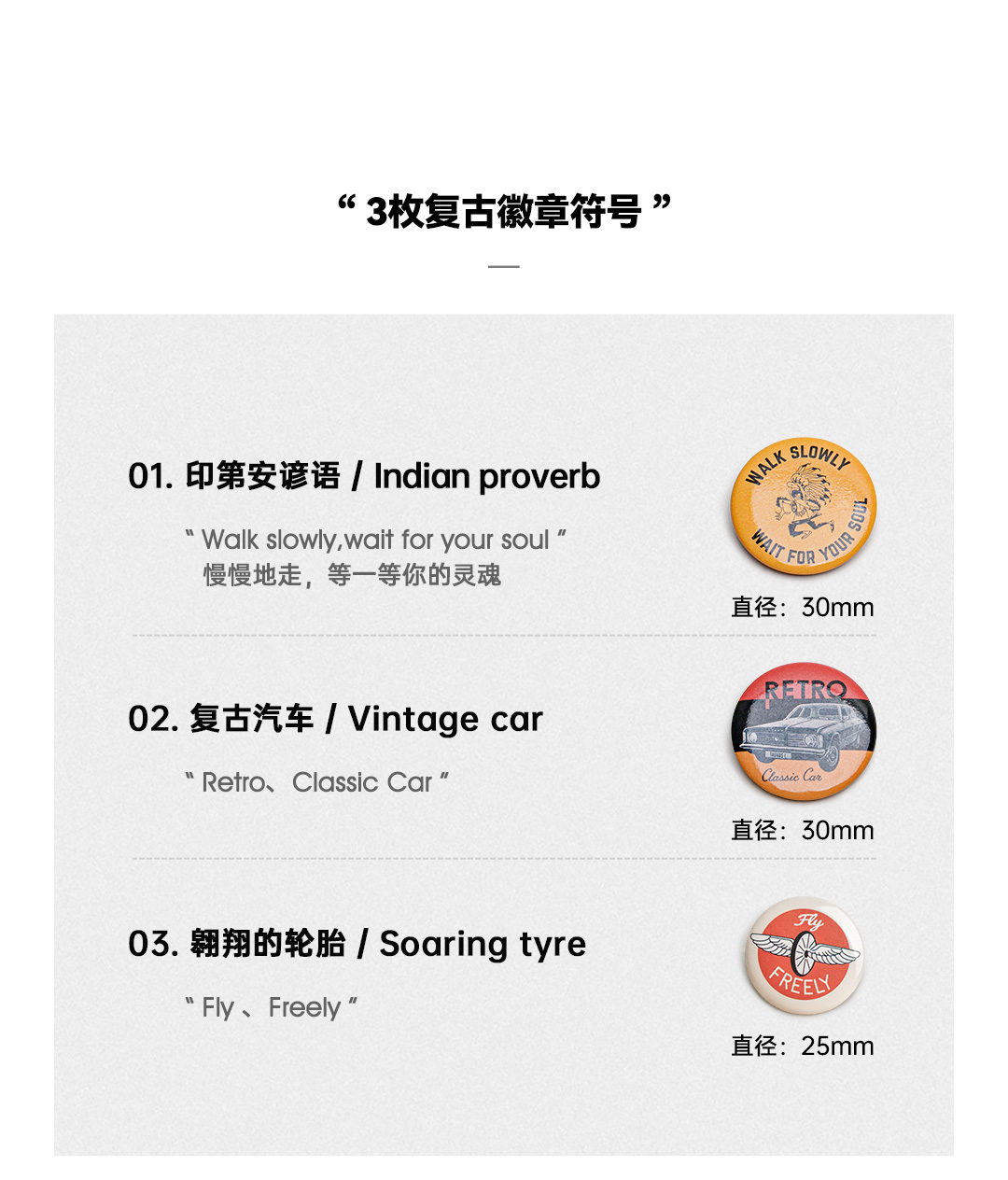 工装优选 美式复古vintage徽章胸针阿美咔叽衣服包配饰别针装饰品