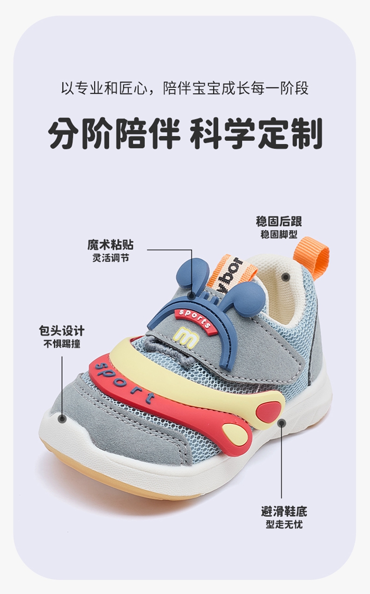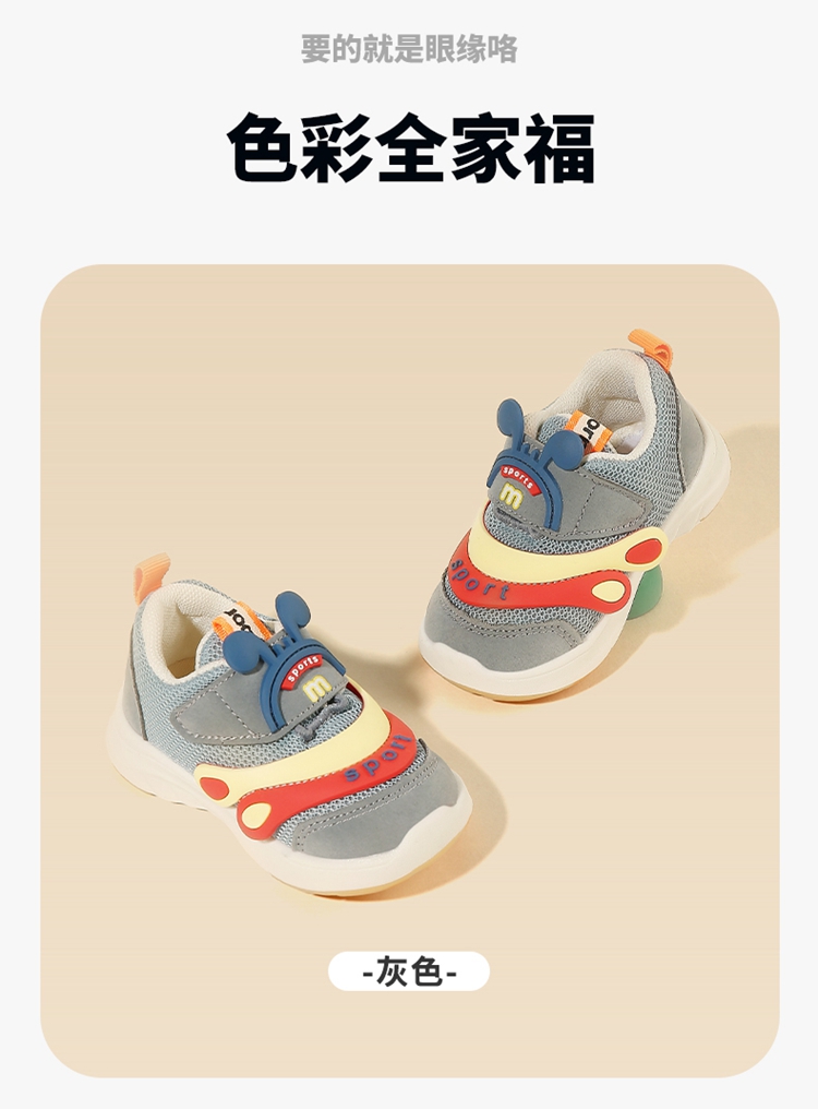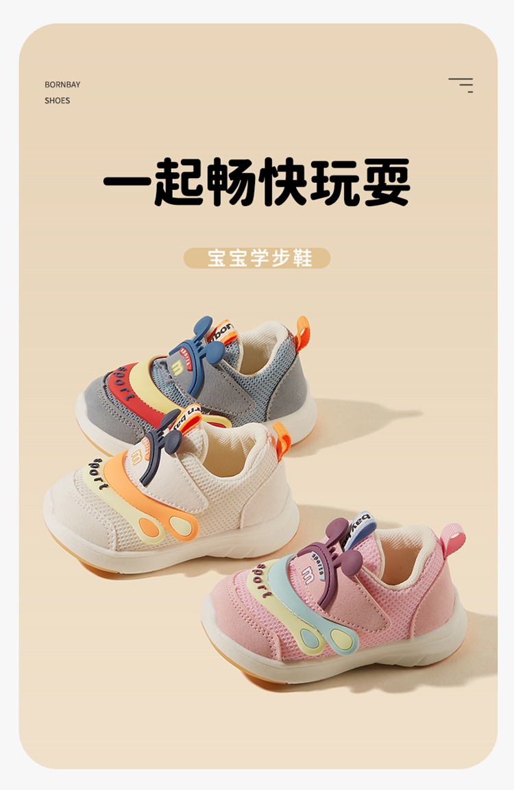 贝贝怡童鞋婴儿学步鞋女宝男宝春秋软底机能鞋子透气网面儿童板鞋ZB3DX006