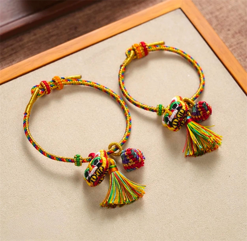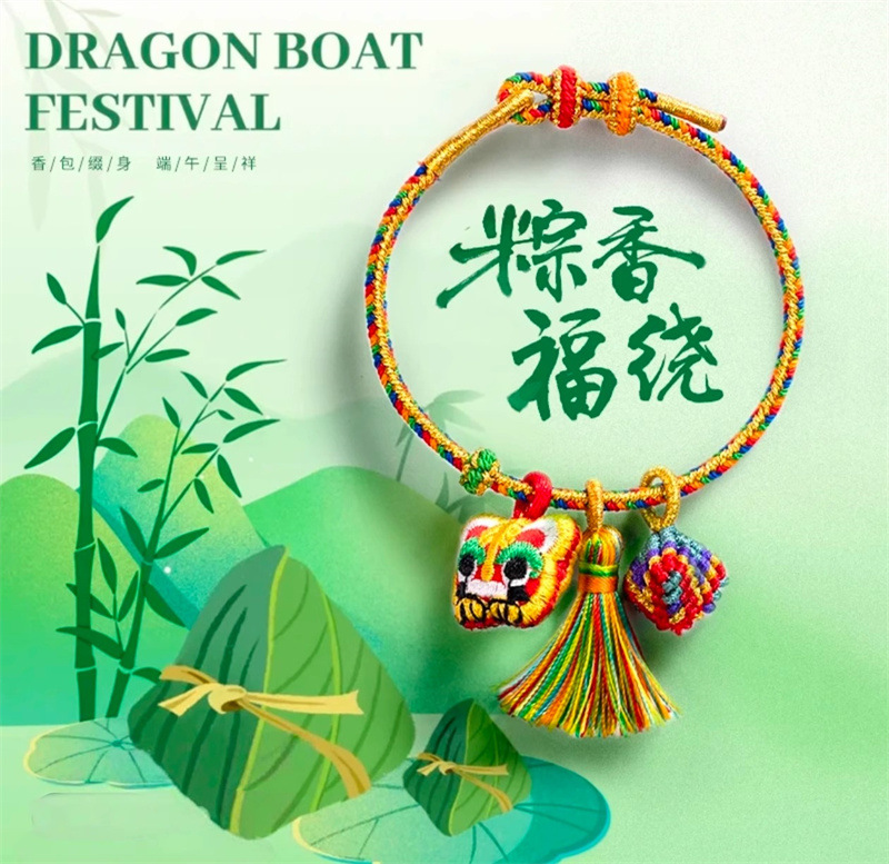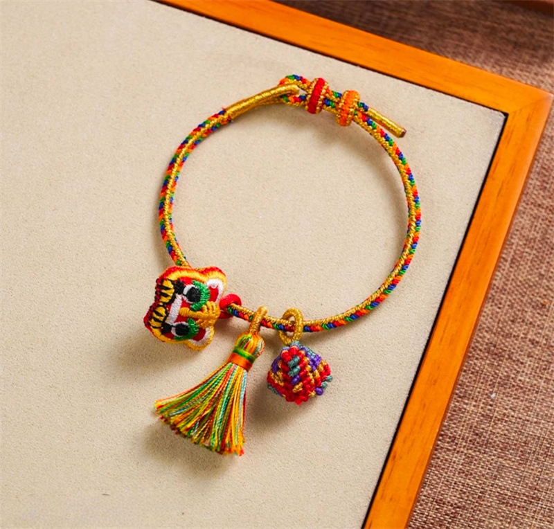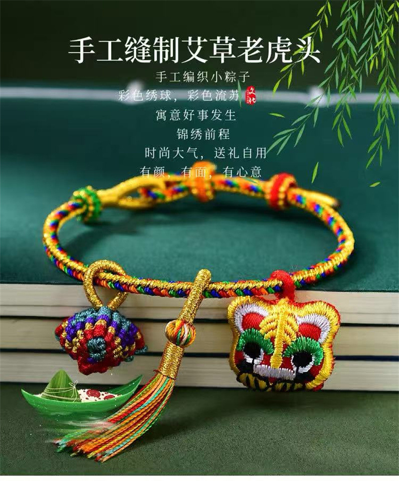 六鑫珠宝 2025新款虎头端午节五彩绳 手工编织粽子手绳