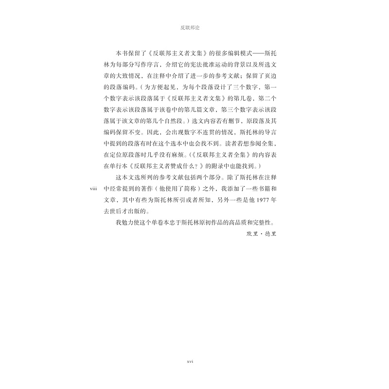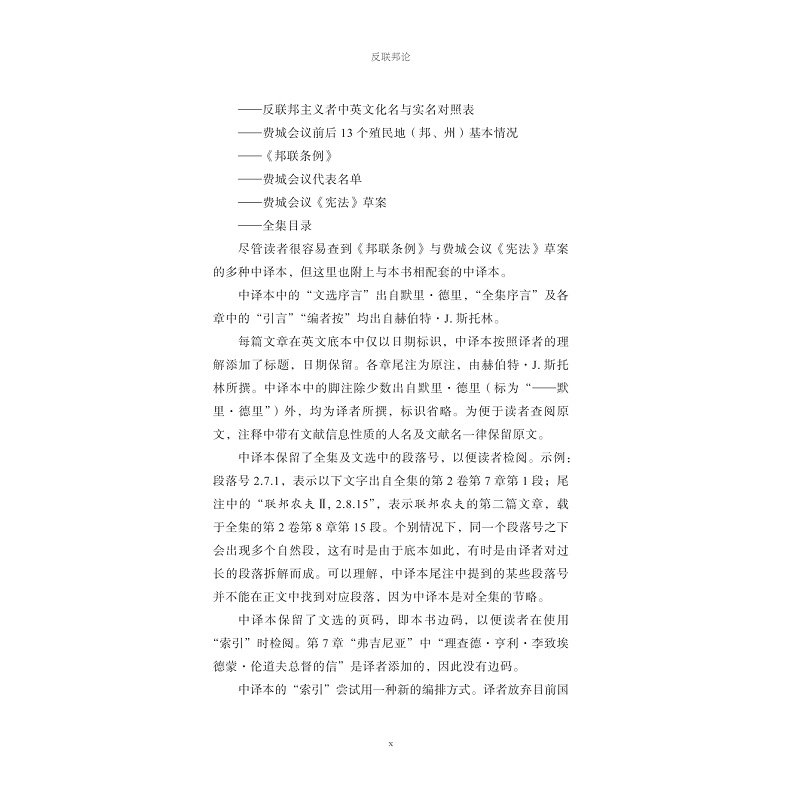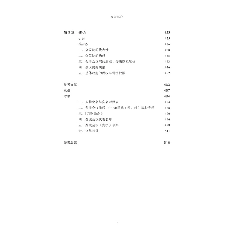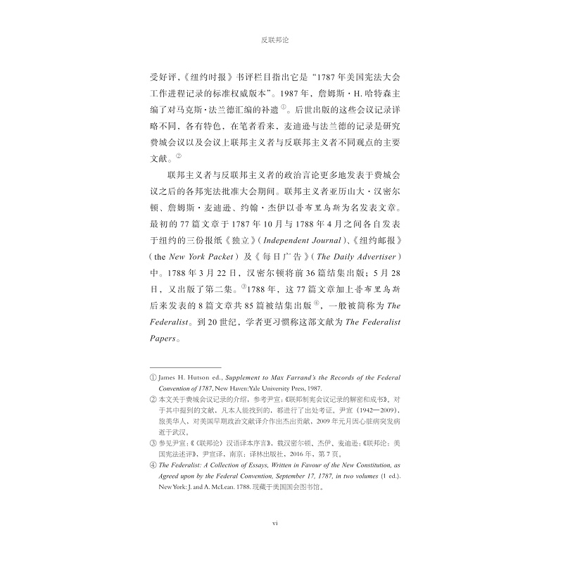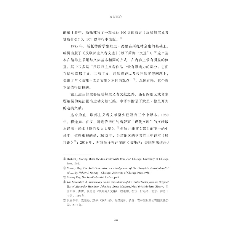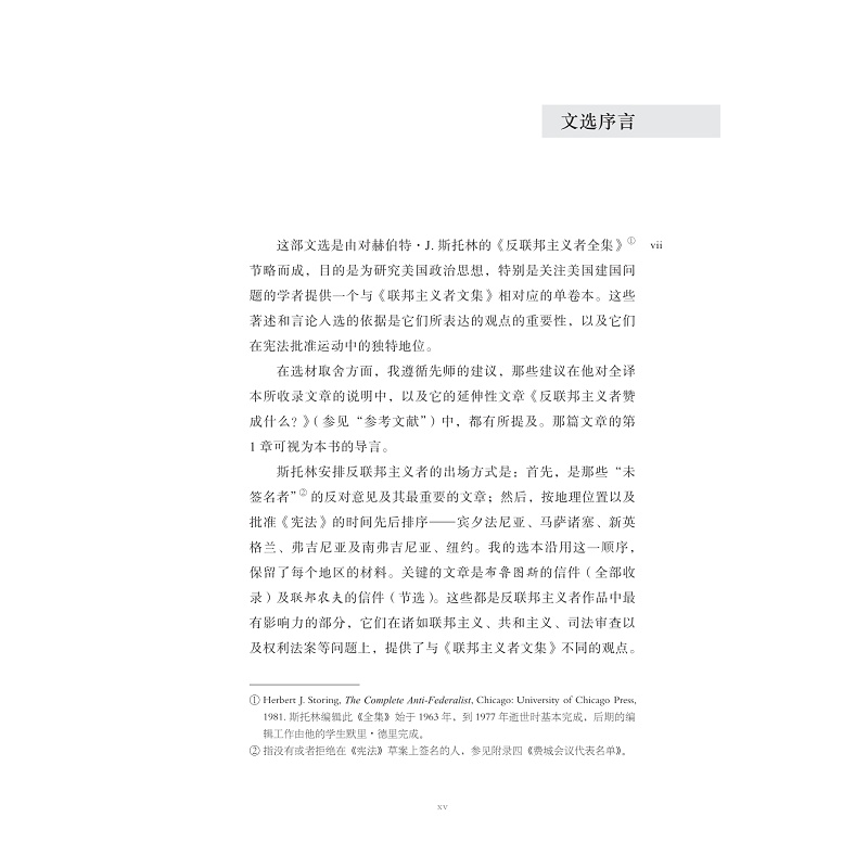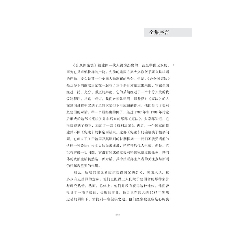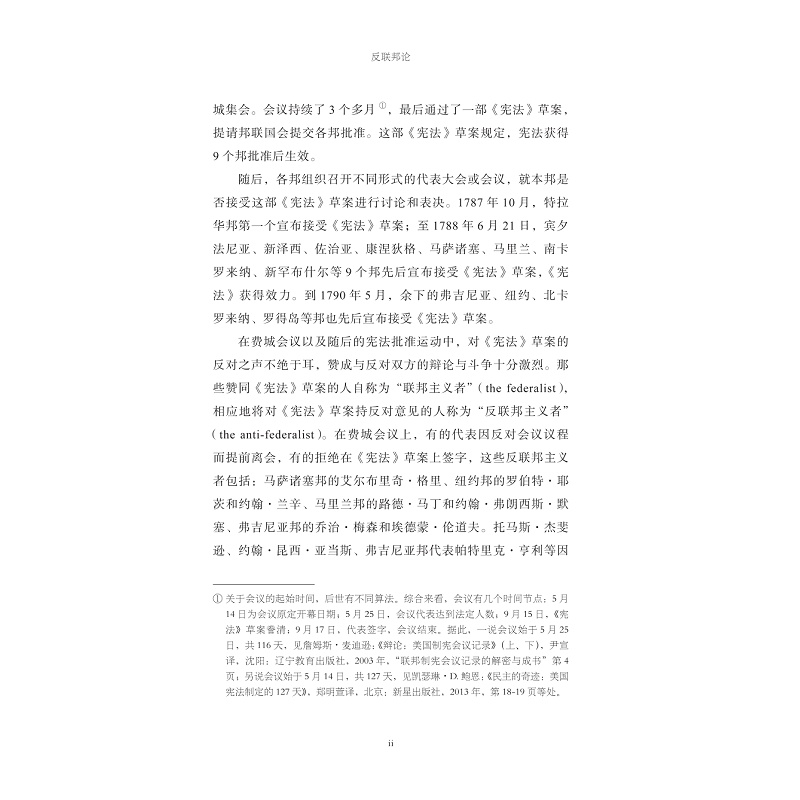 自1787年提议和起草《联邦宪法》,到1789年正式批准,对于是否应该批准《联邦宪法》曾有一次紧张而重要的大辩论。麦迪逊、汉密尔顿、约翰·杰伊在一系列文章中表达了支持它的主张,后被称为“联邦论”。而反对批准的论证则由多个作者以多种形式表达,其中多数人使用了假名,后来这些文章以“反联邦论”闻名。本书是反联邦主义者所写的关于美国《1787年宪法》的评论文章与信件的合集,涉及联邦权与州权、宪法解释权、审判权、税法、常备军、参众两院与总统的权力分割、权利法案的缺失等等,是理解美国《宪法》与制宪历史的重要文献。