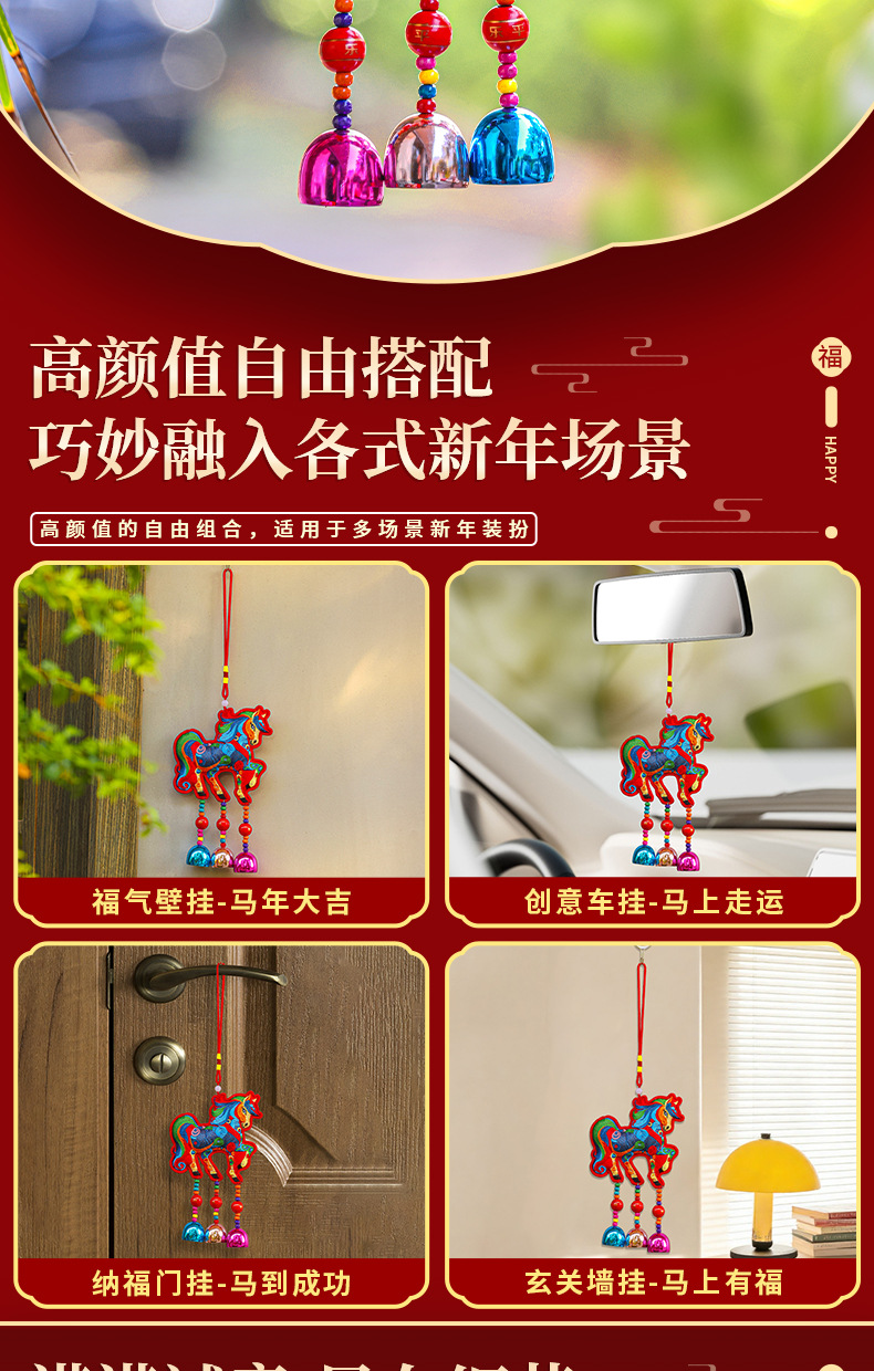 【好运将铃❗️小马挂件刺绣香囊】开门迎新沾年味,纳福铃铛色彩饱满,满满诚意尽在细节,福气搭配巧妙融合,挂饰居家车挂包挂门挂春节创意礼物QQ