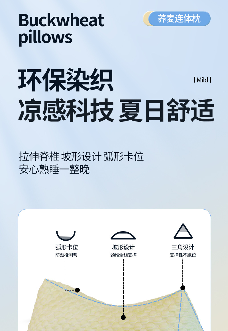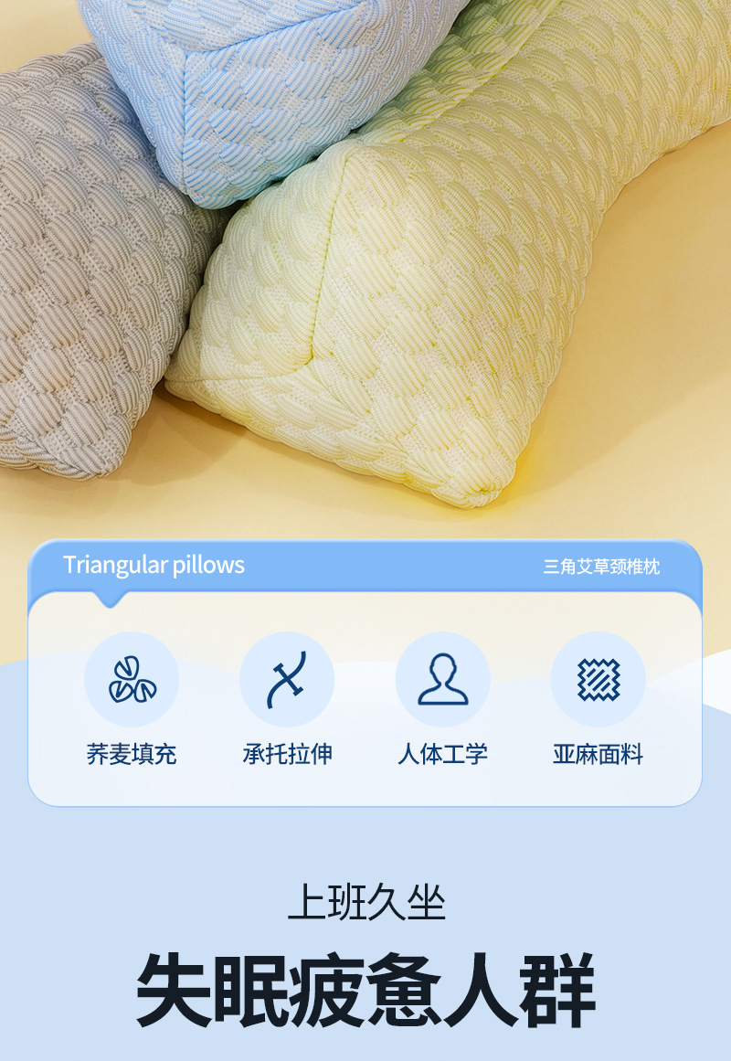 【凉感科技❗️夏季荞麦三角枕】A类品质,科学护颈,久睡不塌,乐享深睡,护颈枕睡眠枕冰丝凉席枕颈椎枕荞麦枕头肩颈枕