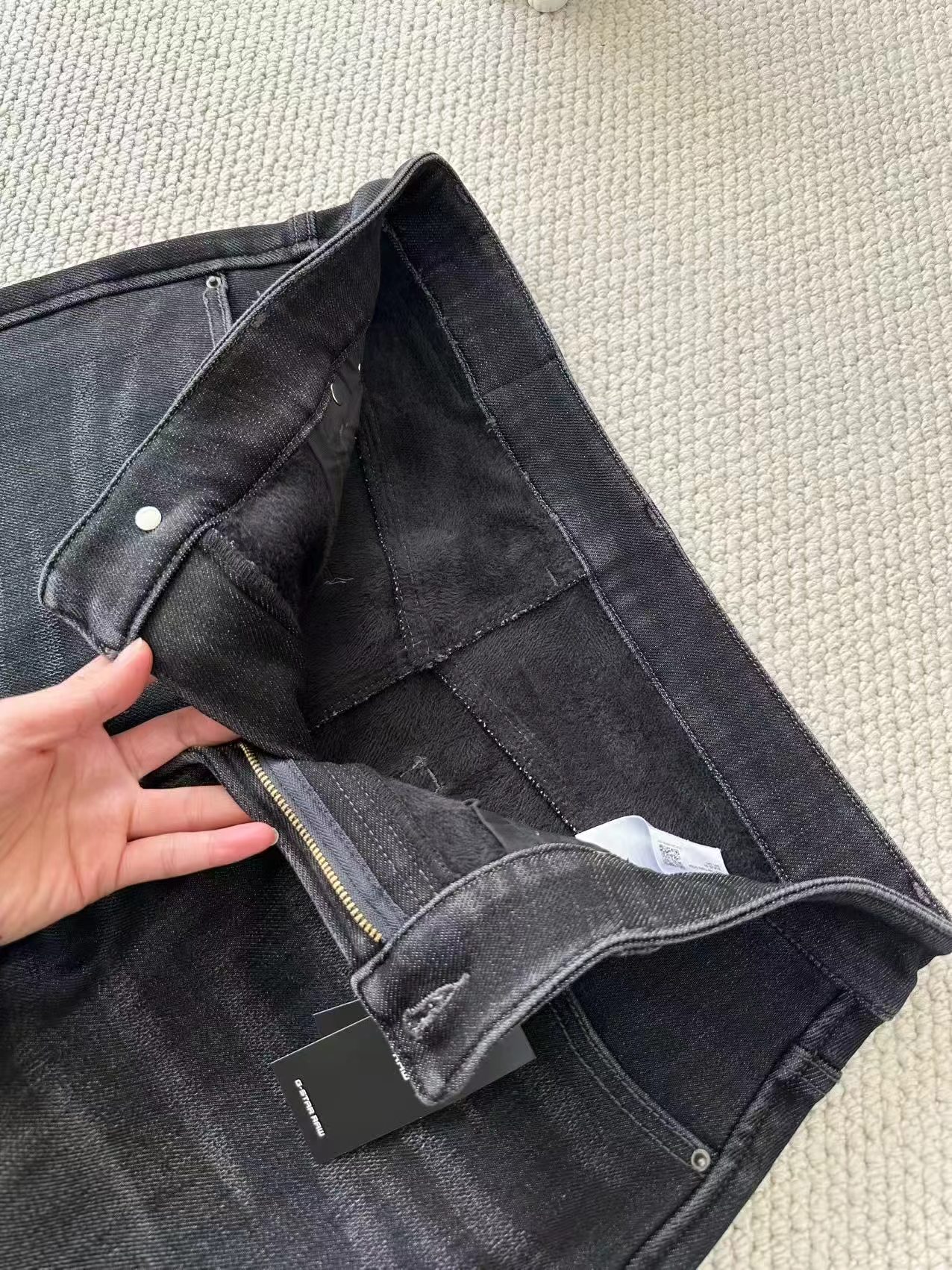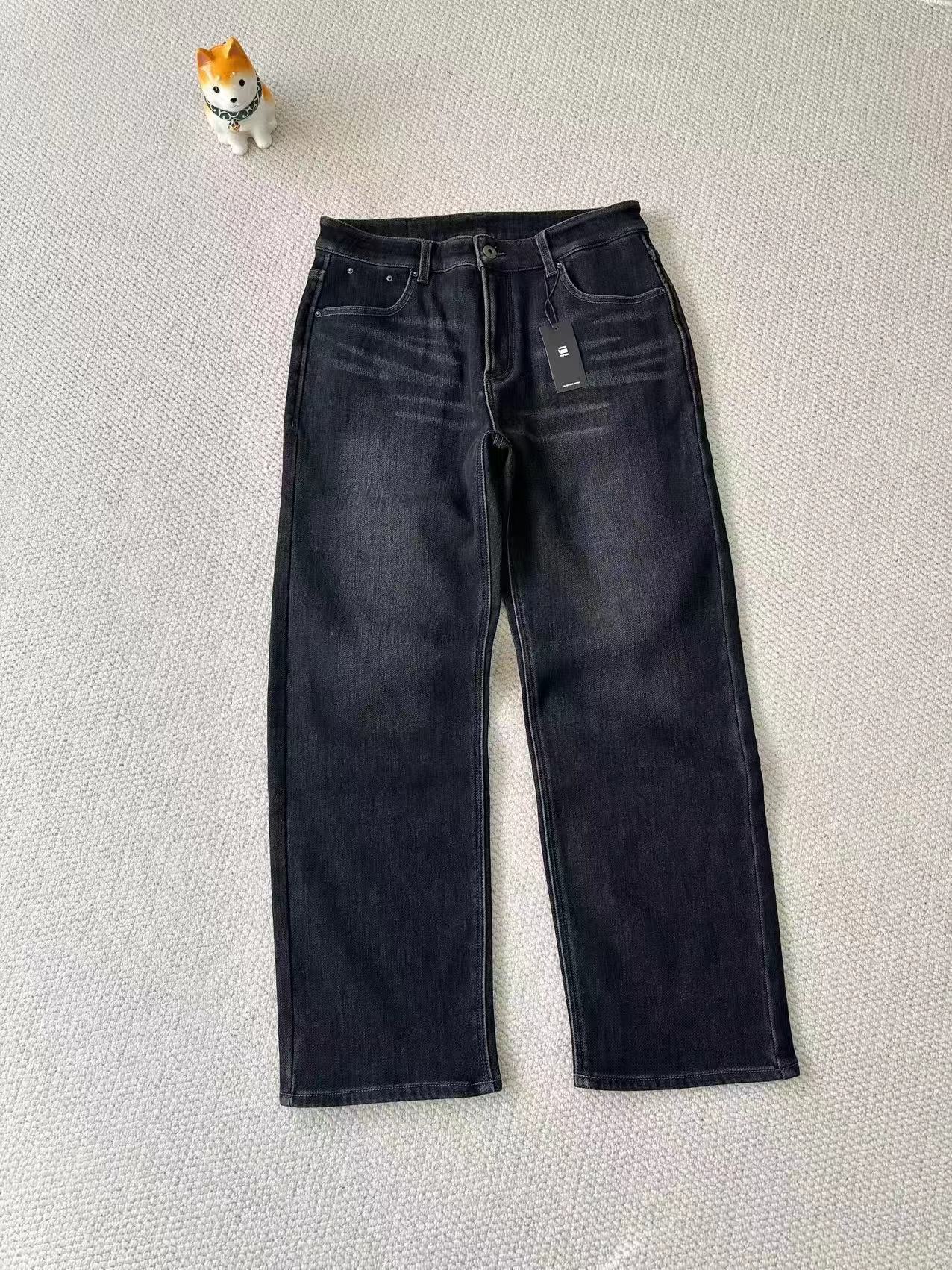 宽松直筒修饰腿型25冬新款男士牛仔长裤D23693,宽松阔腿牛仔长裤!加绒加厚!水貂绒!一条过冬!Type96廓形设计,遮肉显瘦!显腿长!水洗做旧效果!带点复古的氛围!微加长设计,搭配阔腿效果,有种拉伸腿型的效果!很绝!