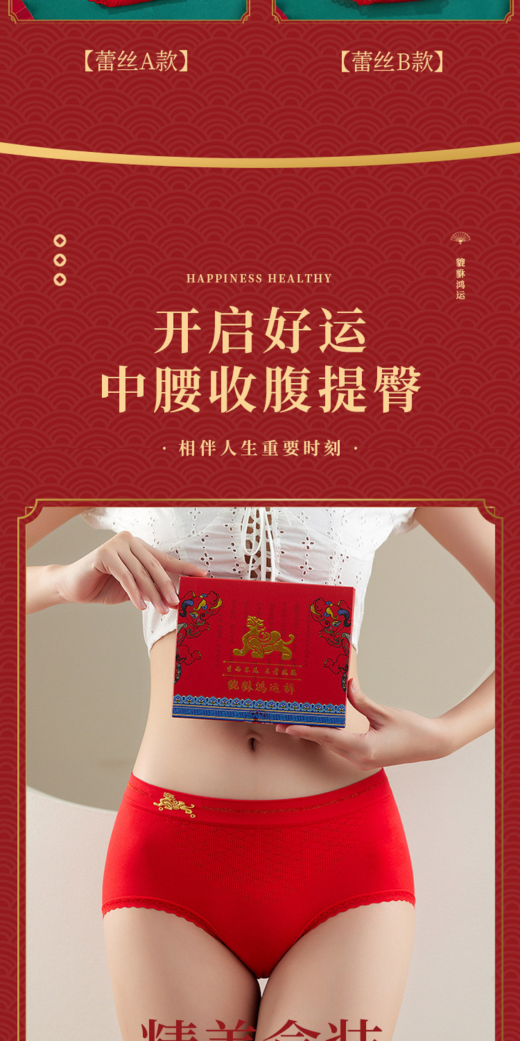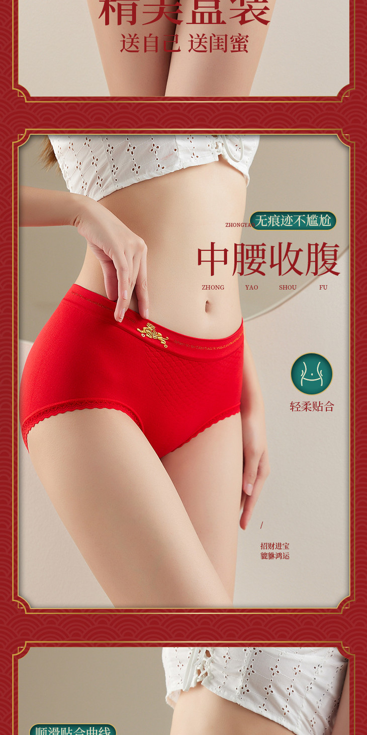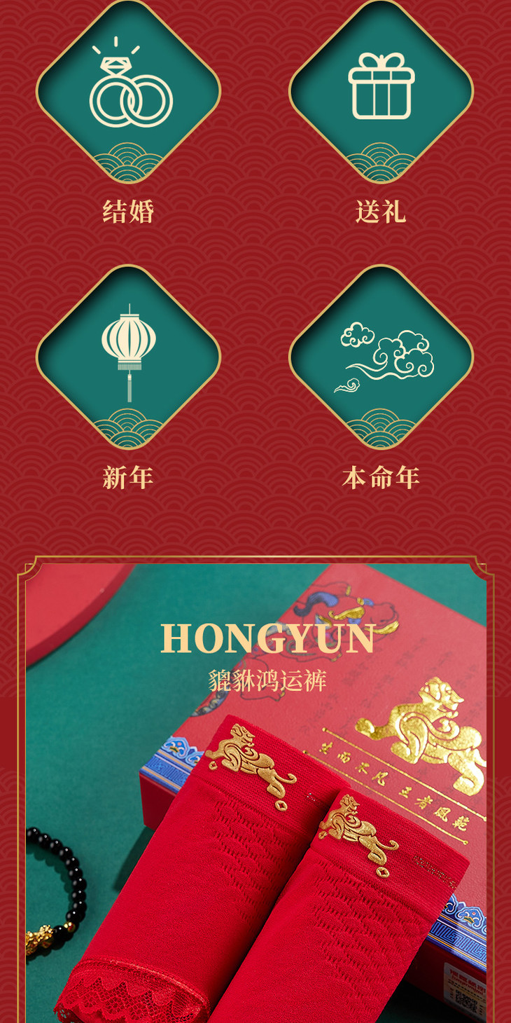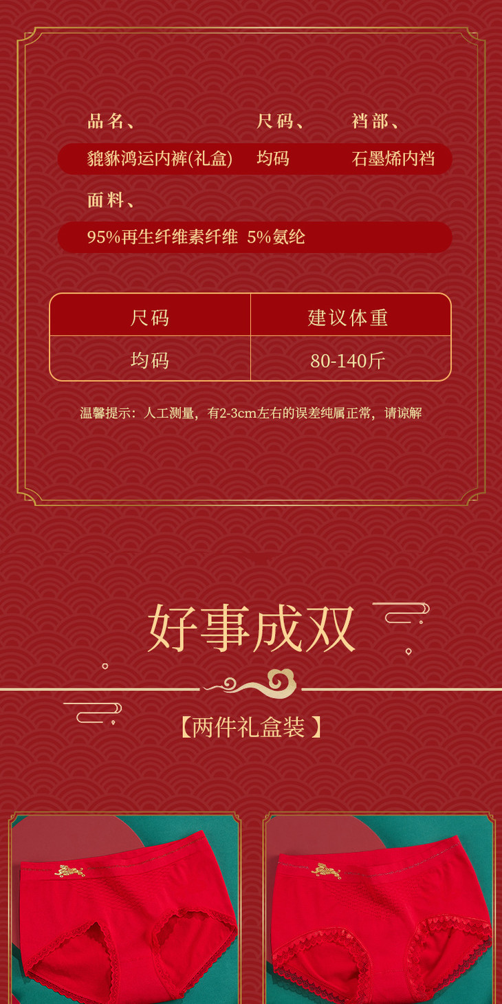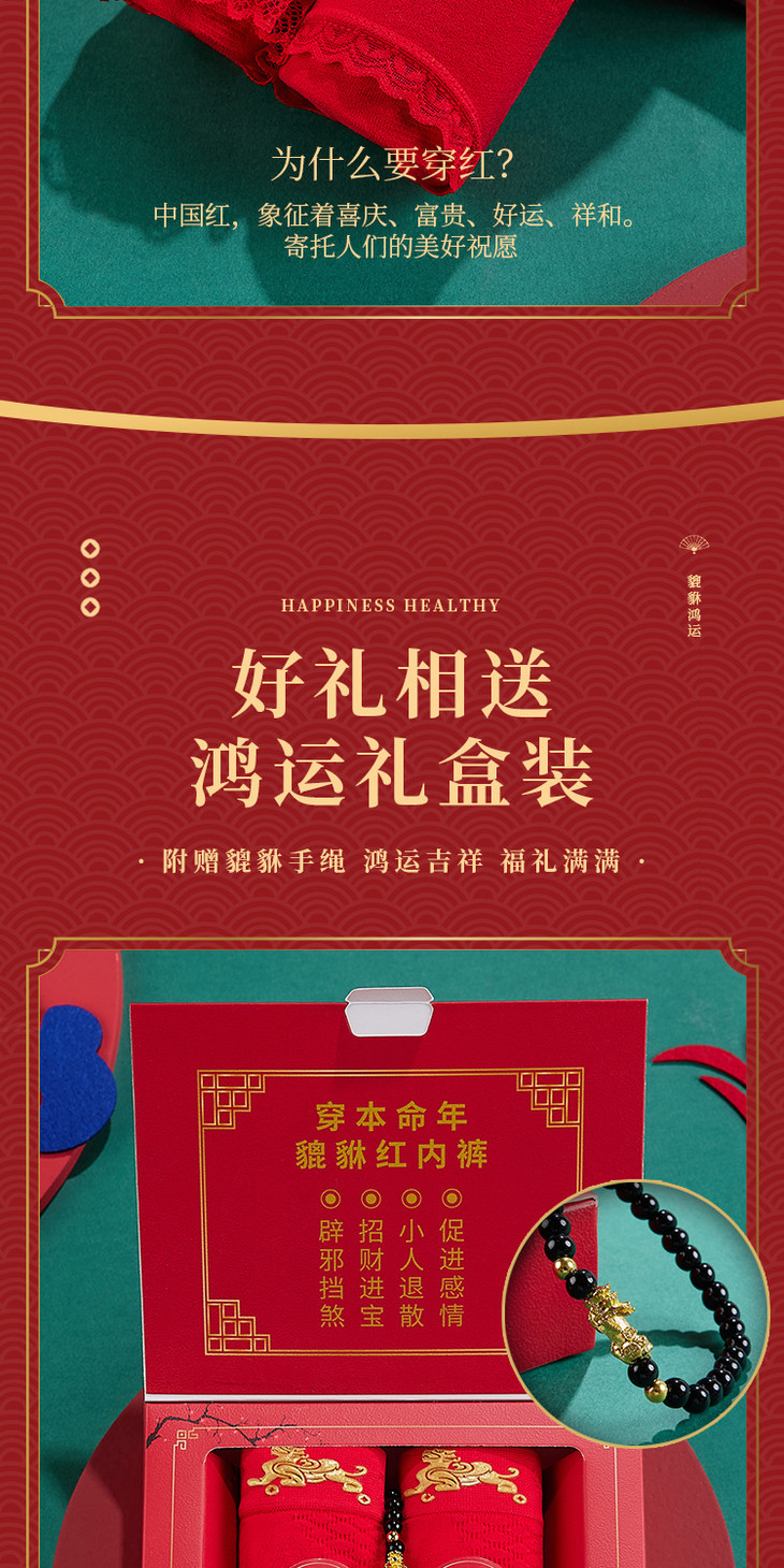 【买就送貔貅手链❗️纳福内裤礼盒】本命年、新年鸿运内裤2条套装,大红色内裤男女士,年货新年新婚转运幸运红伴手礼父亲节礼物情人节礼物