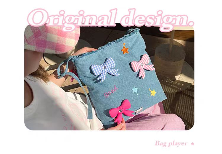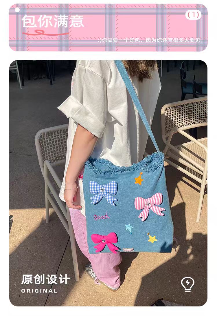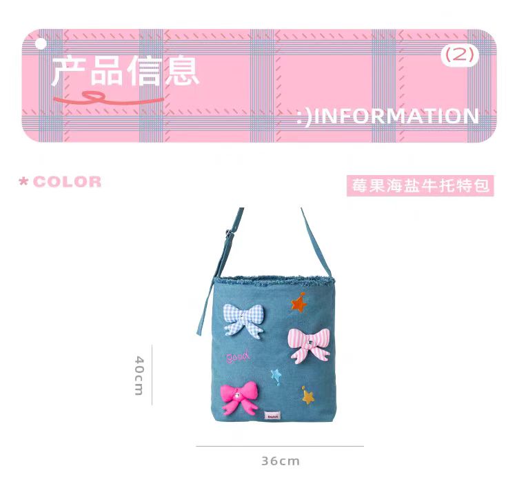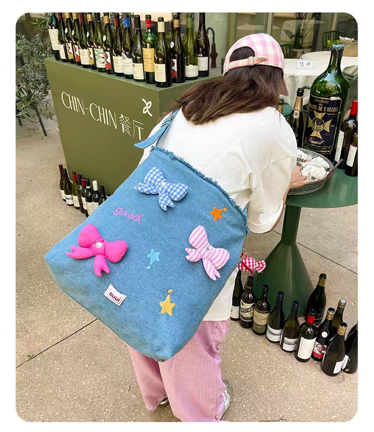 4楼Eubelle欧蓓 puui原创生活大容量牛仔托特包 蝴蝶结单肩包可斜挎 活动价:289元